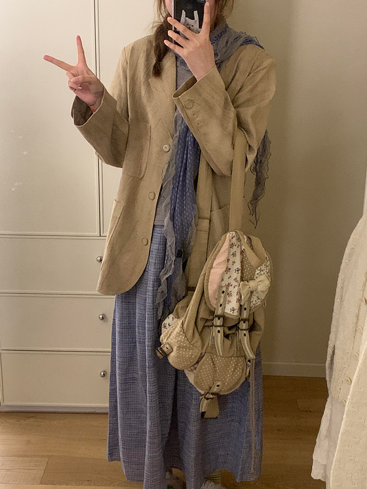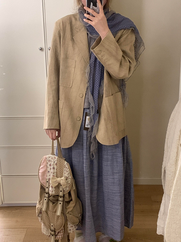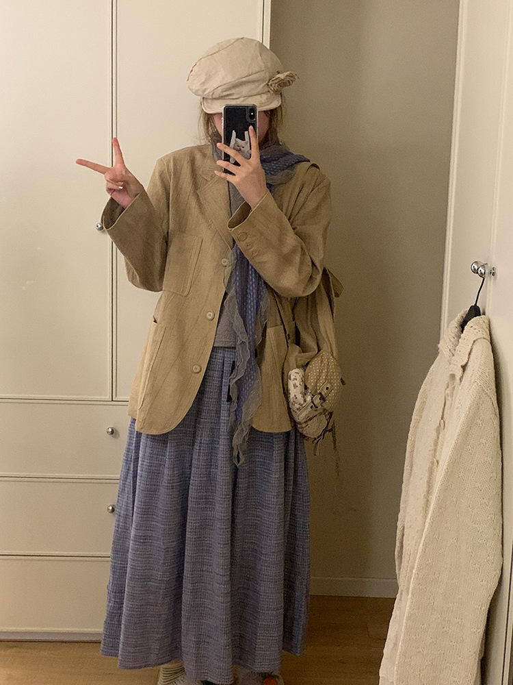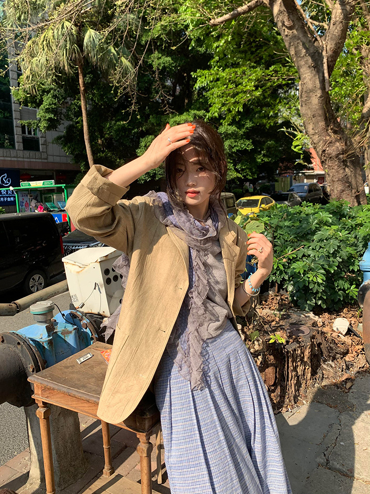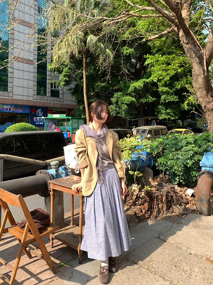 재고! 고대 초기 회색 파란색 웨이브 레이스 가장자리 스카프 여성의 나무 귀 긴 스카프가있는 후지이 나무스토어 가기