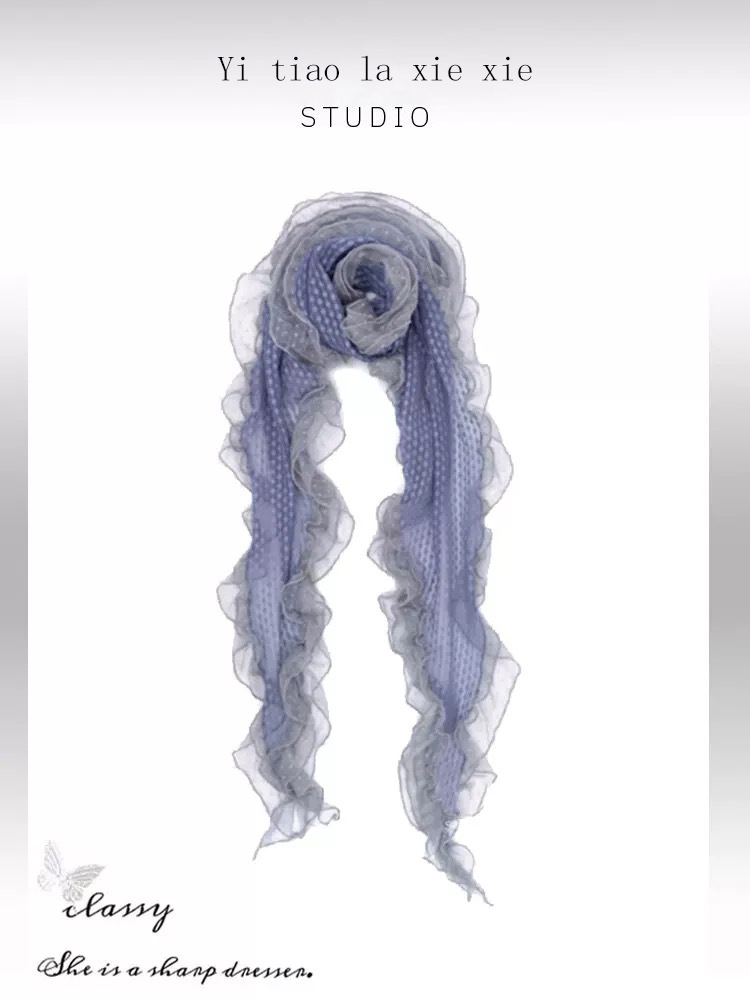 재고! 고대 초기 회색 파란색 웨이브 레이스 가장자리 스카프 여성의 나무 귀 긴 스카프가있는 후지이 나무