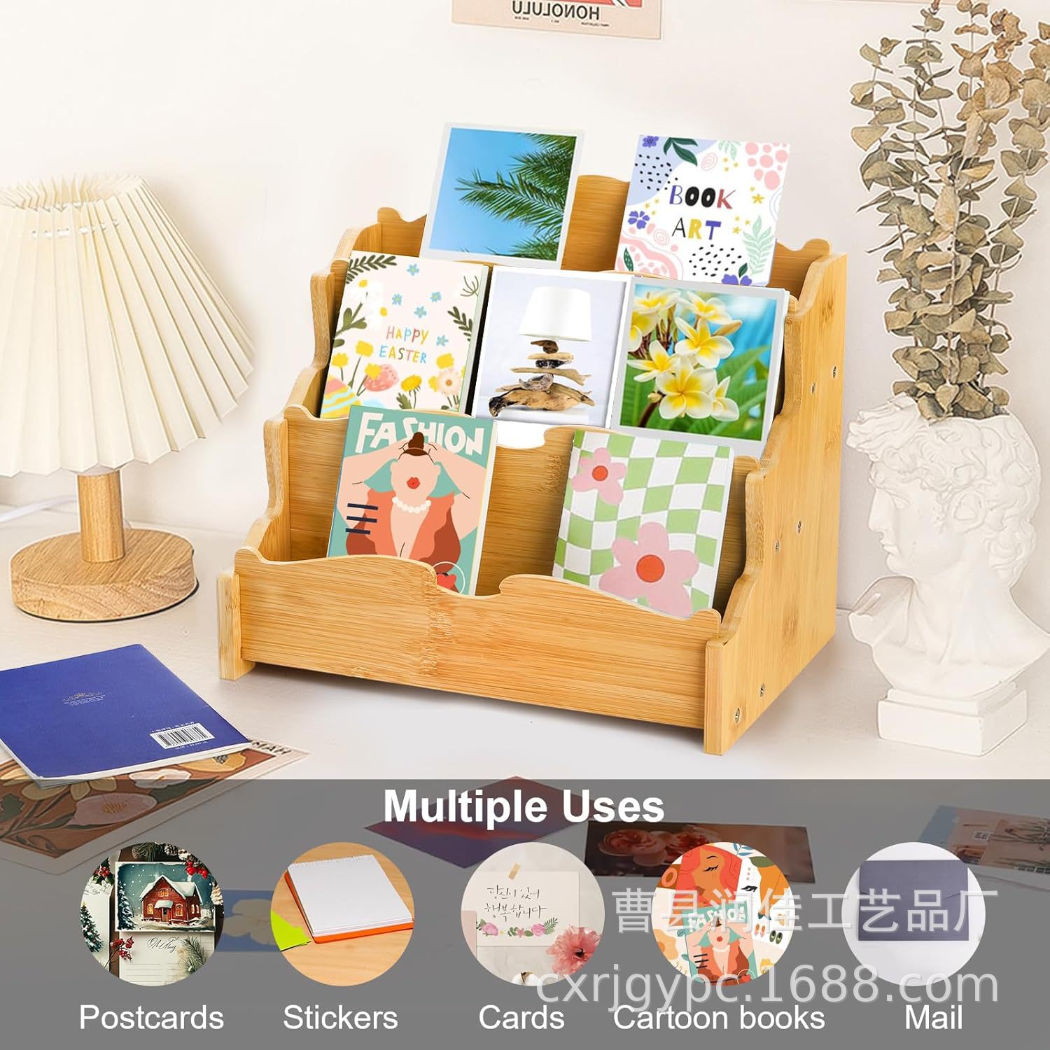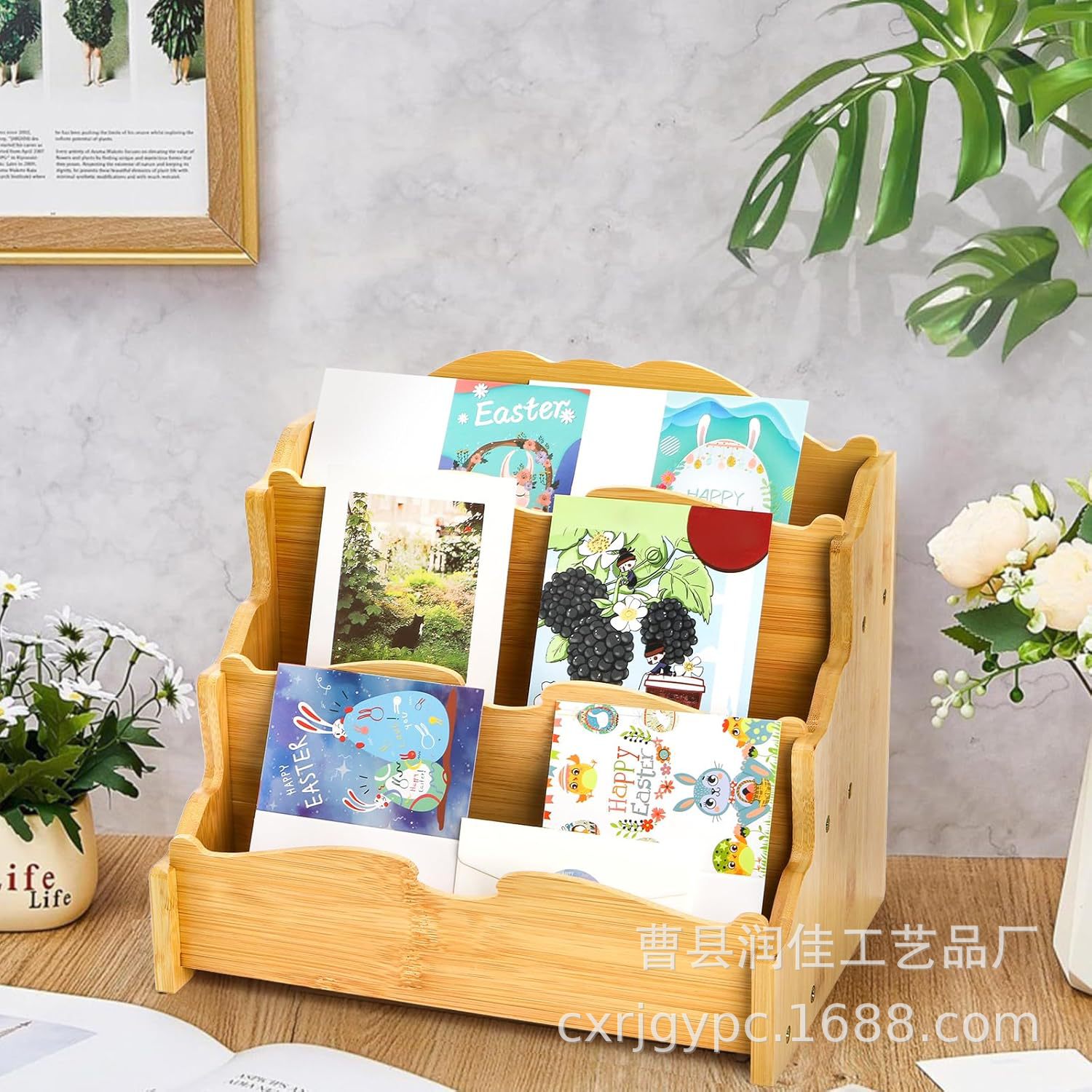 나무 스타 카드 인사말 카드 디스플레이 스탠드 스토리지 랙 어린이 책 랙 계단식 다기능 디스플레이 스탠드
