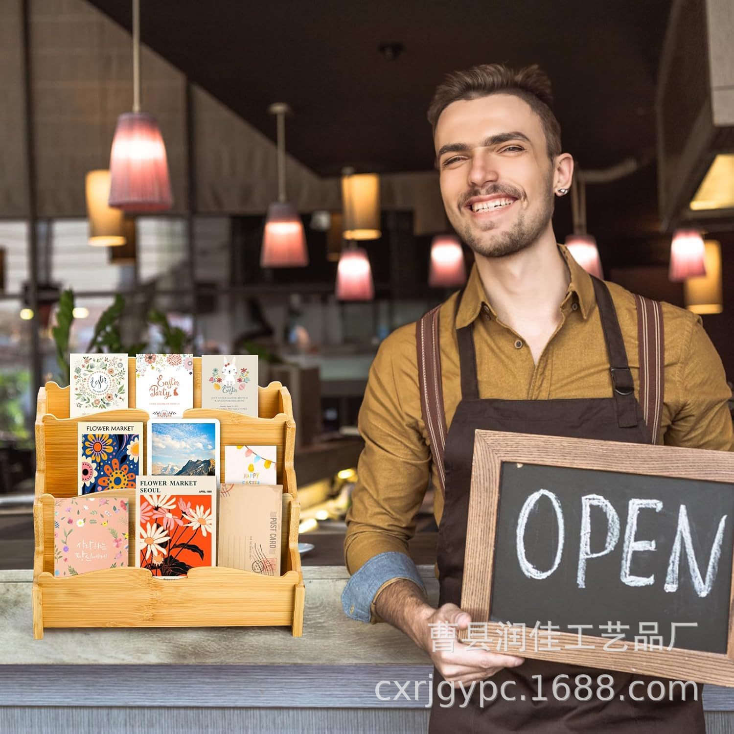 나무 스타 카드 인사말 카드 디스플레이 스탠드 스토리지 랙 어린이 책 랙 계단식 다기능 디스플레이 스탠드스토어 가기