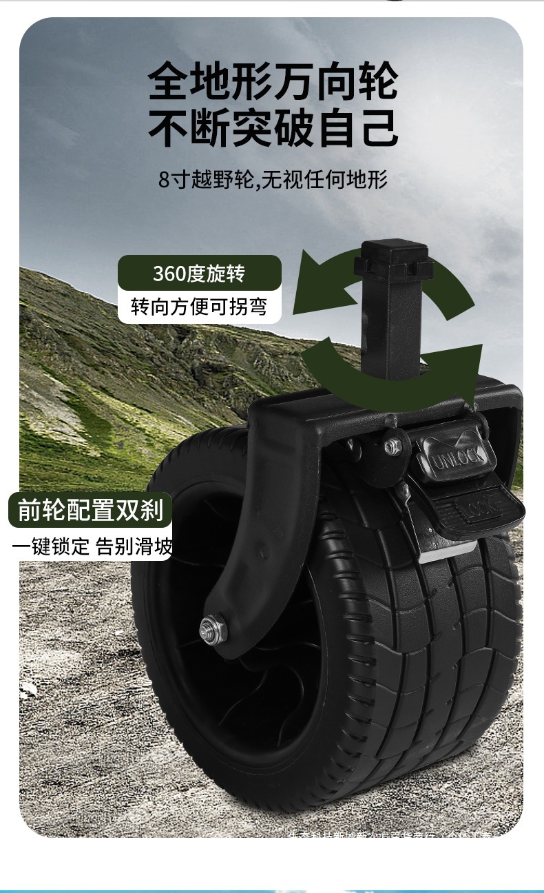 • 후면 플립 대형 8inch 탱크 휠 블랙/더블 브레이크 + 높고 길어진 접이식 테이블