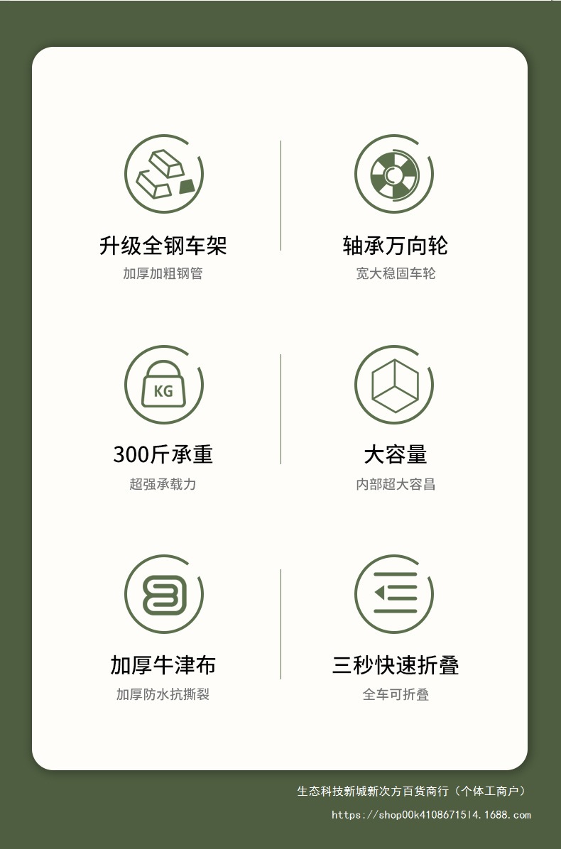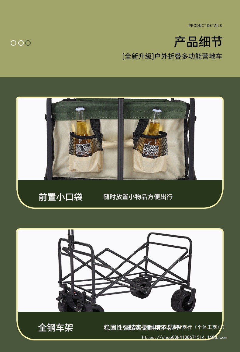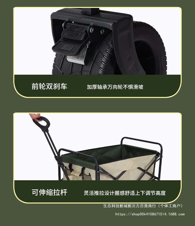 • 리어 플립 대형 8inch 와이드 휠 카키/더블 브레이크 + 높고 길어진 접이식 테이블