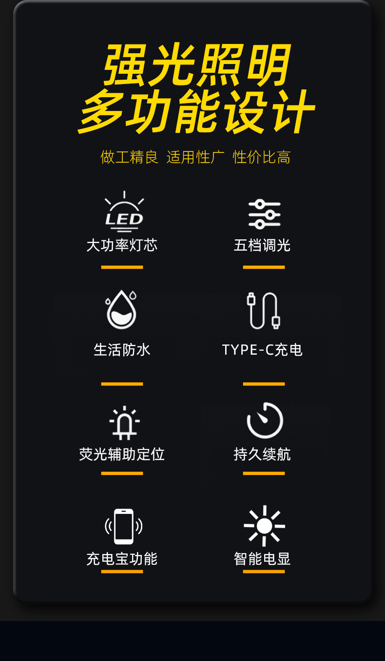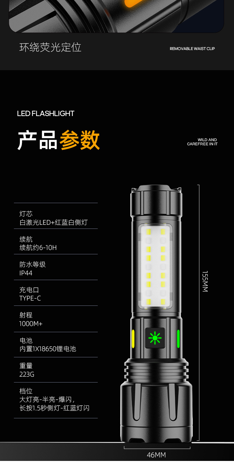 SLH-M115 백색 레이저 손전등 충전식 휴대용 강한 빛 야외 긴 내구성 다기능 알루미늄 합금 작업 조명