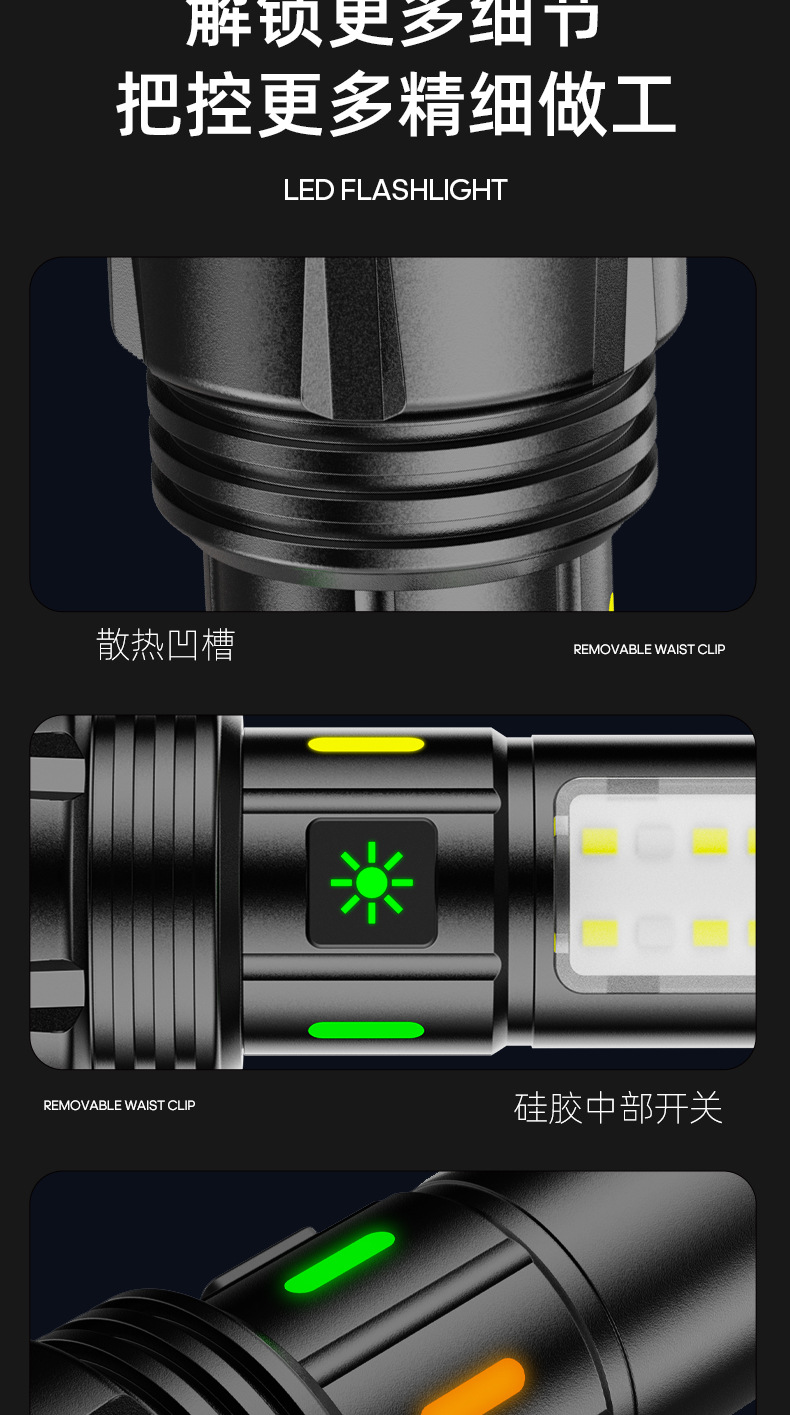 SLH-M115 백색 레이저 손전등 충전식 휴대용 강한 빛 야외 긴 내구성 다기능 알루미늄 합금 작업 조명스토어 가기