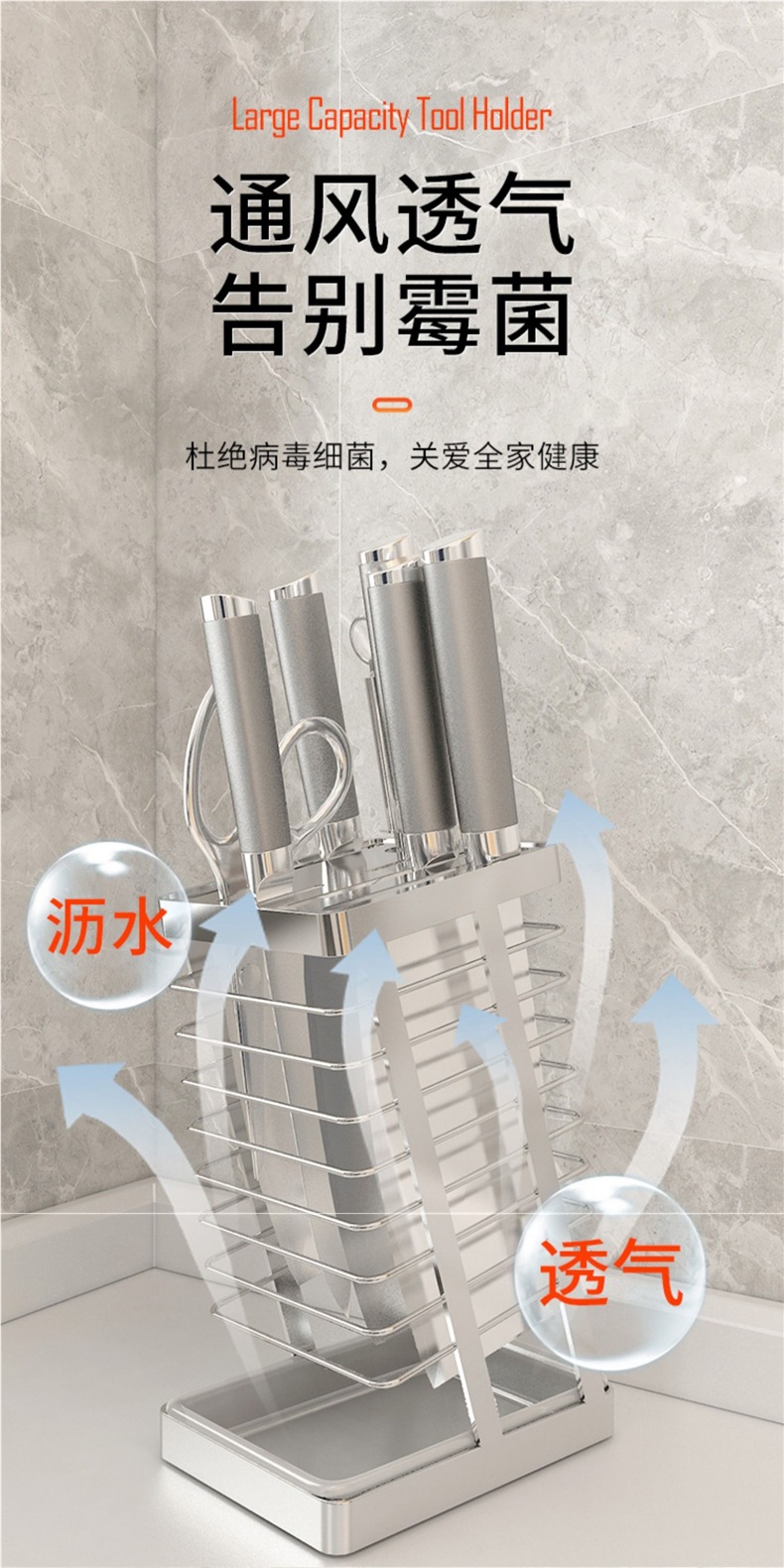 304 스테인레스 스틸 주방 나이프 홀드 주방 나이프 저장 랙 가정용 건조 테이블 탑 야채 나이프 홀드 도매스토어 가기