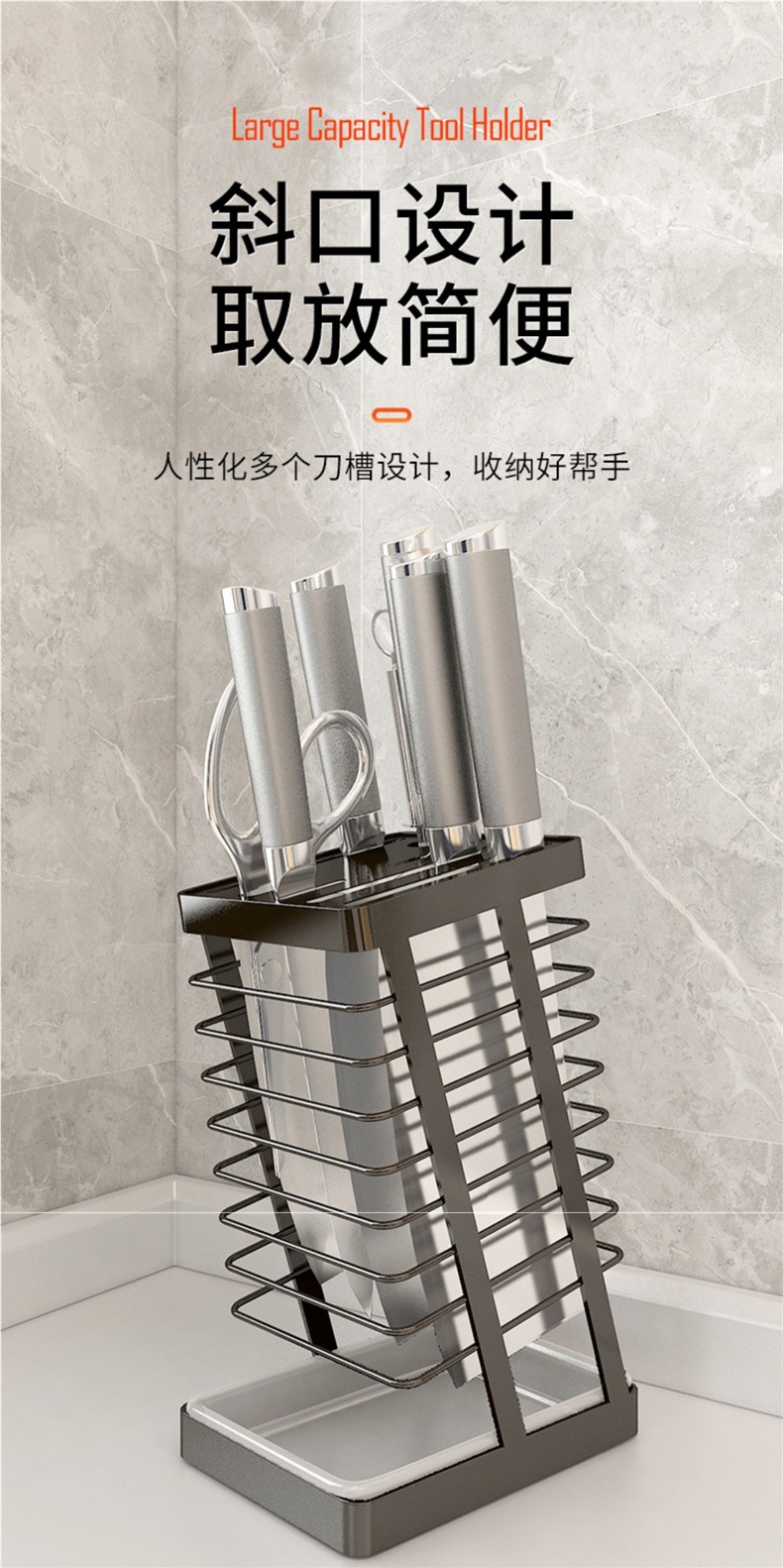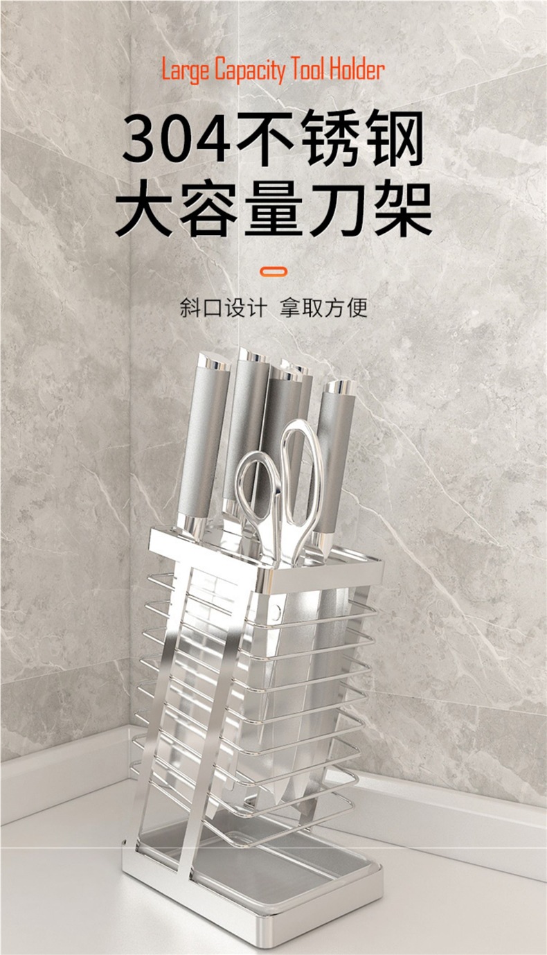 304 스테인레스 스틸 주방 나이프 홀드 주방 나이프 저장 랙 가정용 건조 테이블 탑 야채 나이프 홀드 도매