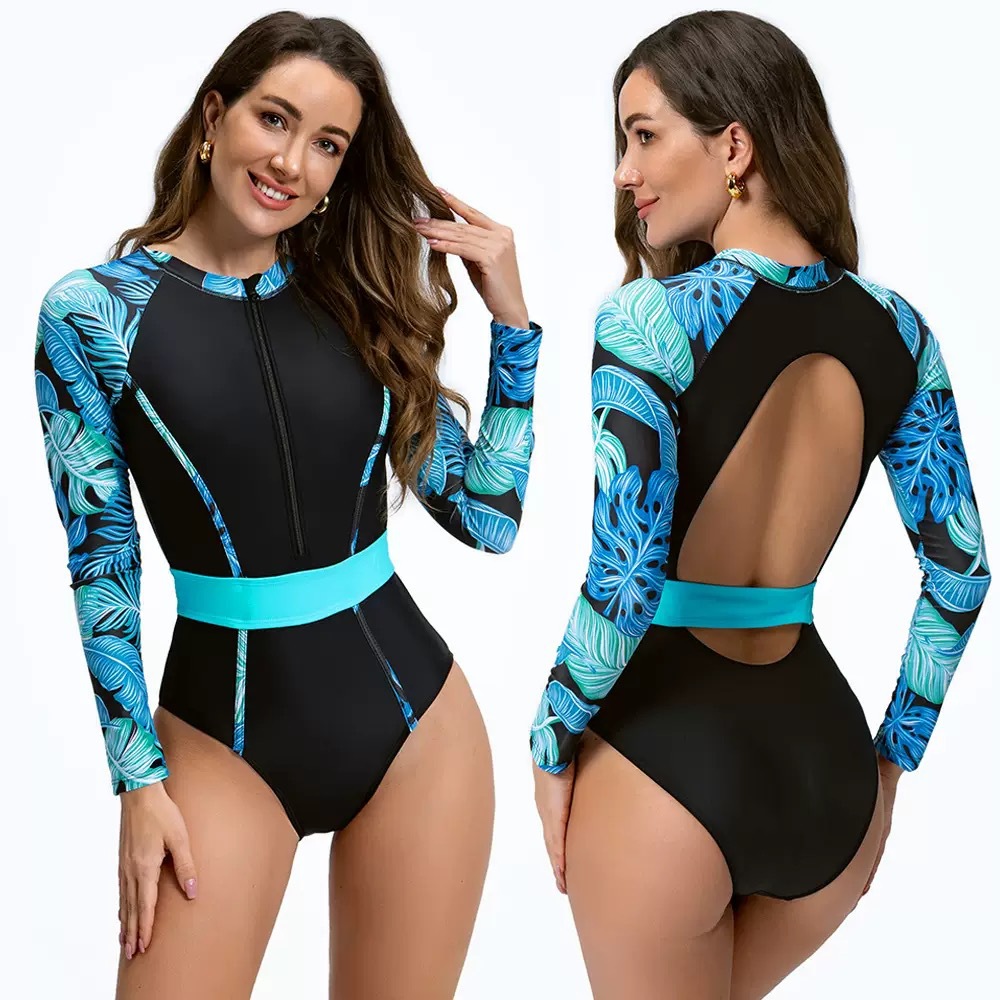 2025 국경 간 유럽과 미국 대외 무역 원피스 긴팔 서핑 슈트 백리스 여성 수영복 잠수복 섹시한 수영복 도매