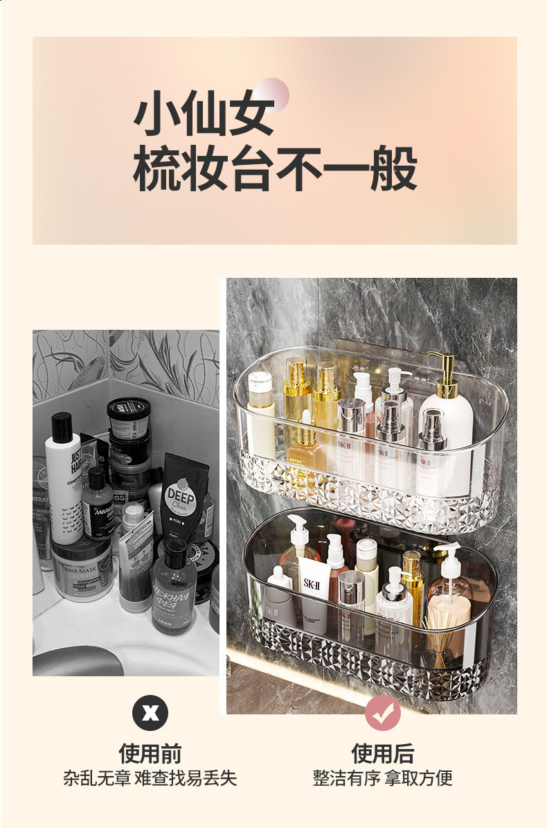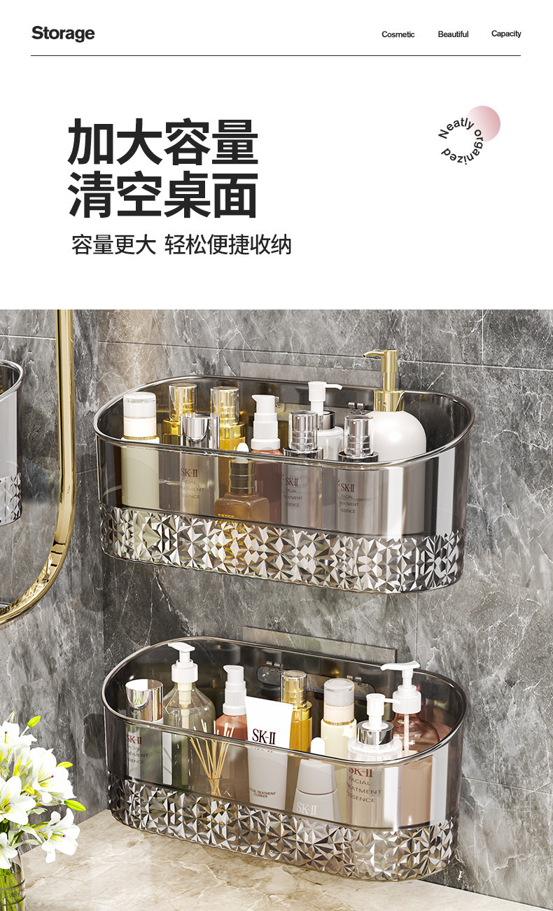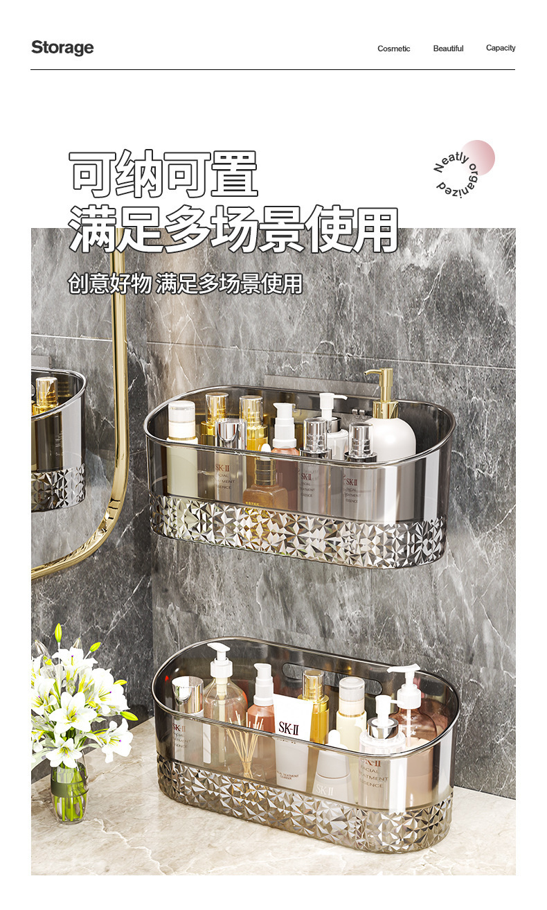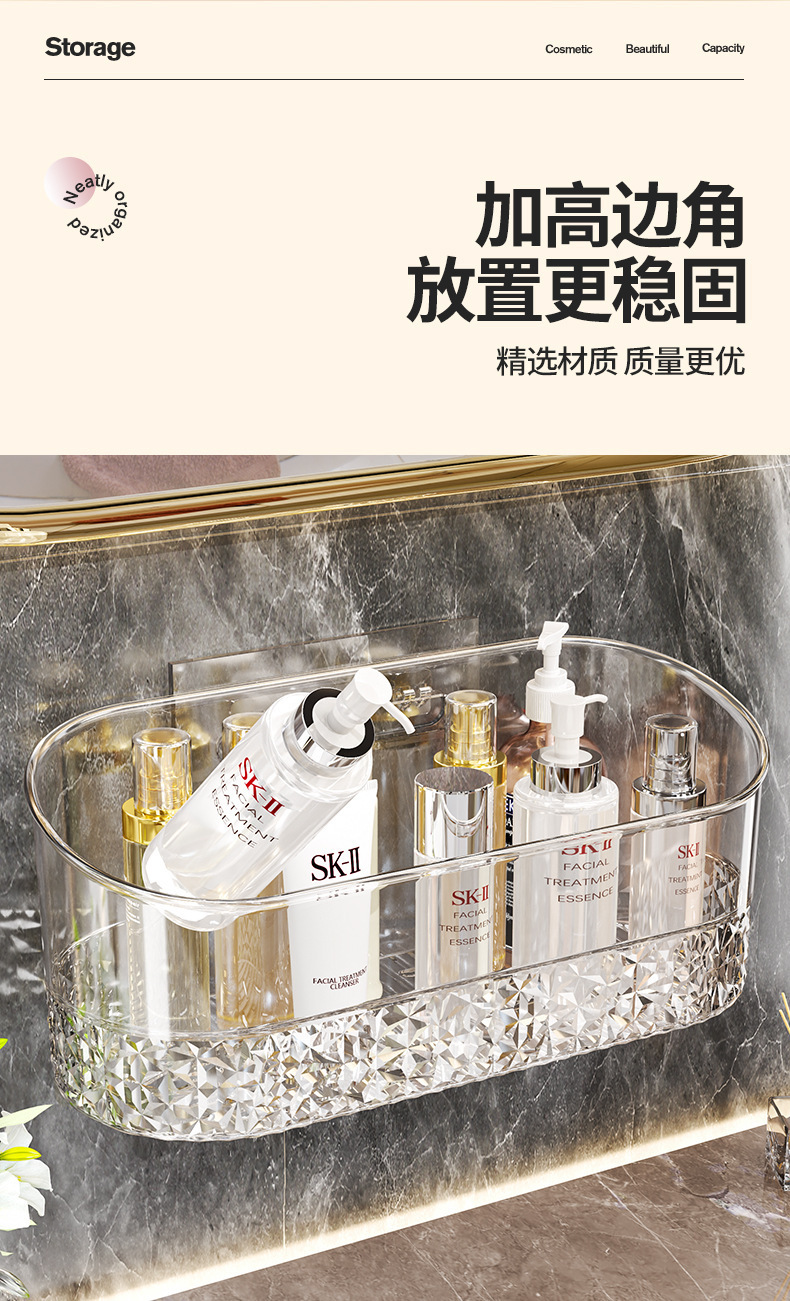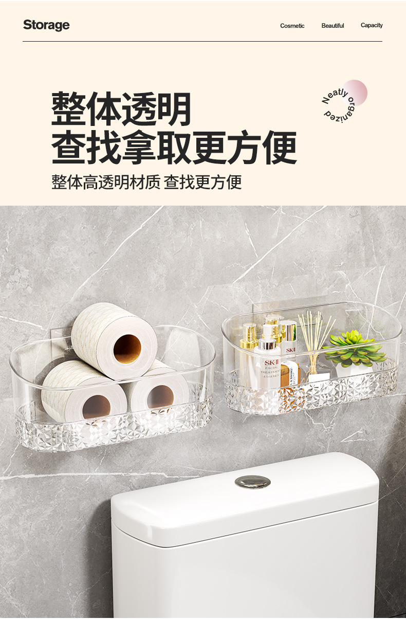 卫浴置物架透明卫生间浴室架子洗漱台挂篮免打孔壁挂化妆品收纳架