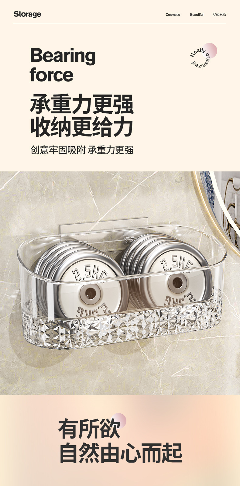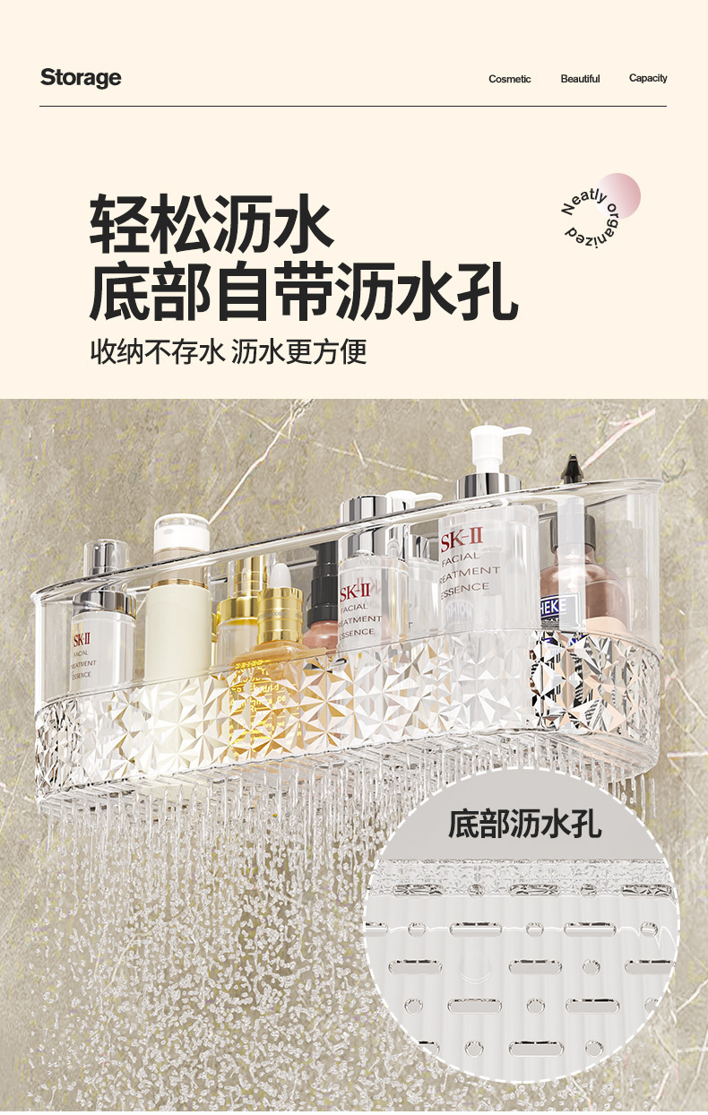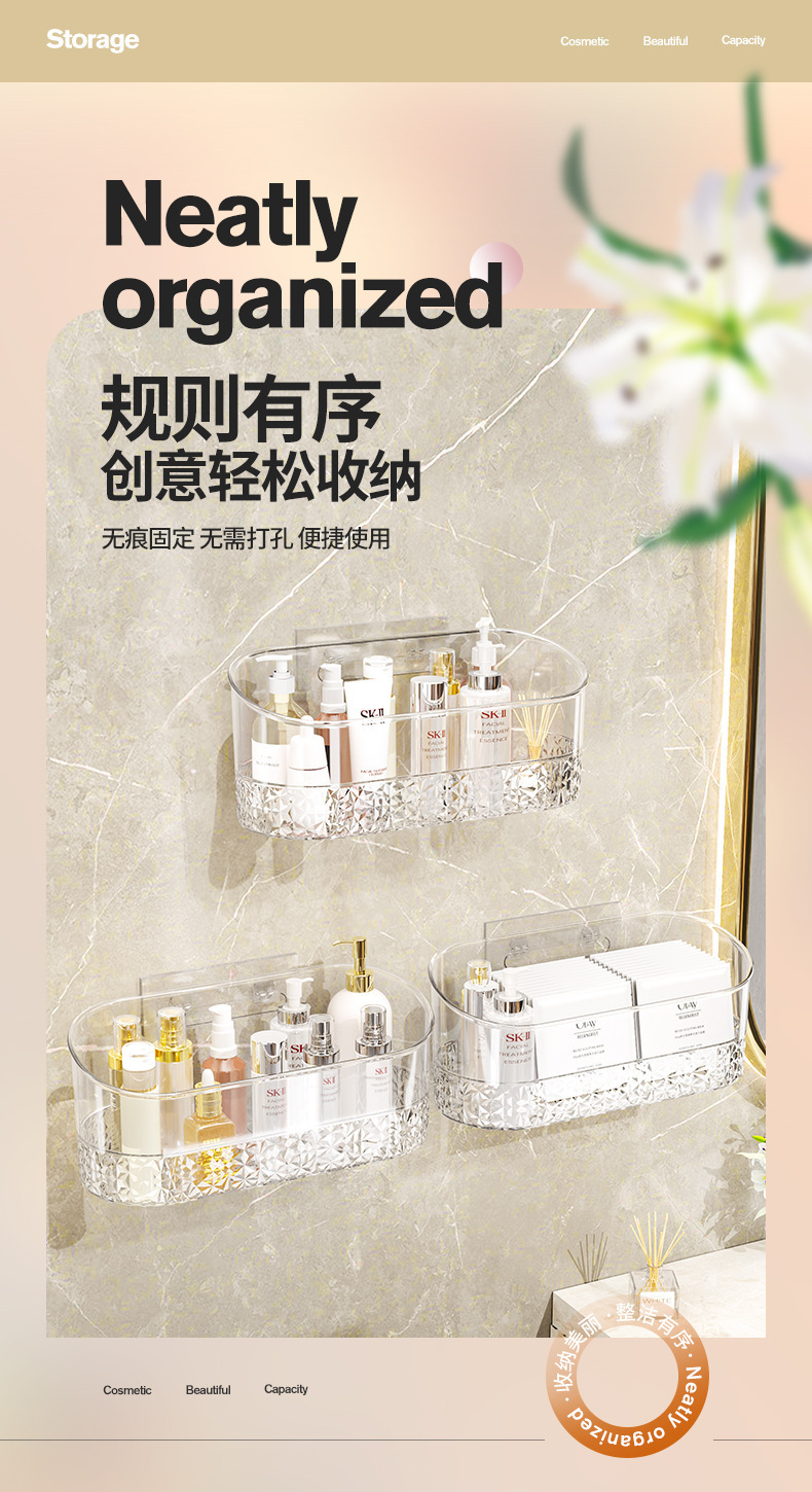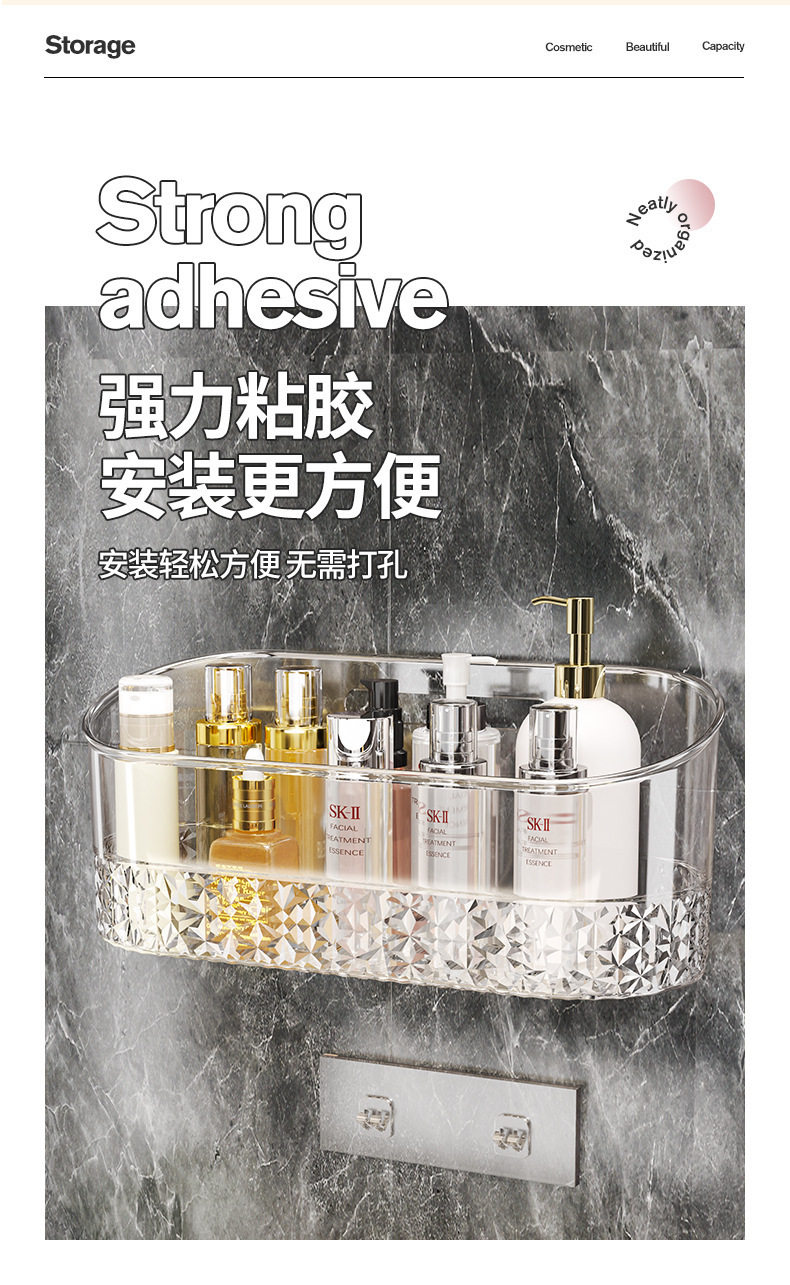 卫浴置物架透明卫生间浴室架子洗漱台挂篮免打孔壁挂化妆品收纳架