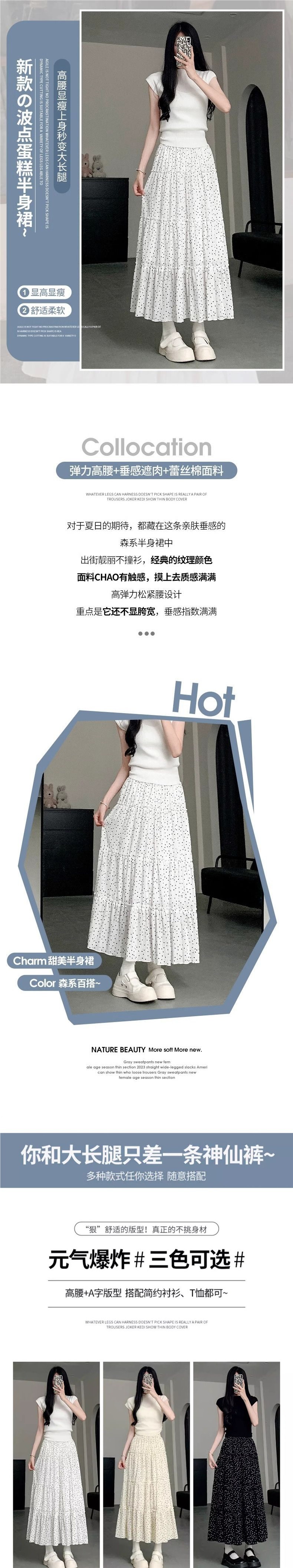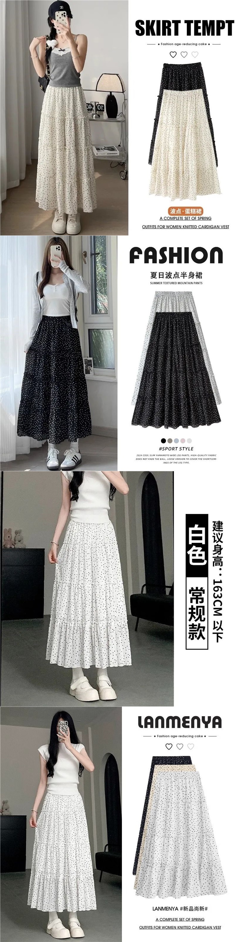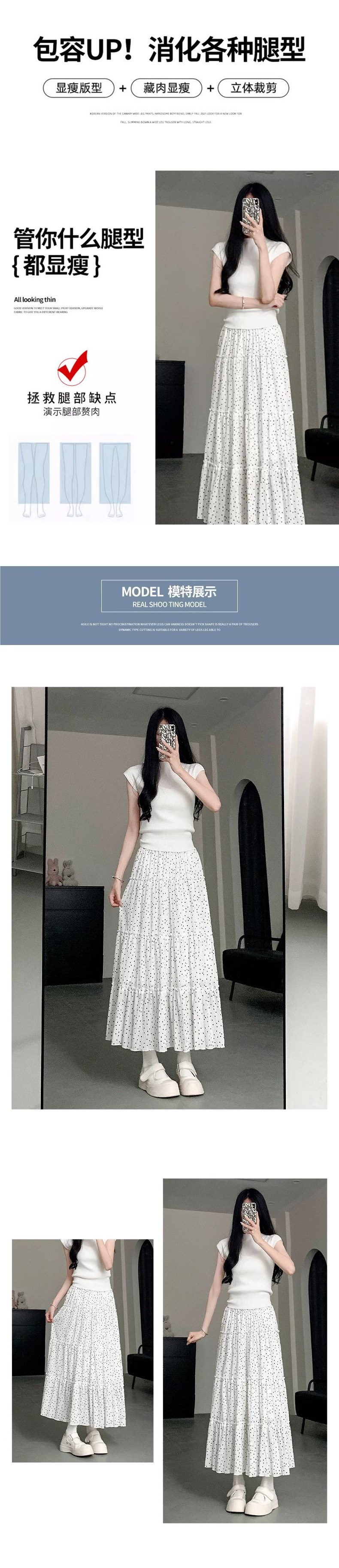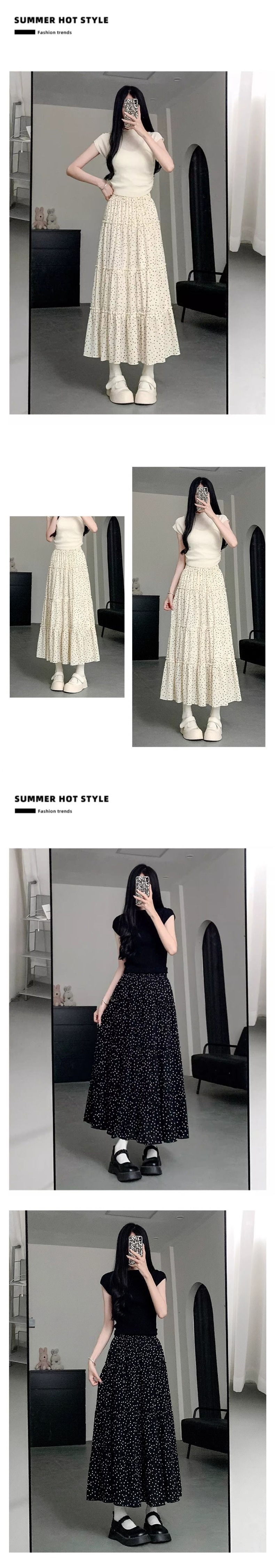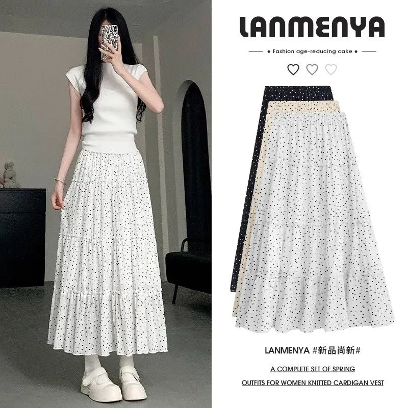 여름 여성용 화이트 폴카 도트 스커트, 하이웨이스트 A라인, 프렌치 스타일, 푹신한 케이크 롱 스커트, 드롭쉬핑스토어 가기