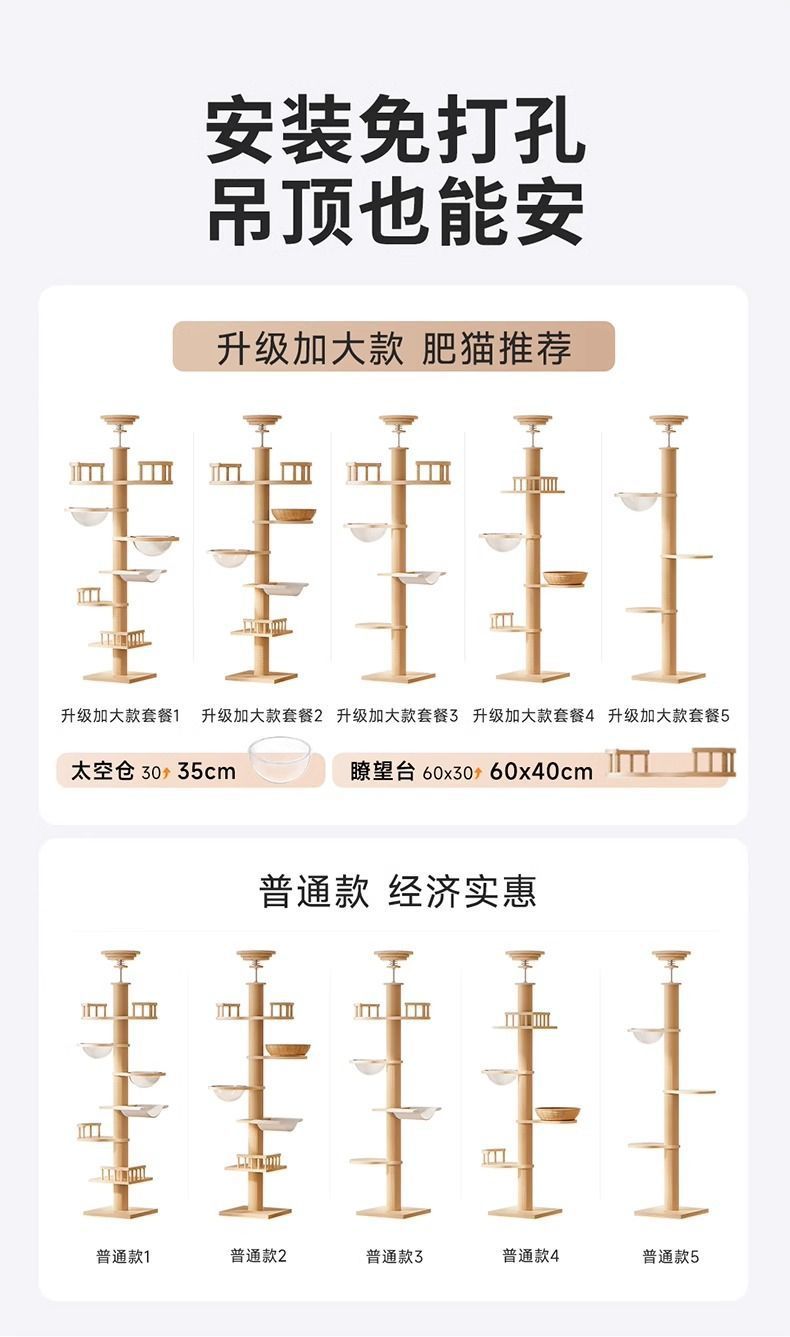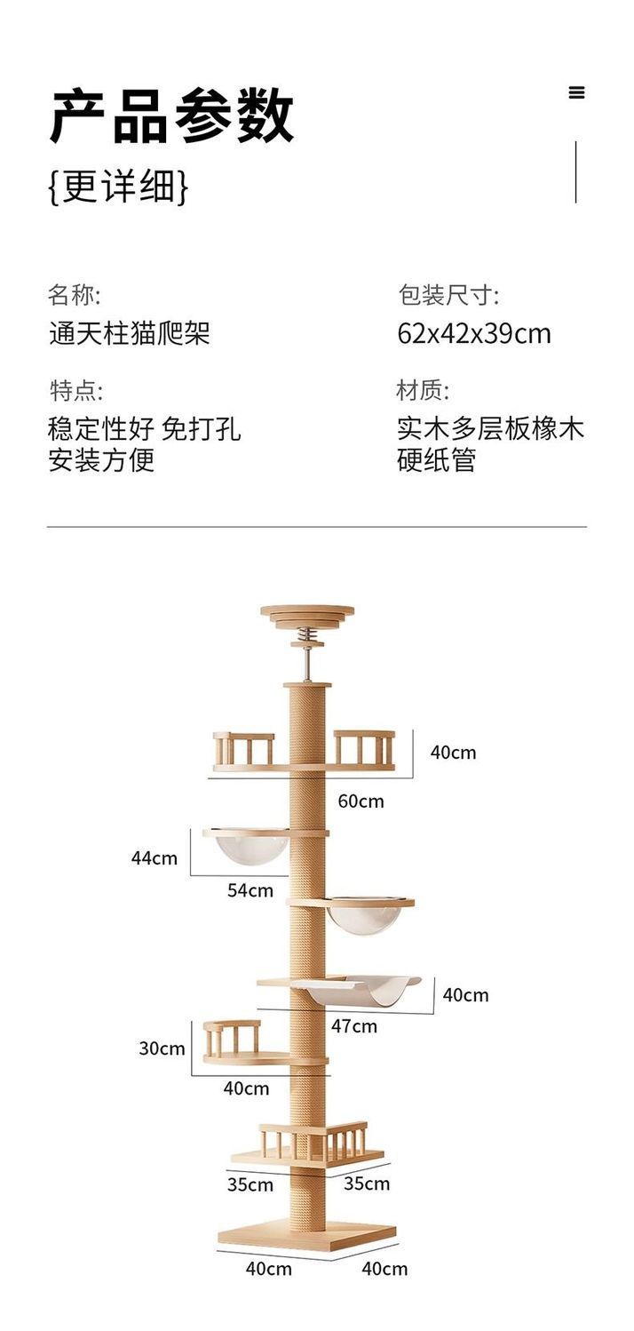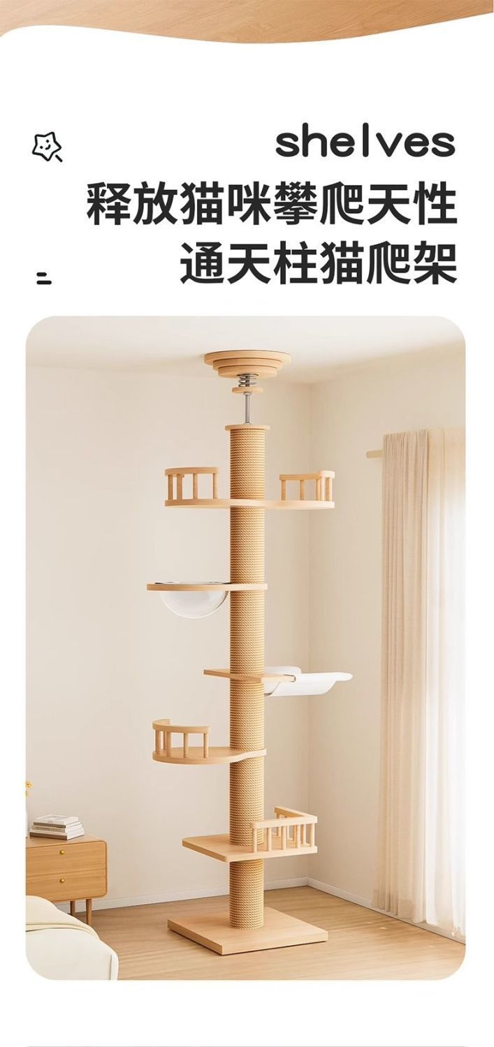 다층 기둥 고양이 클라이밍 프레임, 고양이 둥지, 고양이 트리, PVC 천장부터 바닥까지, 원목 고양이 클라이밍 프레임, 천장 없음, 대형, 일체형스토어 가기
