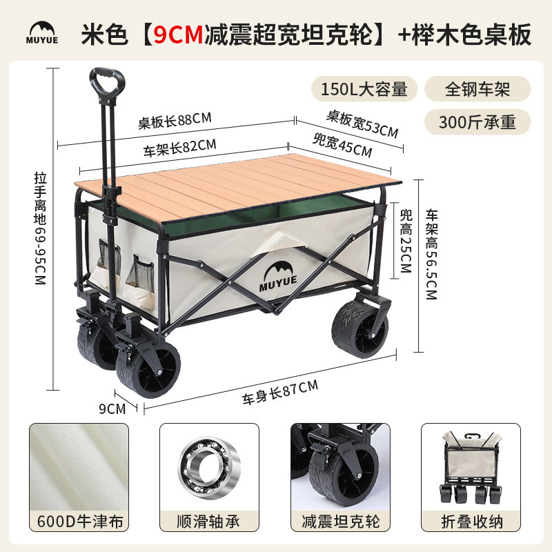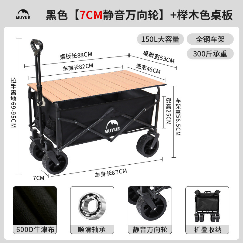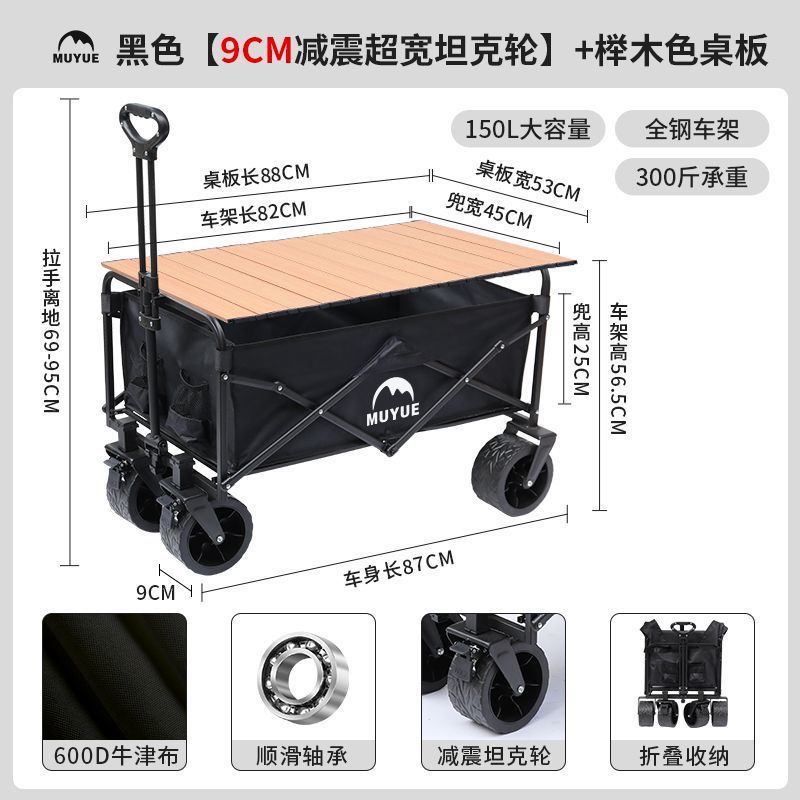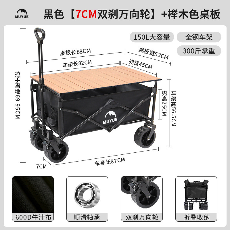 • 블랙 [이중 두꺼운 옥스포드 천] - 대형 / 8inch 오프로드 휠 / 더블 브레이크 / 티핑 버킷 스타일 + 나뭇결 테이블