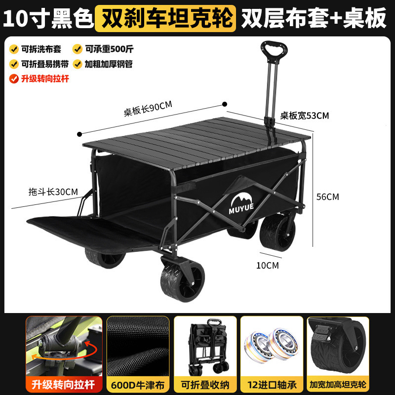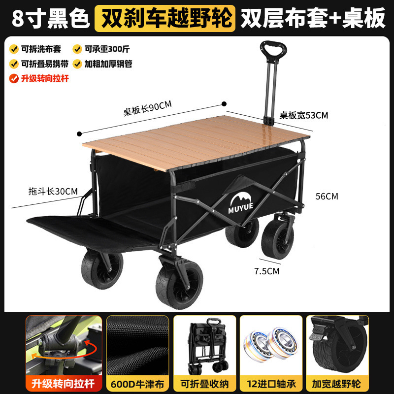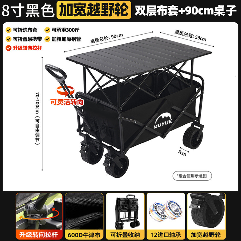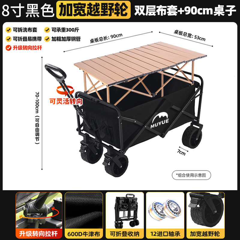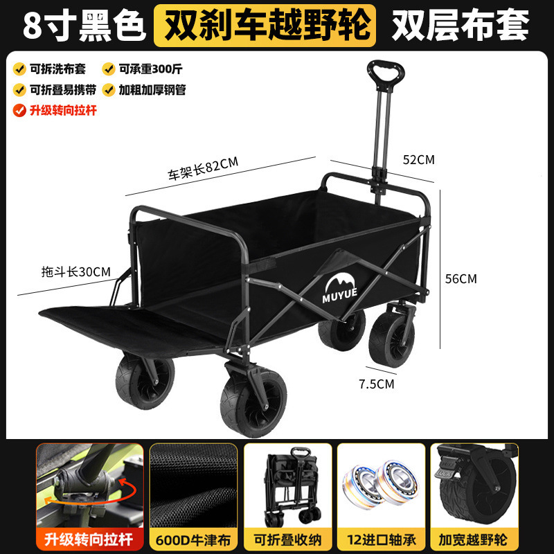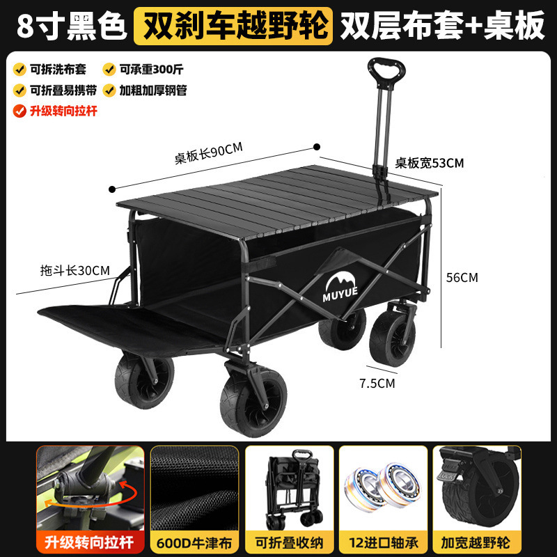 • 블랙 [이중 두꺼운 옥스포드 천] - 대형 / 8inch 오프로드 휠 / 더블 브레이크 / 티핑 버킷 스타일 + 블랙 테이블
