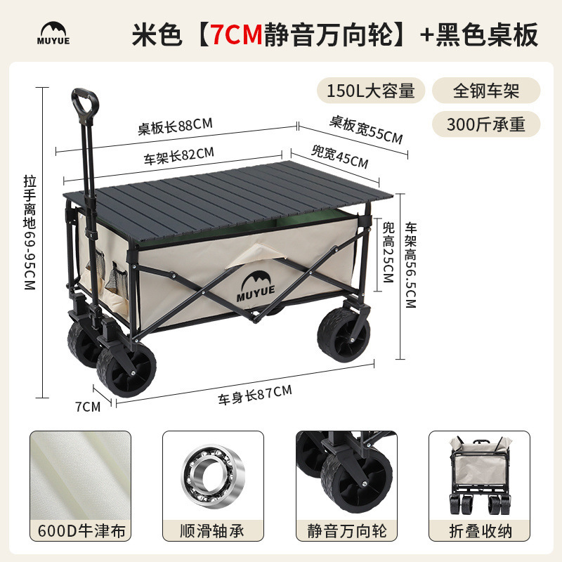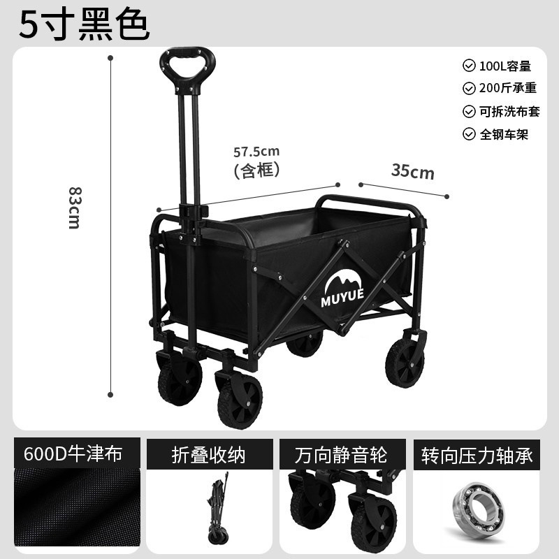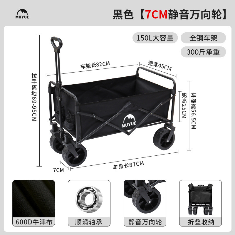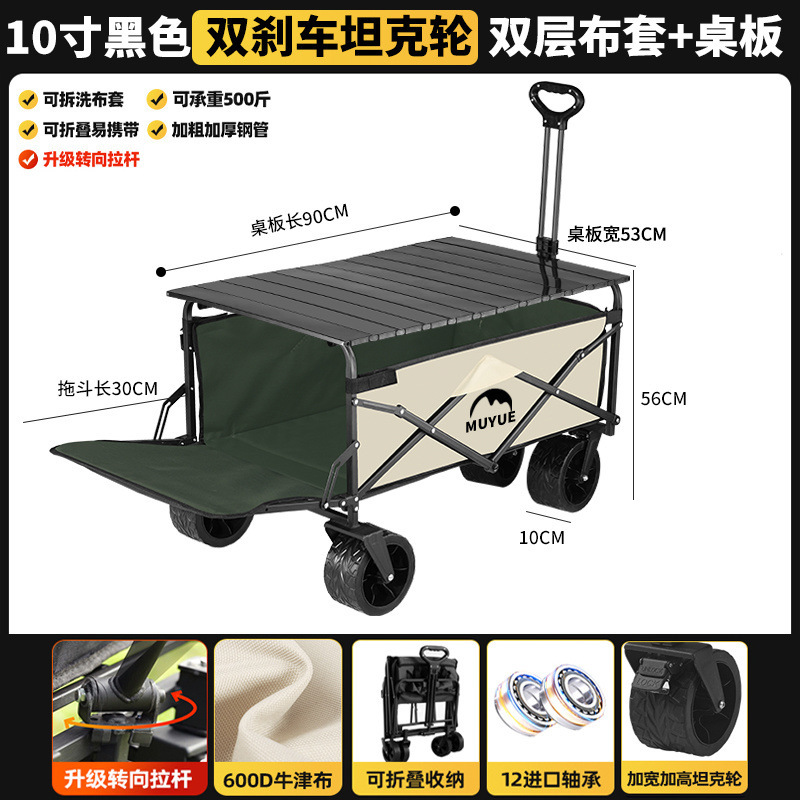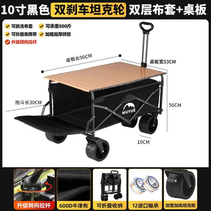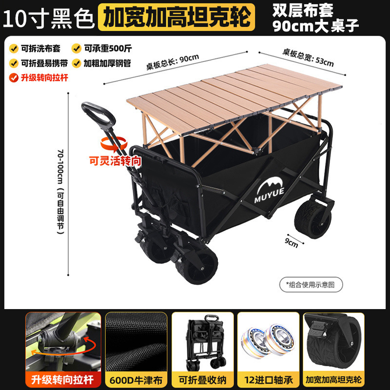 • 블랙 [이중 두꺼운 옥스포드 천] - 대형 / 8inch 오프로드 휠 / 더블 브레이크 / 티핑 버킷 스타일 + 블랙 테이블