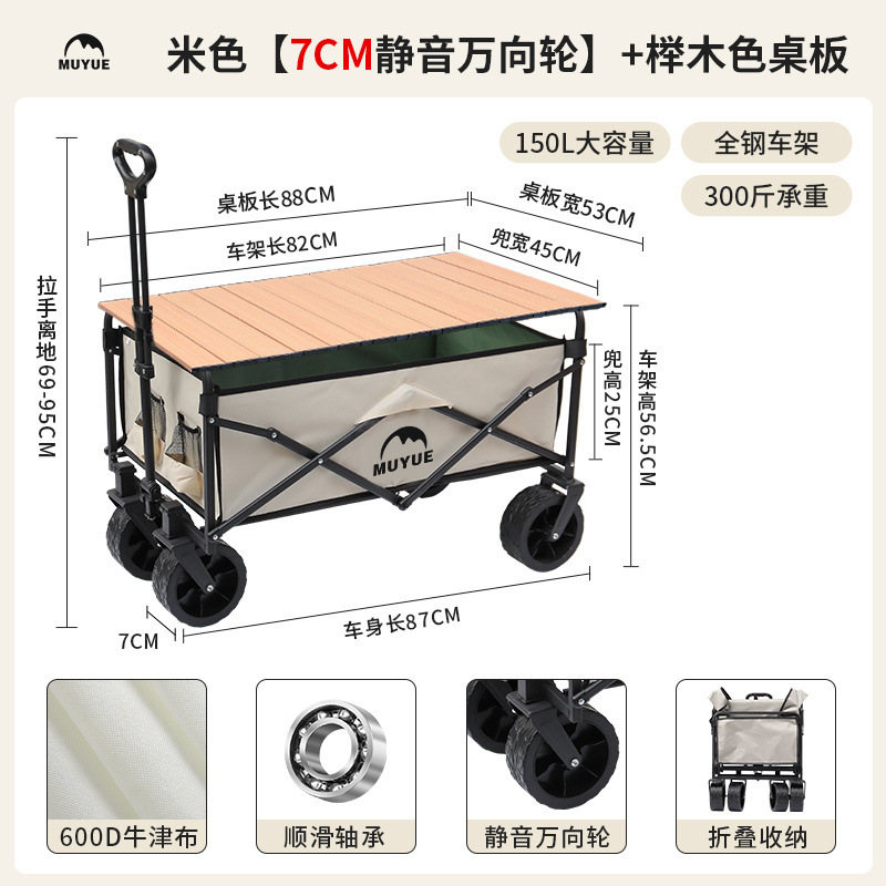 • 카드 그린 [이중 두꺼운 옥스포드 천] - 대형 / 8inch 베어링 고무 바퀴 + 나뭇결 접이식 테이블
