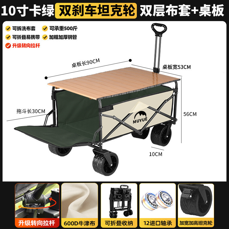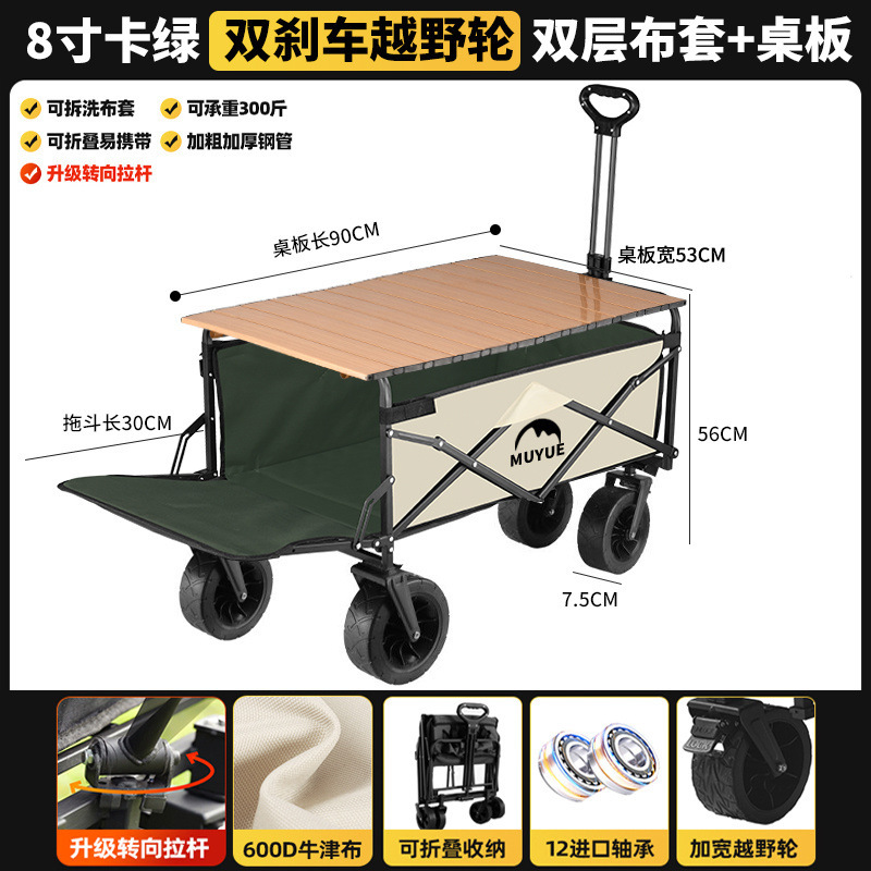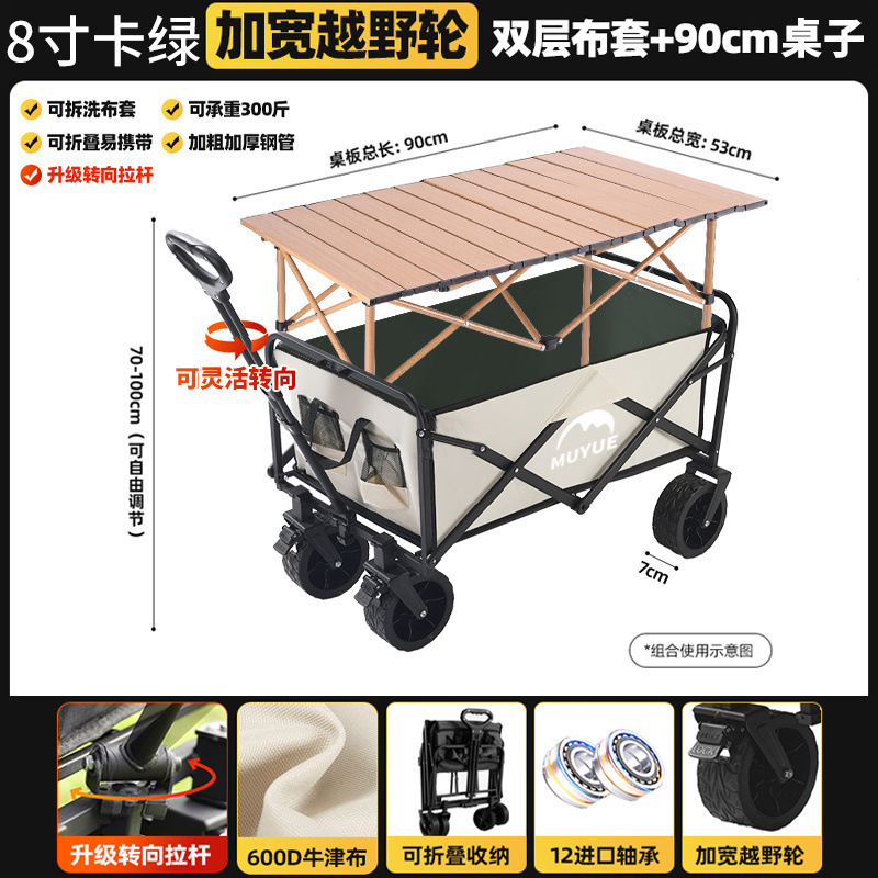 • 카드 그린 [이중 두꺼운 옥스포드 천] - 업그레이드/ 8inch 오프로드 휠/더블 브레이크 + 강화된 나뭇결 테이블