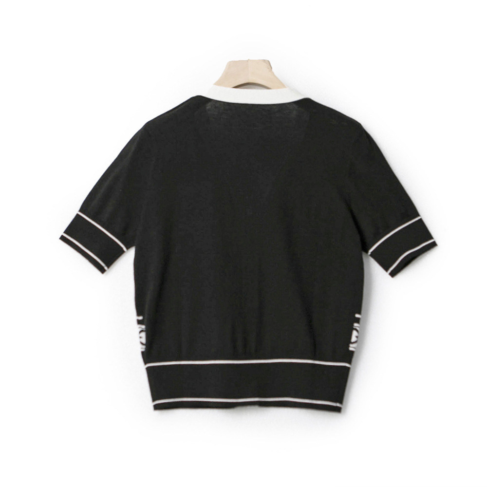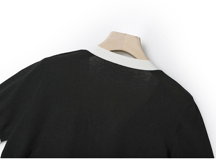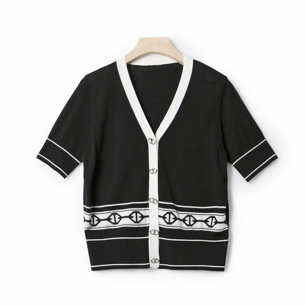그는 * 돼지 코 버클 대비 색상 슬리밍 조커 니트 반소매 카디건 여성스토어 가기