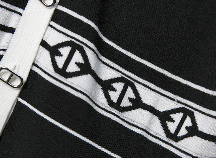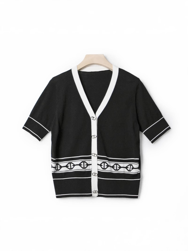 그는 * 돼지 코 버클 대비 색상 슬리밍 조커 니트 반소매 카디건 여성