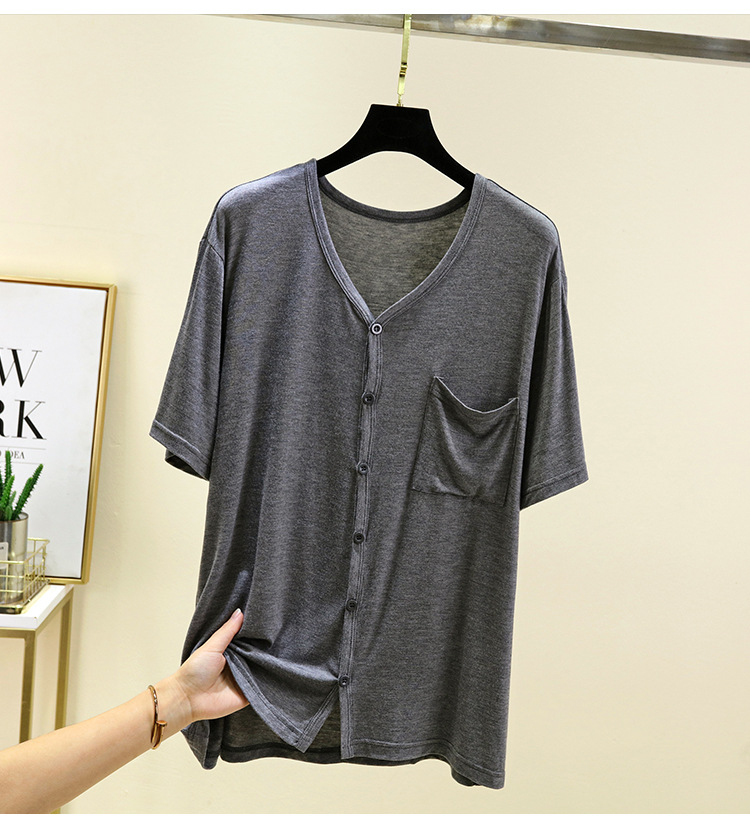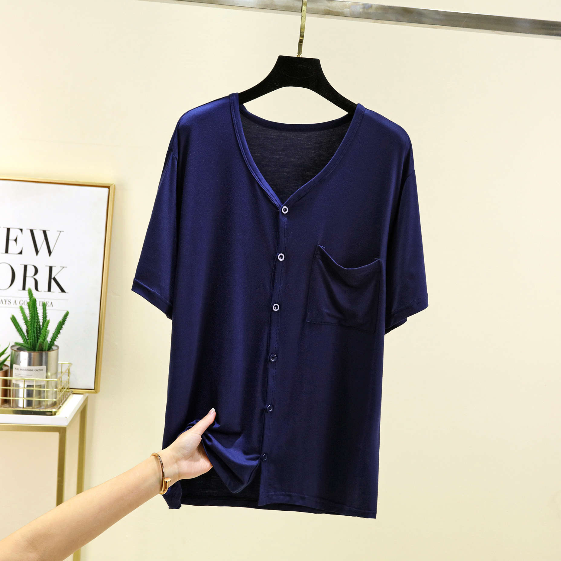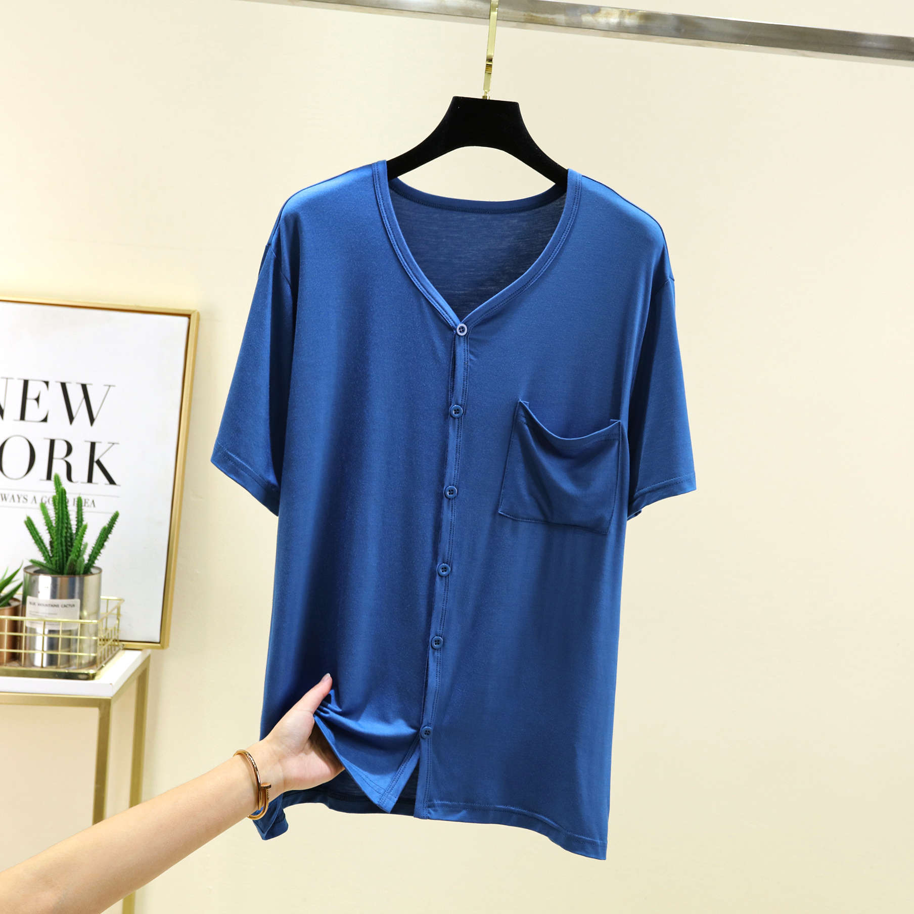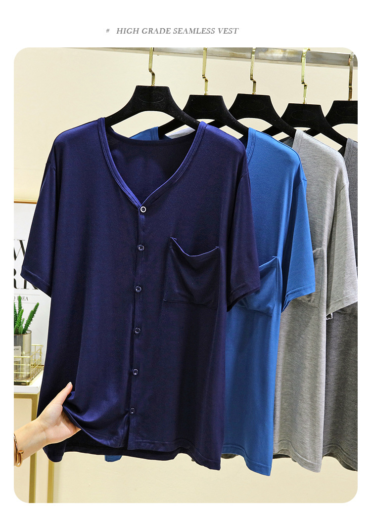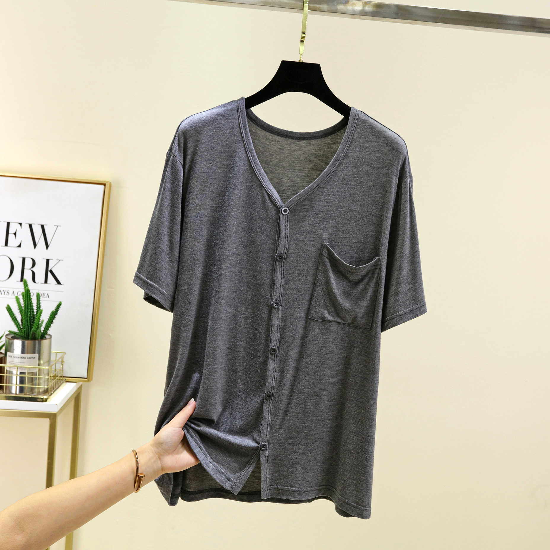 남성 모달 반팔 언더셔츠 브이넥 얇은 여름 반팔 가디건 탑 플러스 사이즈 버튼 포켓 바닥 셔츠