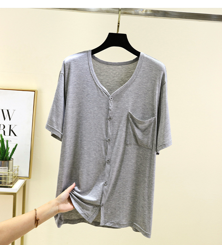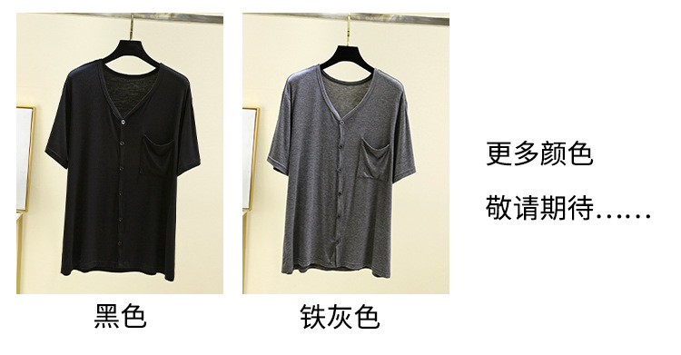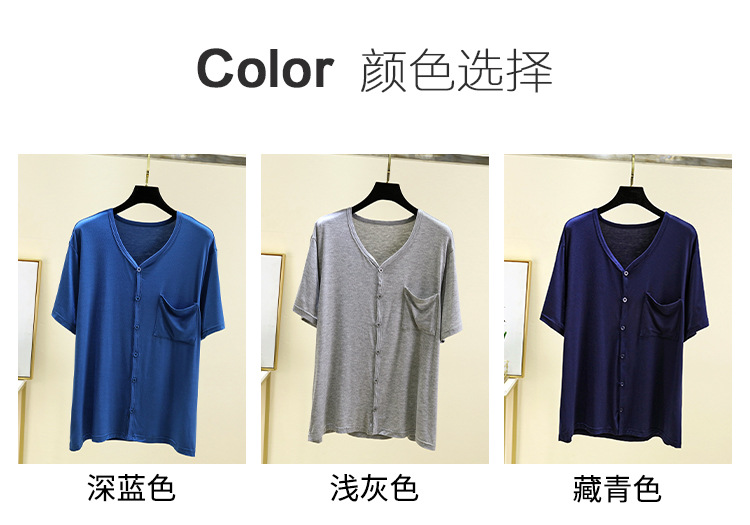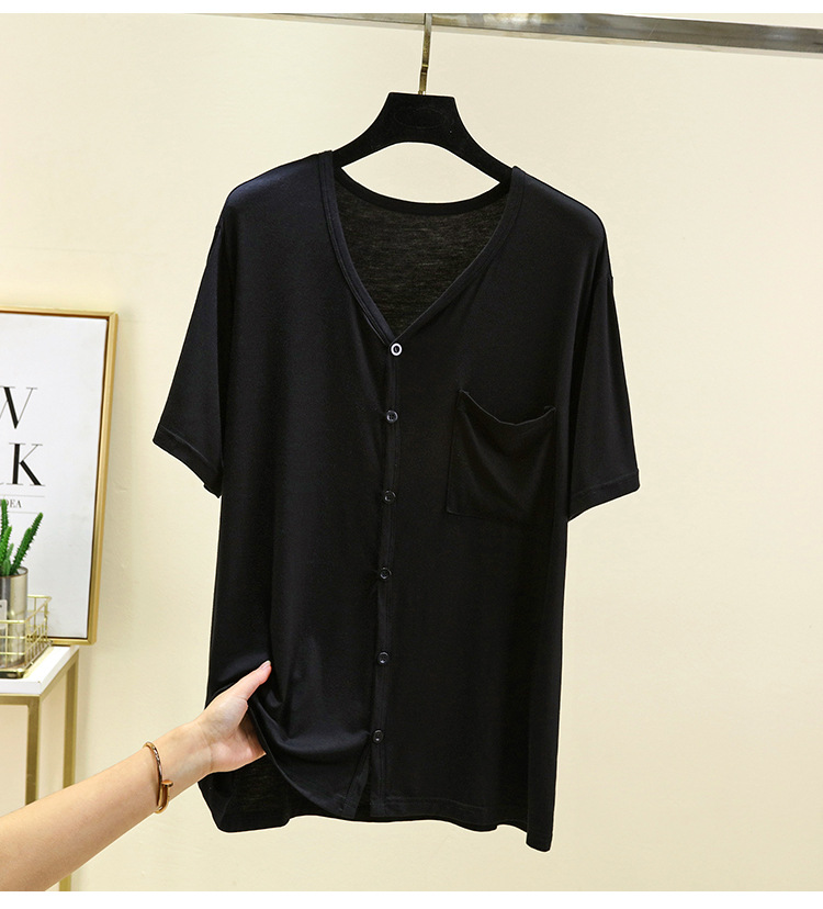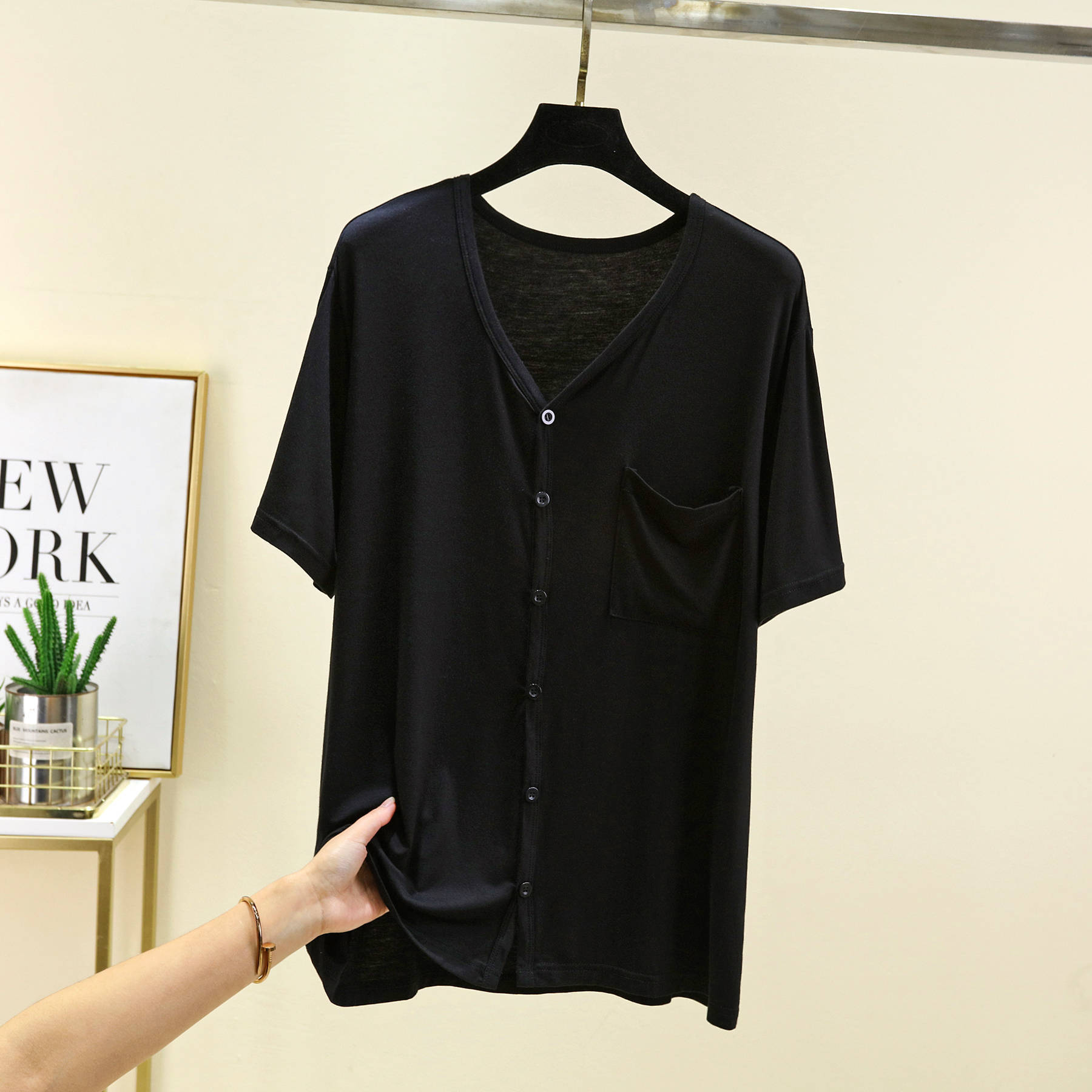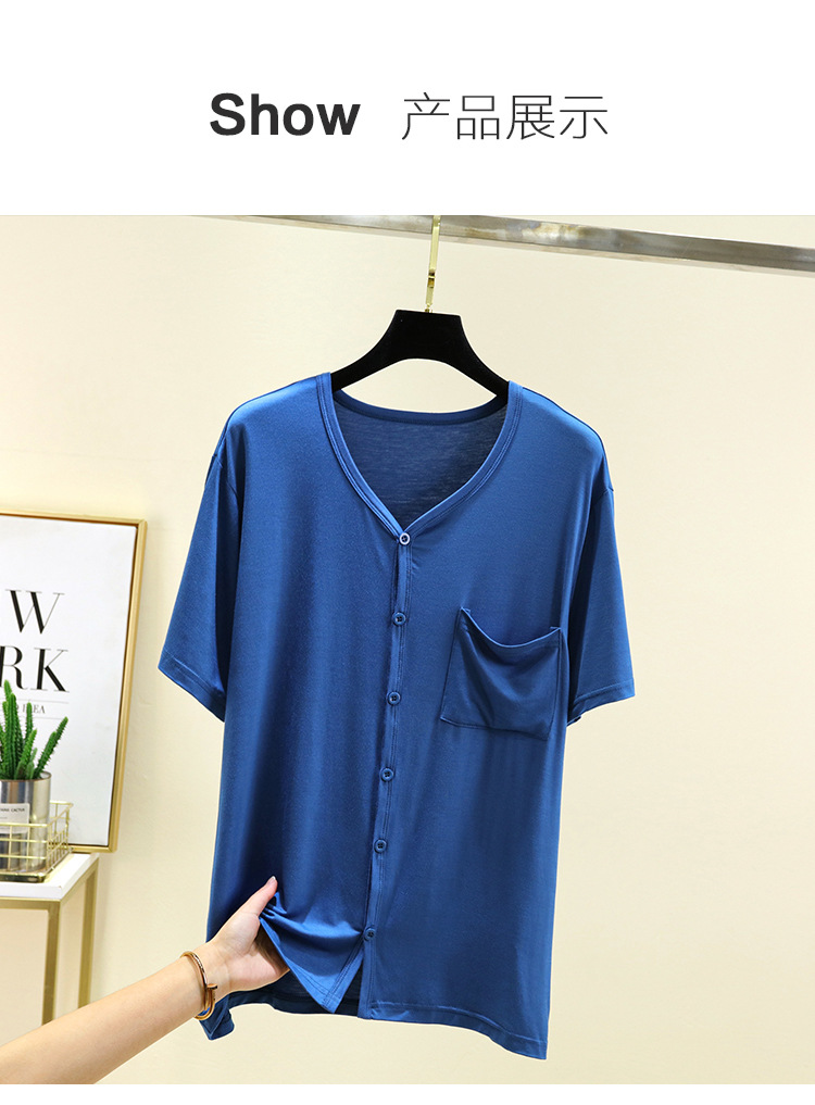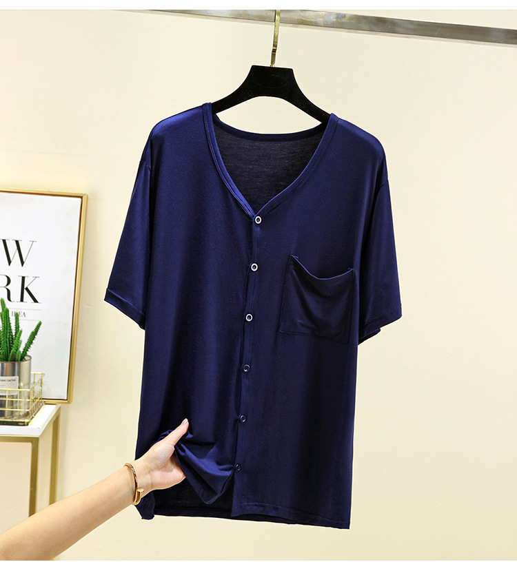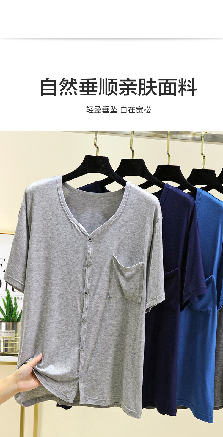 남성 모달 반팔 언더셔츠 브이넥 얇은 여름 반팔 가디건 탑 플러스 사이즈 버튼 포켓 바닥 셔츠