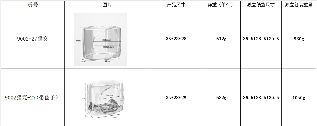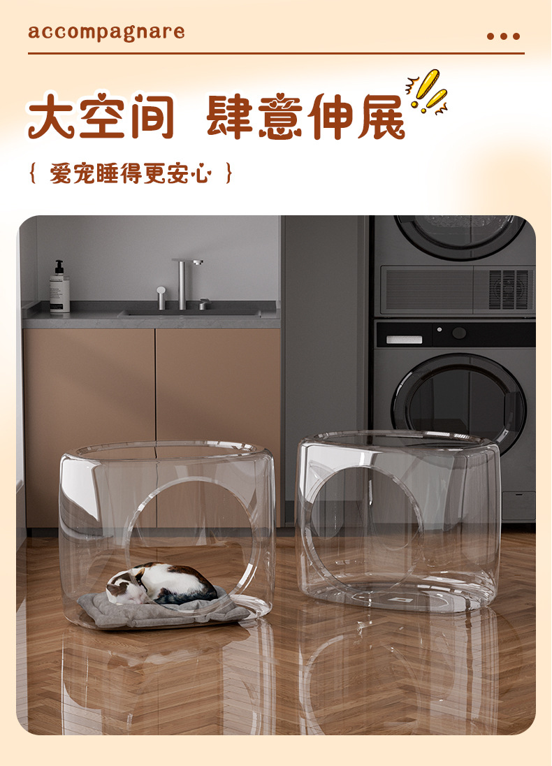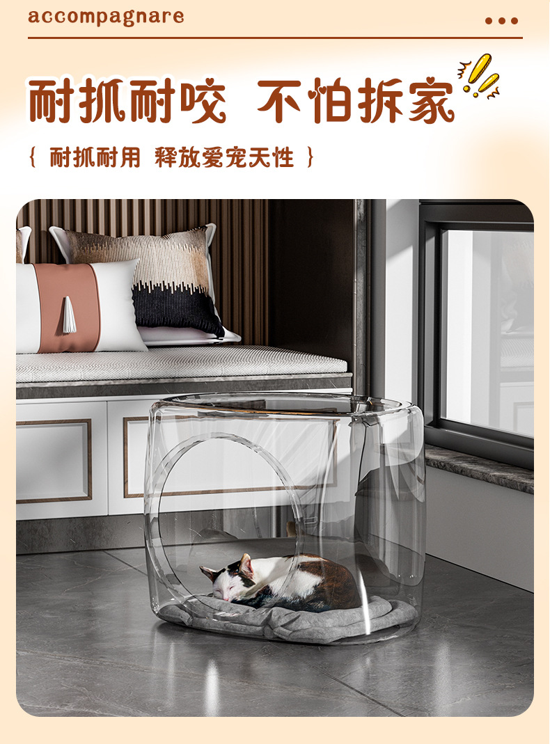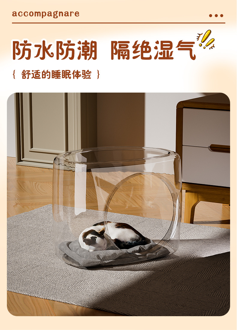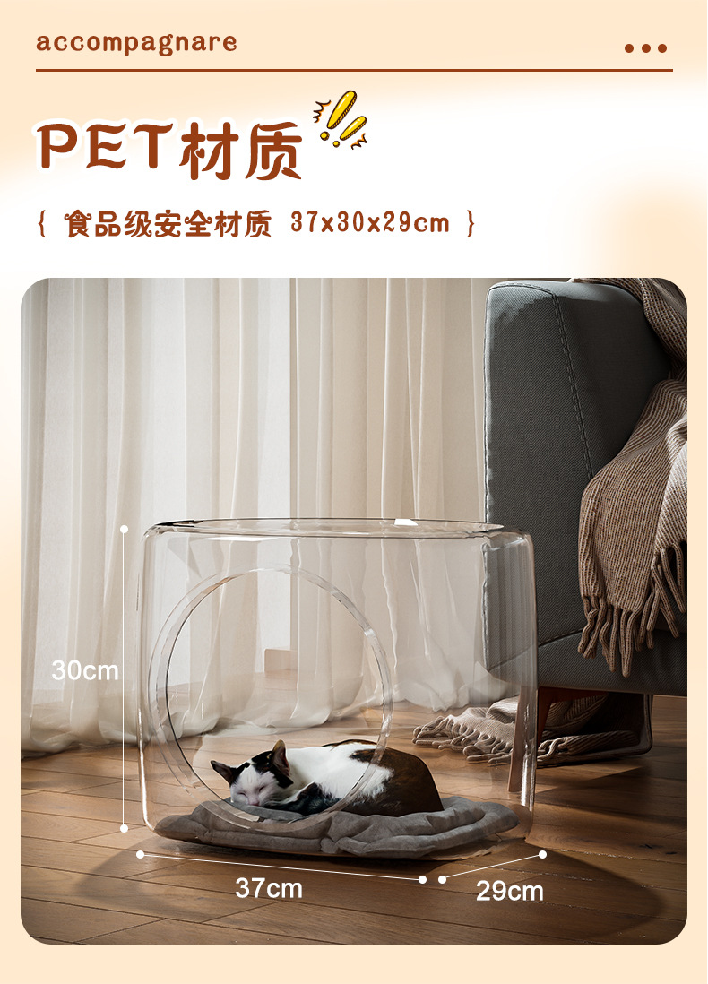 가정용 고양이 둥지, 애완동물 투명 고양이 둥지, 통기성 입구, 소형 크기, 얼음 매트, 담요, 반 밀폐형 고양이 수면