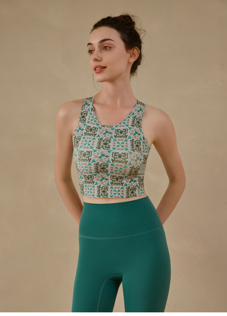 2025 봄과 여름 원활한 고정 유방 패드 3 차원 여성 스포츠 속옷 요가 조끼 인쇄 동양 미학 여성