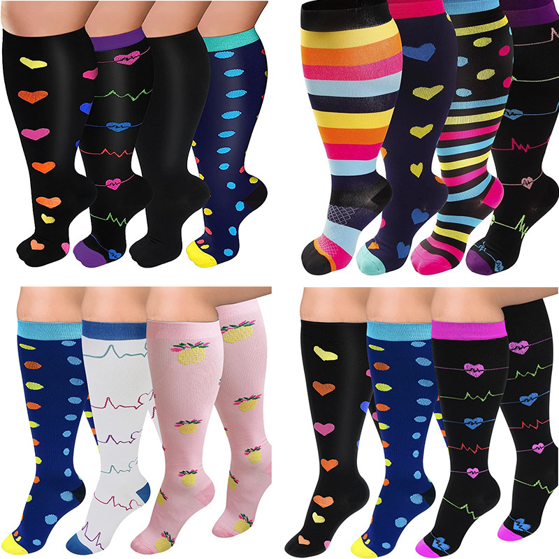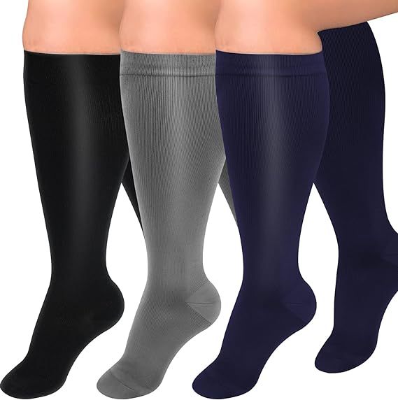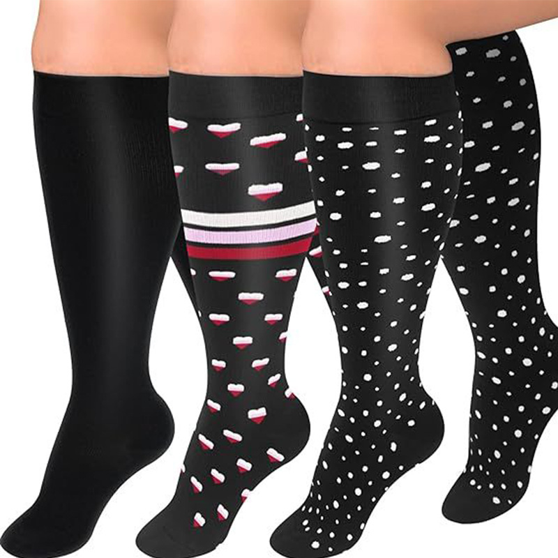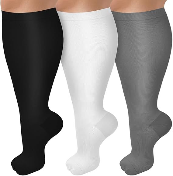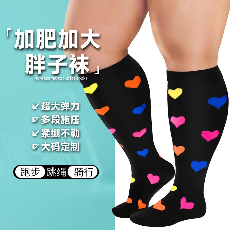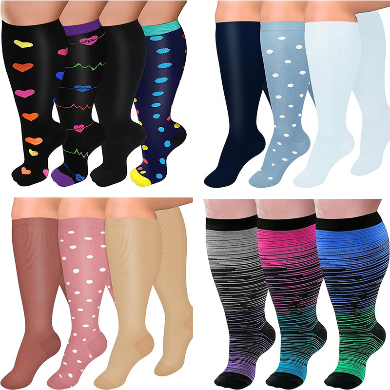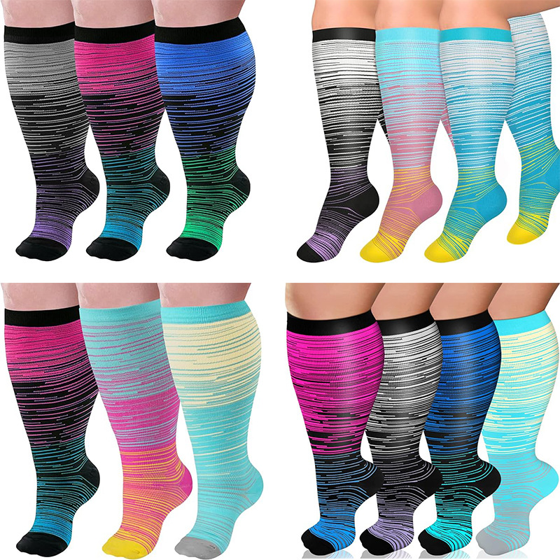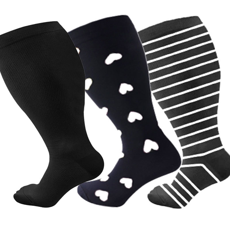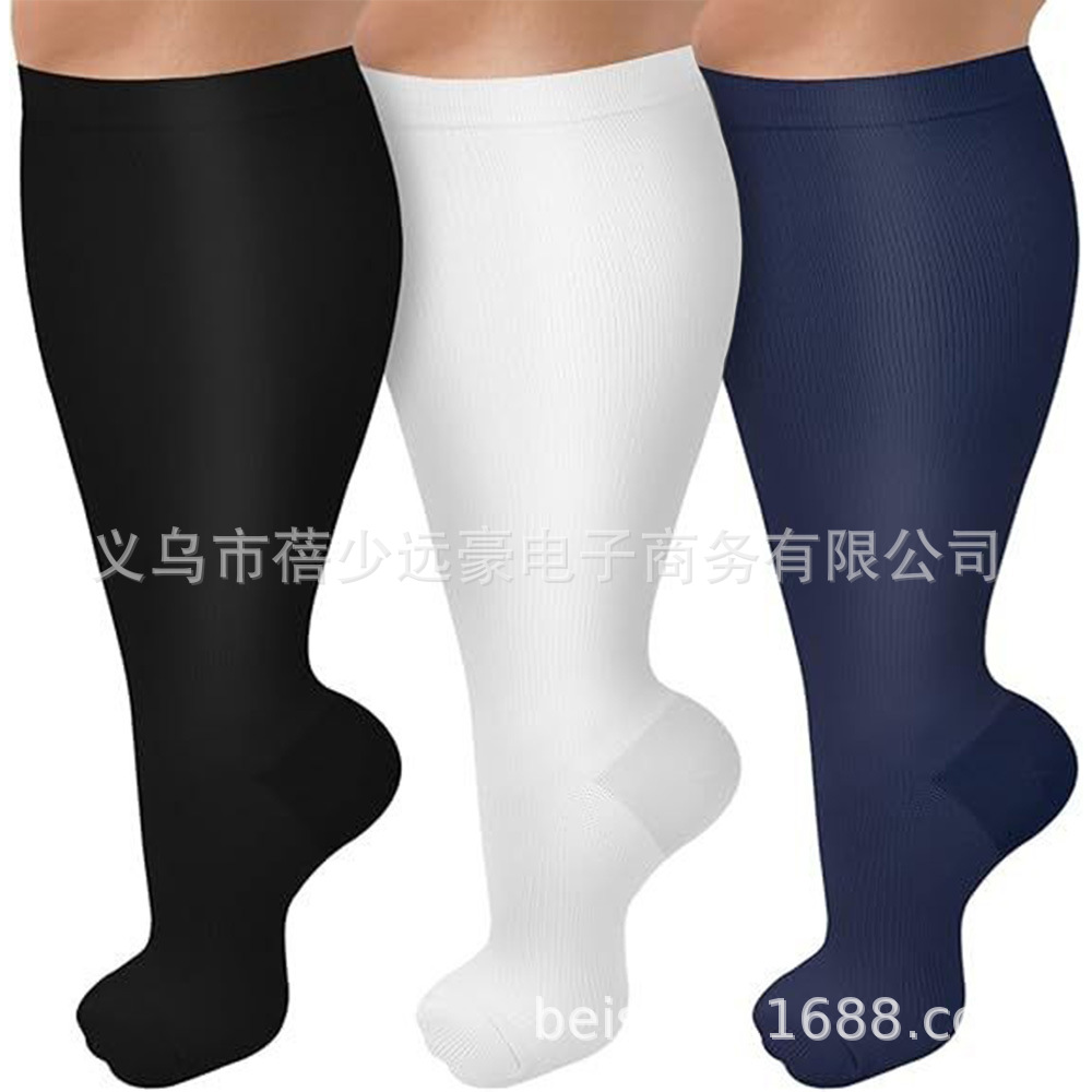 크로스보더 플러스 사이즈 압축 양말 3켤레, 와이드 종아리, 고탄성 뚱뚱한 양말, 종아리 양말, 스포츠 양말, 압축 양말스토어 가기