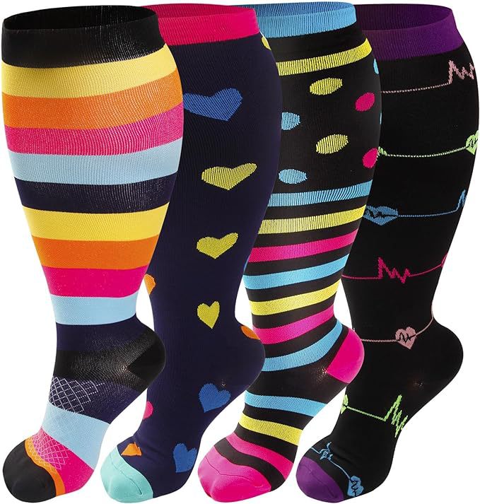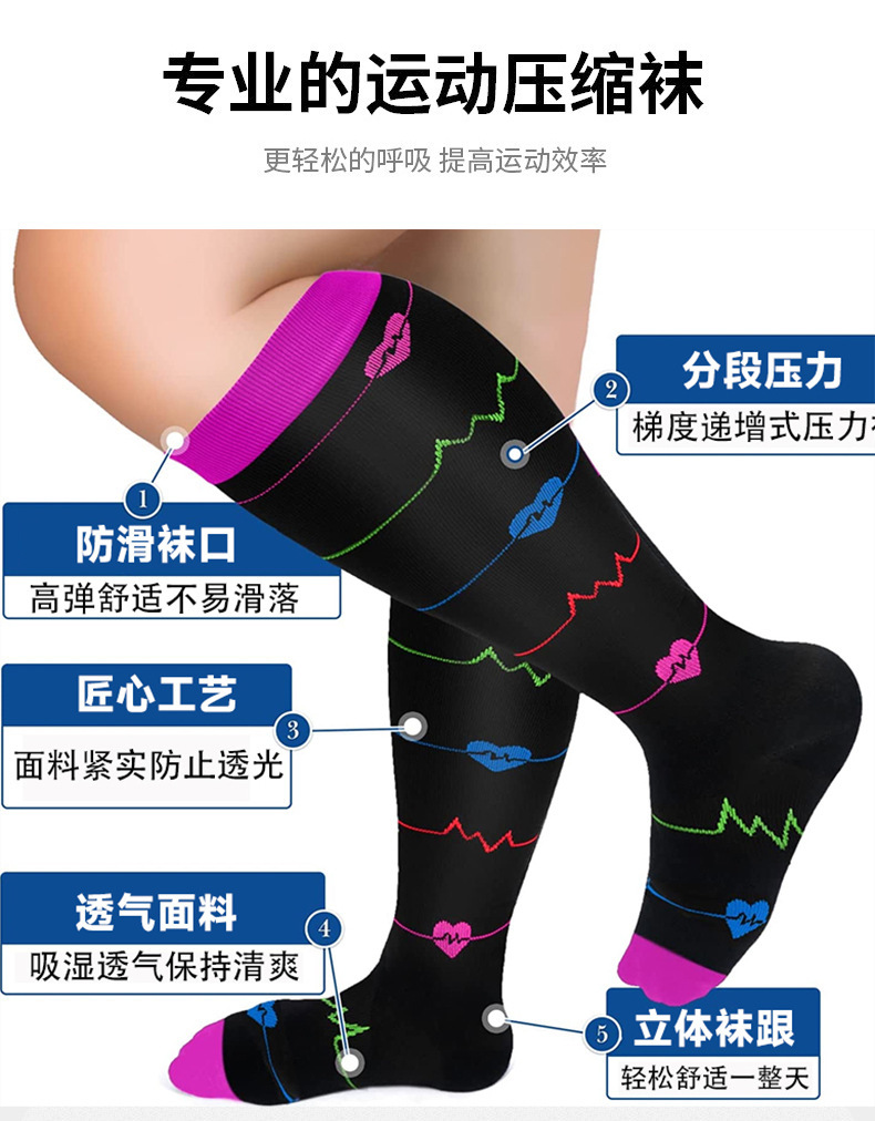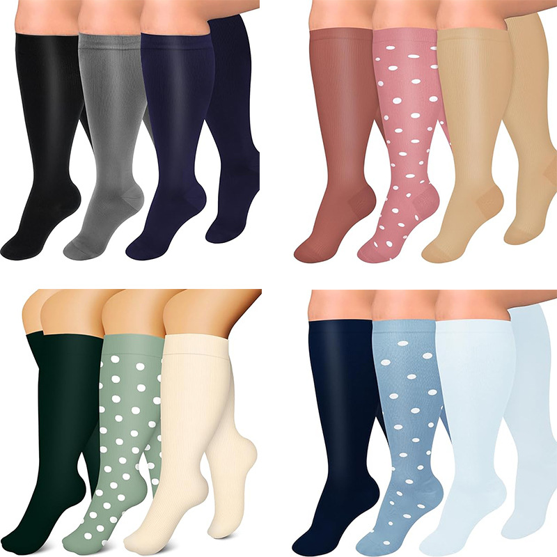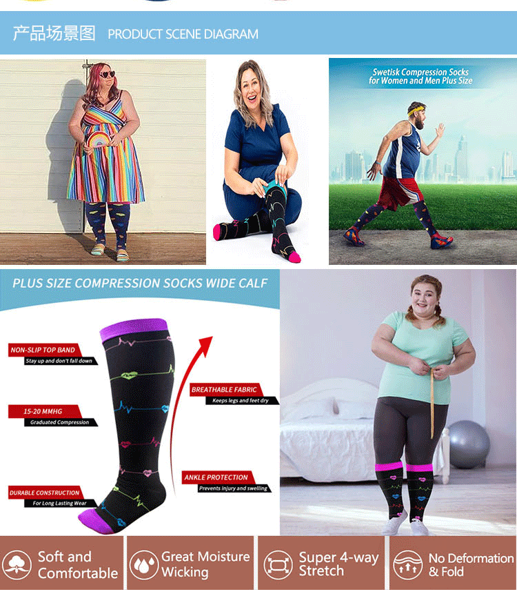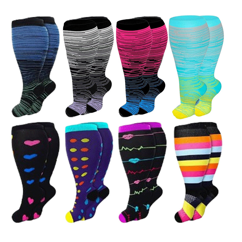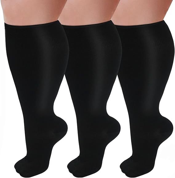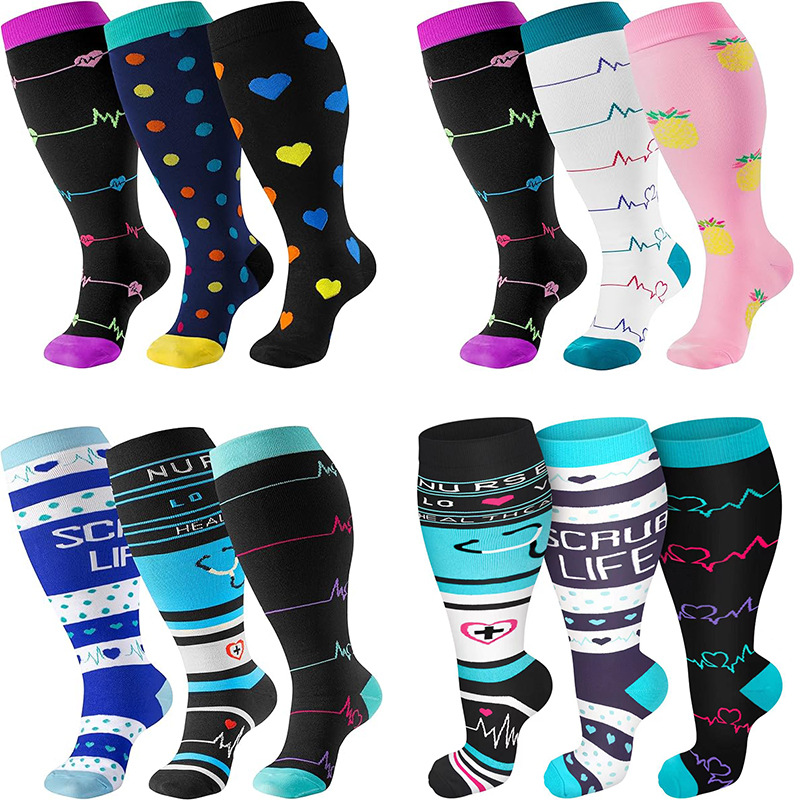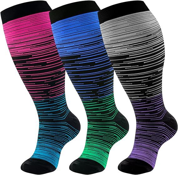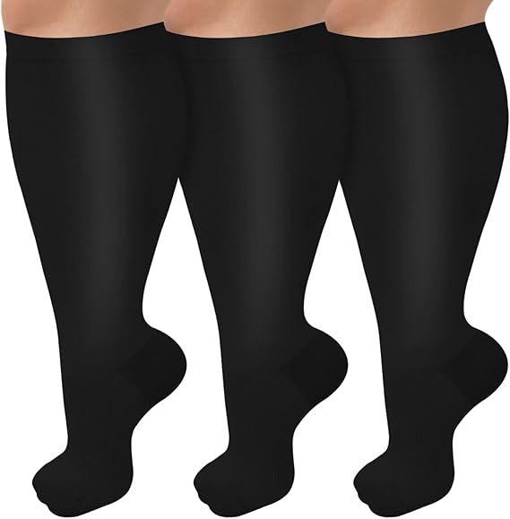 크로스보더 플러스 사이즈 압축 양말 3켤레, 와이드 종아리, 고탄성 뚱뚱한 양말, 종아리 양말, 스포츠 양말, 압축 양말스토어 가기