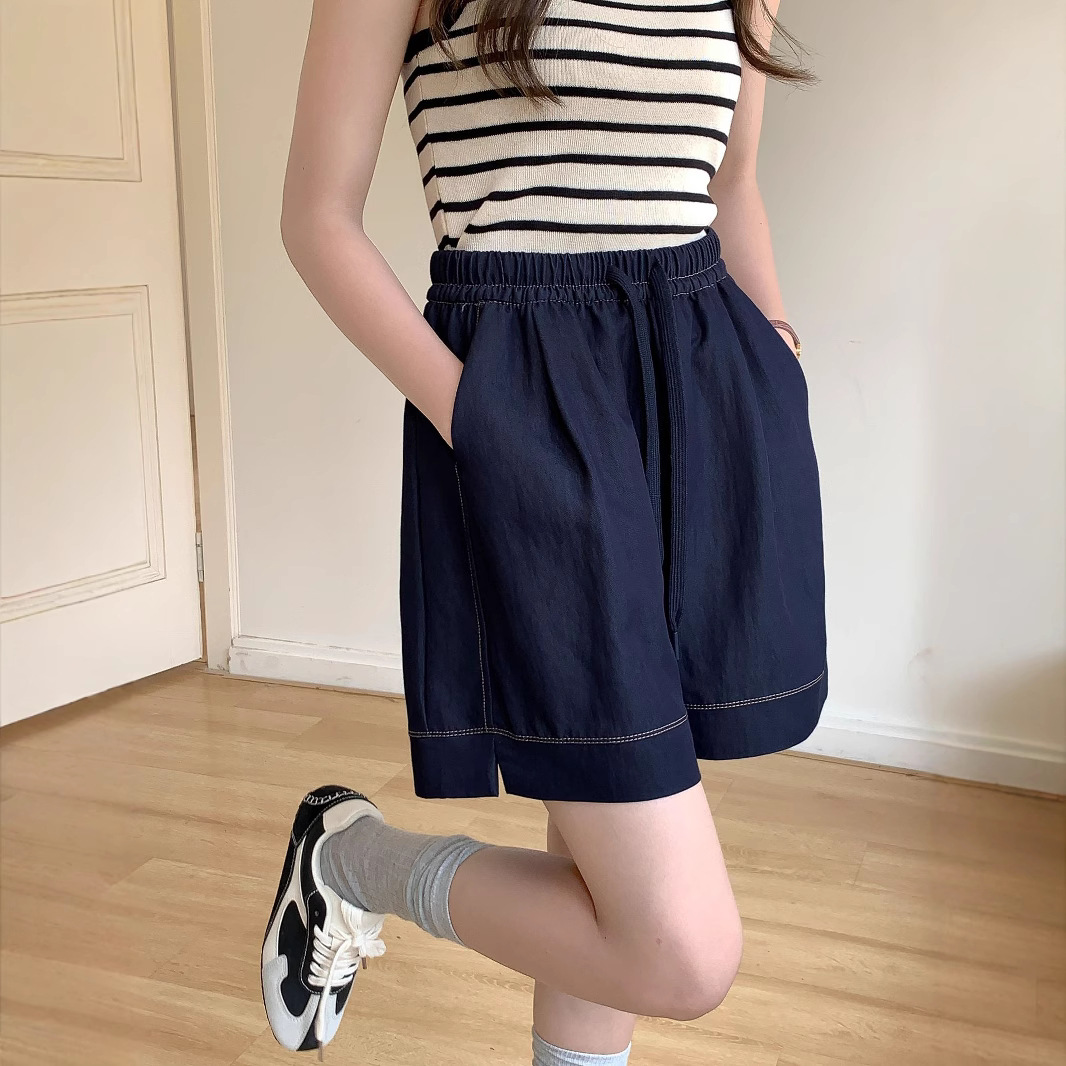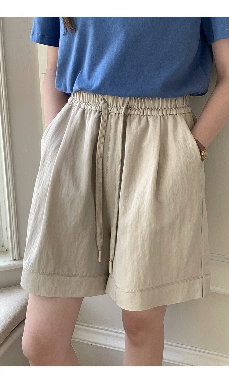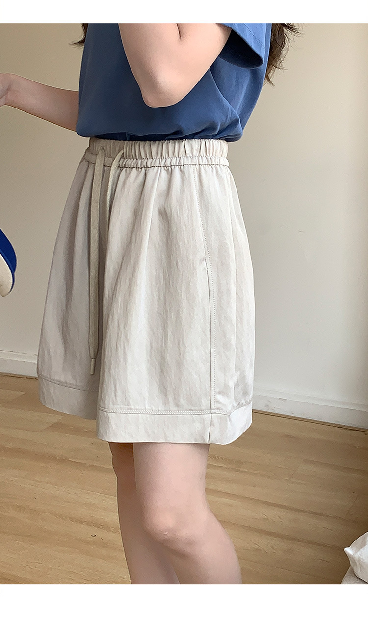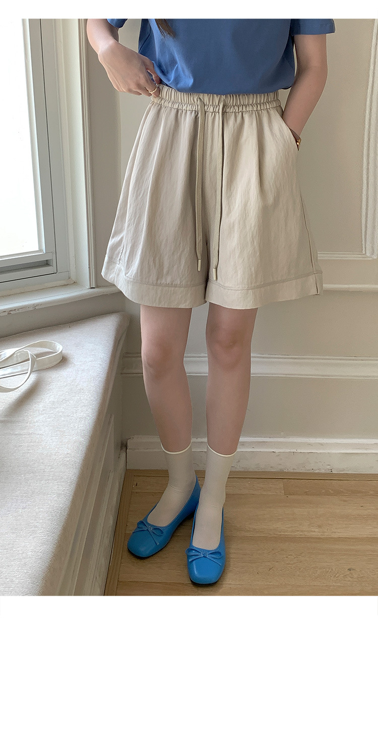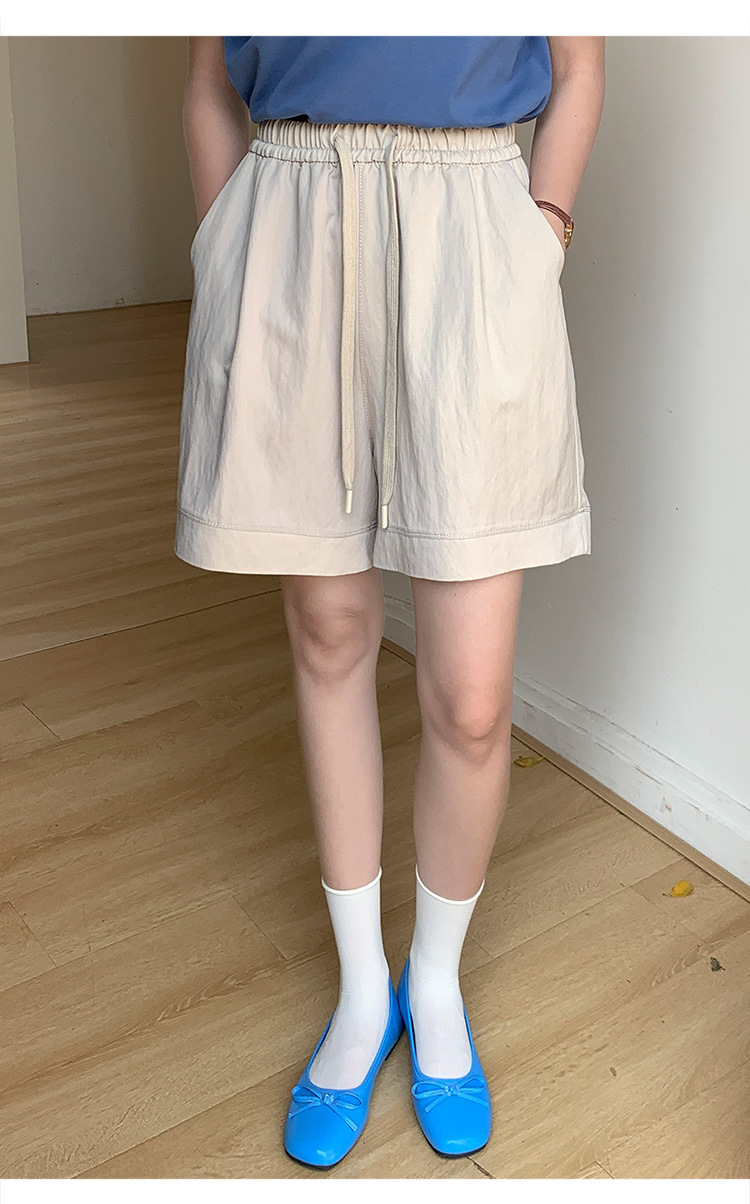 2026 여름 여성용 면 혼방 박시핏 반바지, 레트로 클래식 스타일, 끈으로 조절 가능한 하이웨이스트, 헐렁한 캐주얼 화이트 핫팬츠스토어 가기