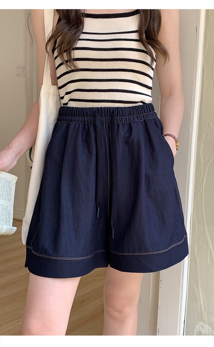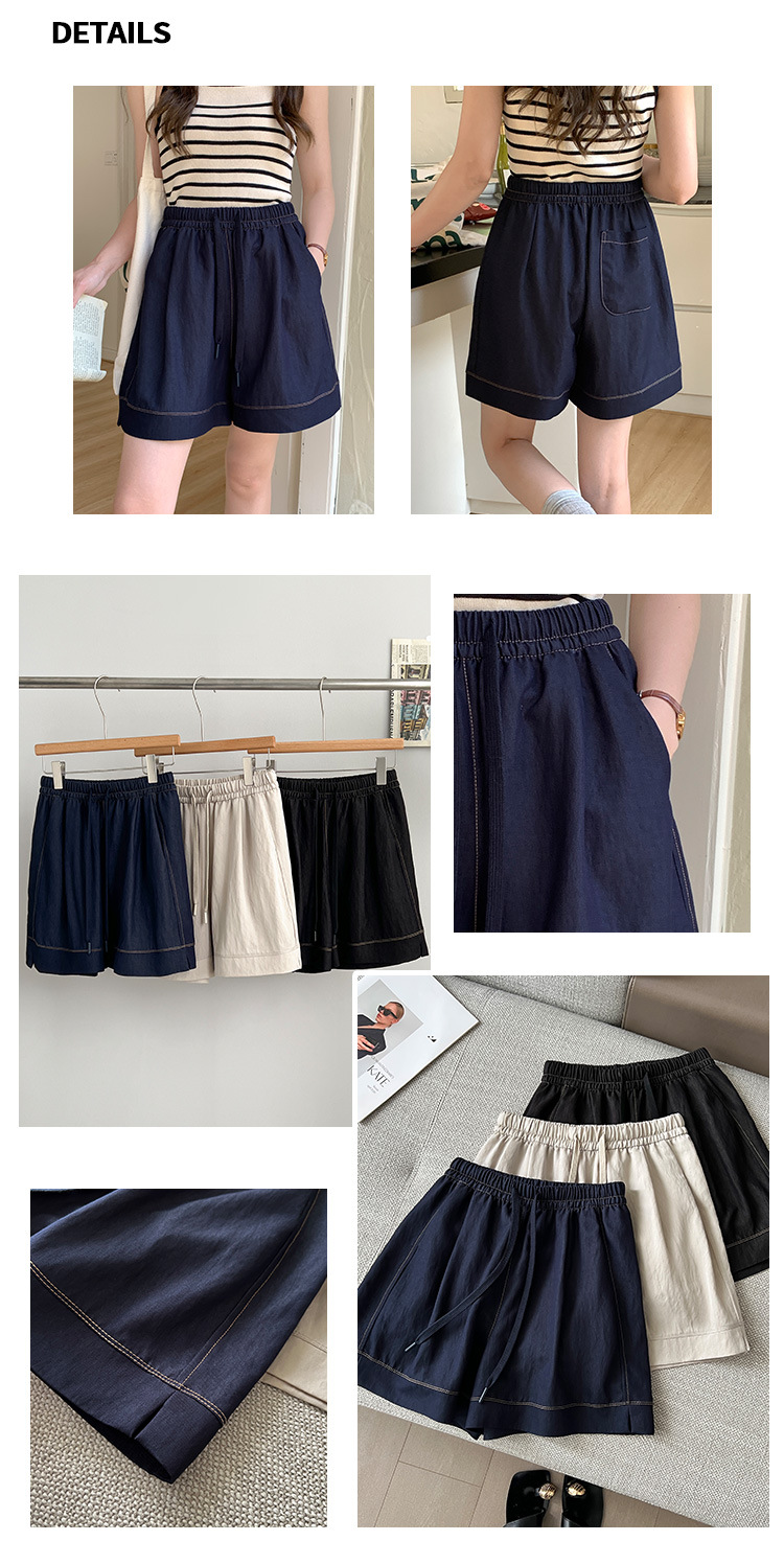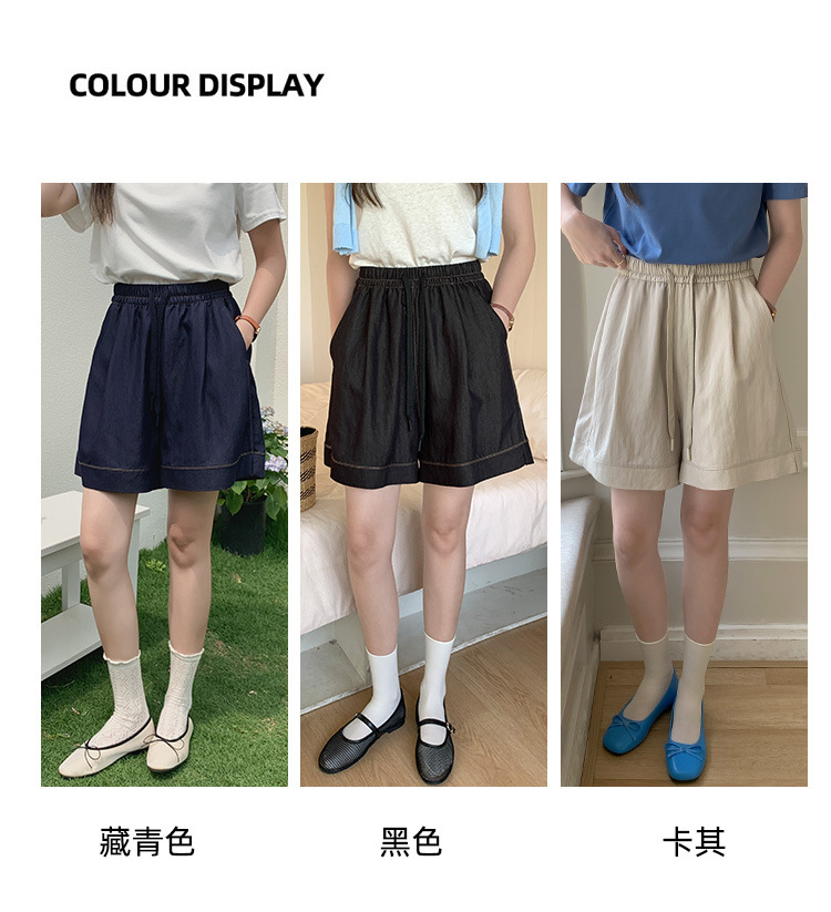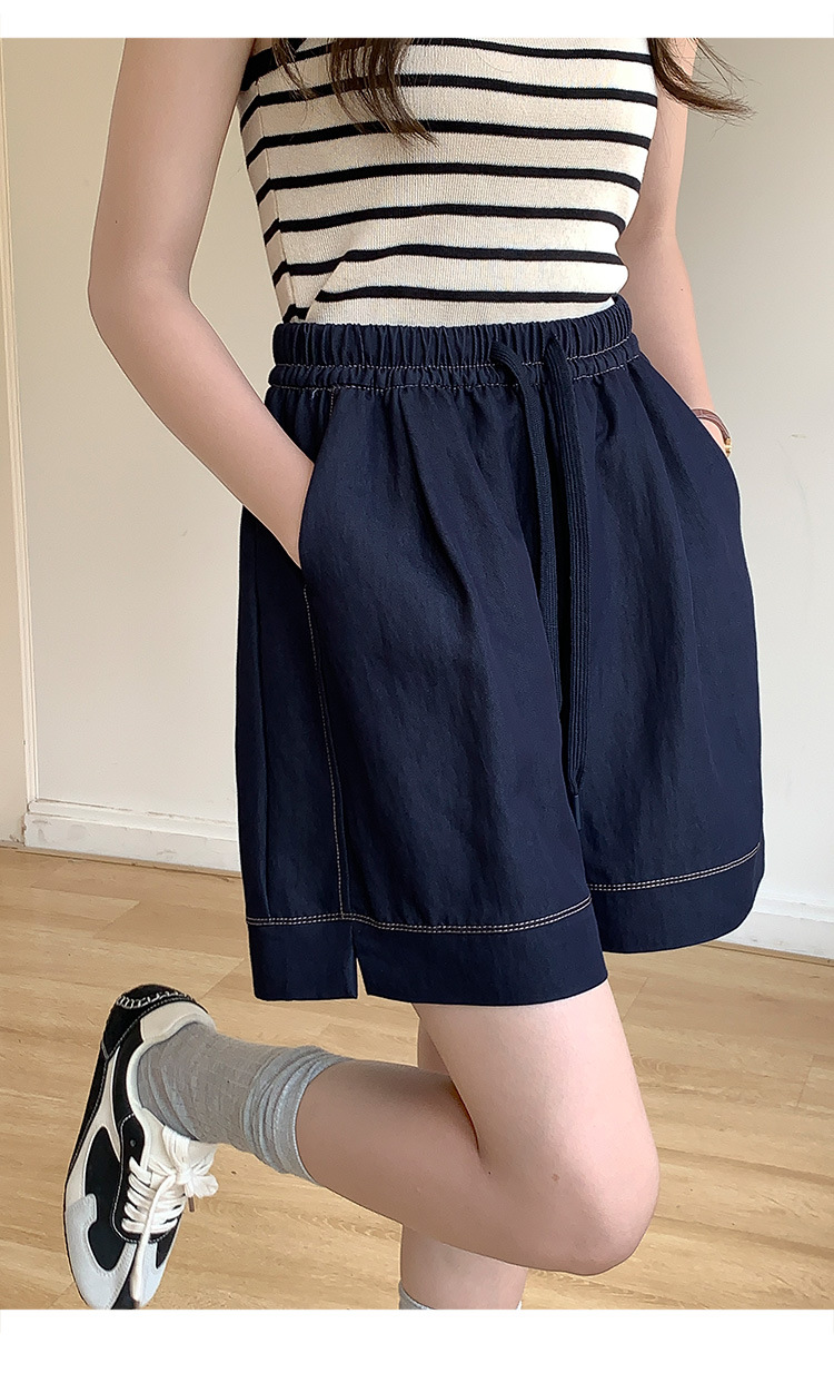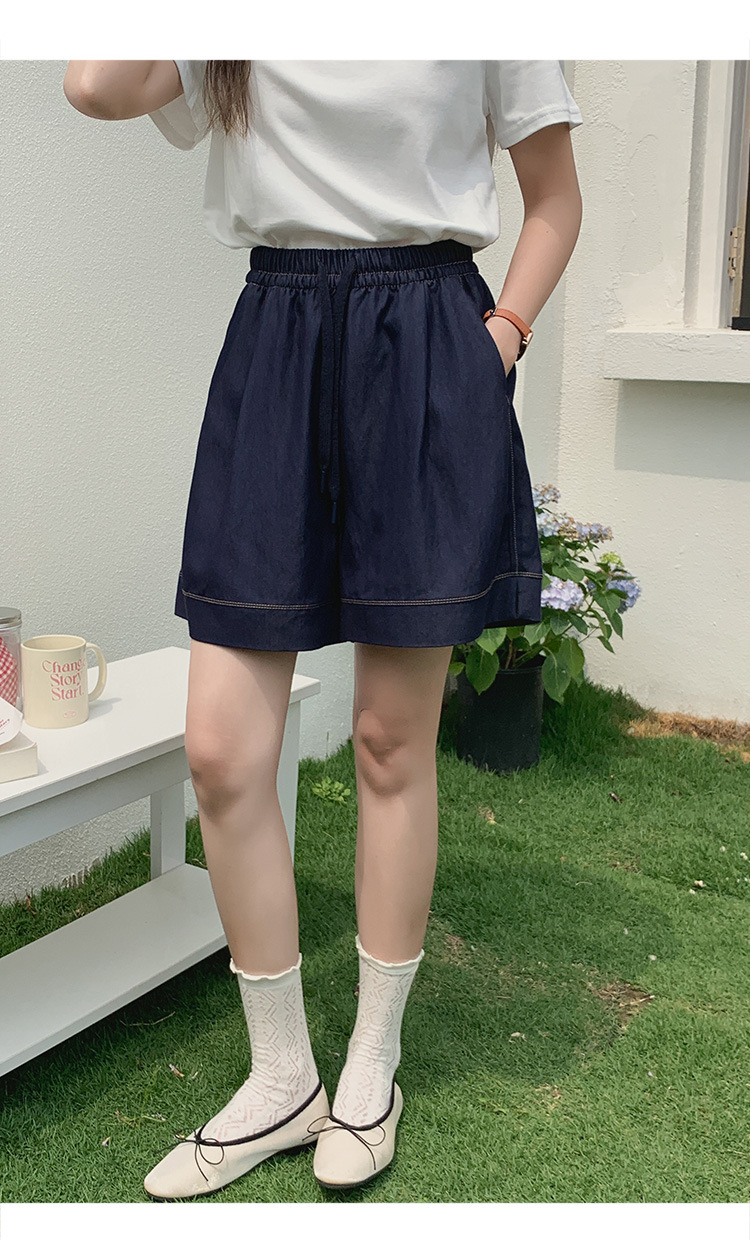 2026 여름 여성용 면 혼방 박시핏 반바지, 레트로 클래식 스타일, 끈으로 조절 가능한 하이웨이스트, 헐렁한 캐주얼 화이트 핫팬츠스토어 가기