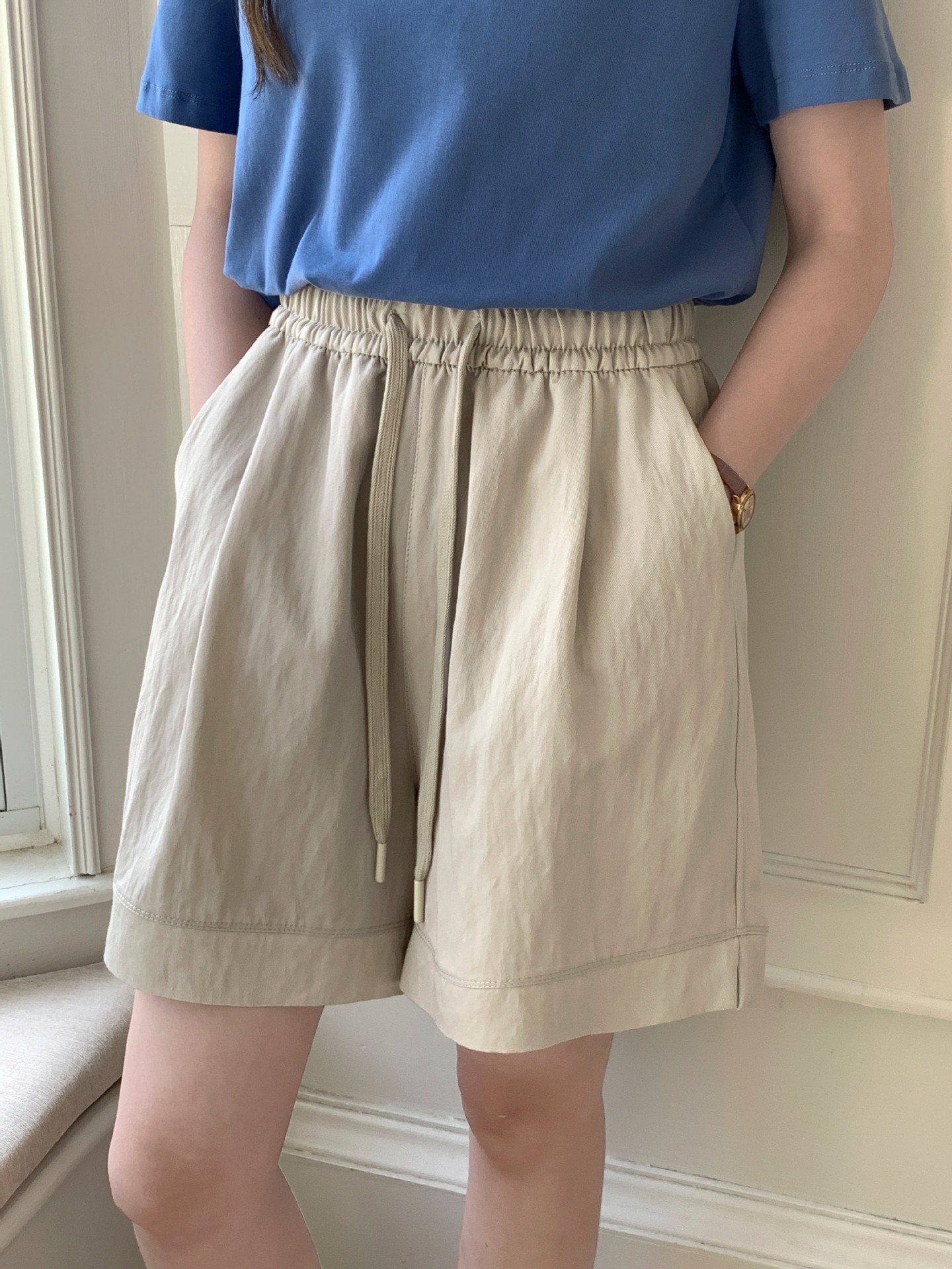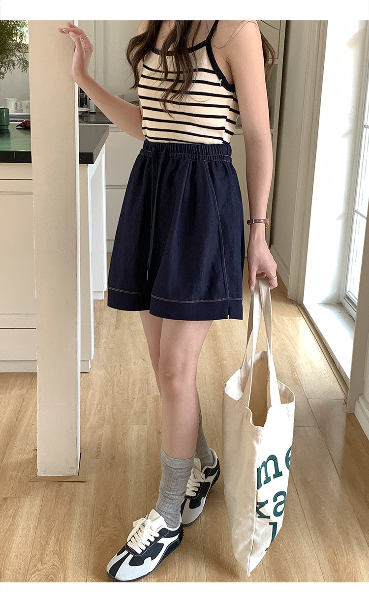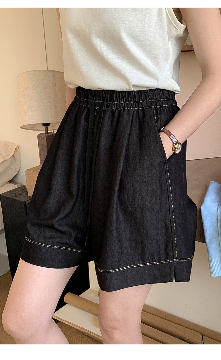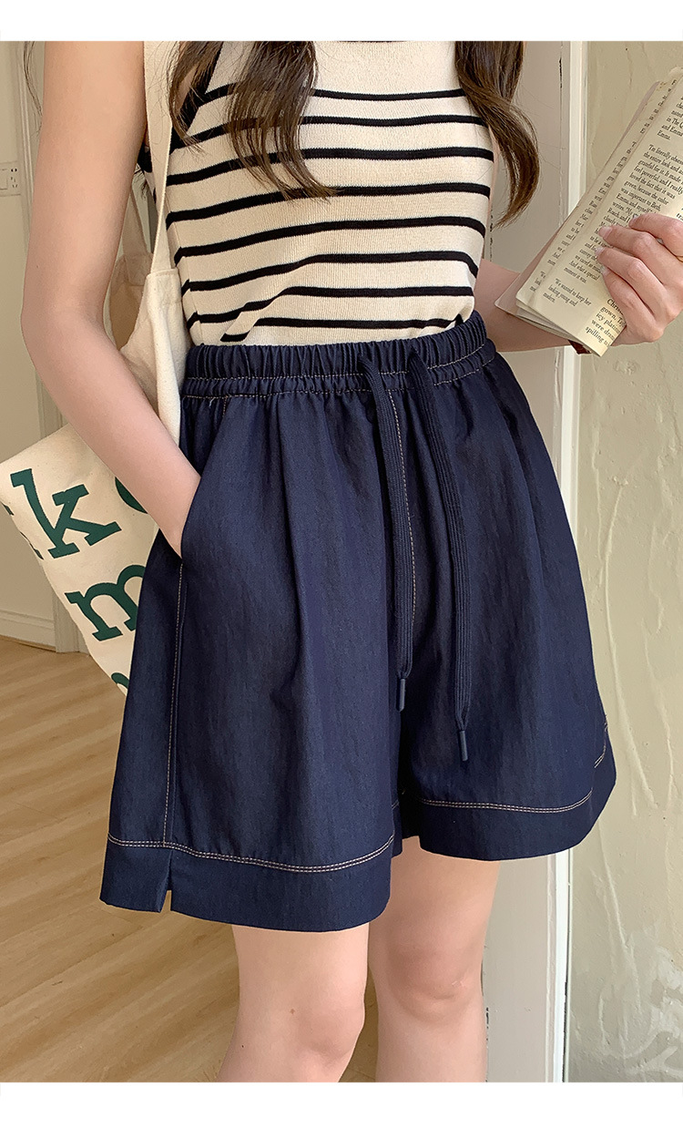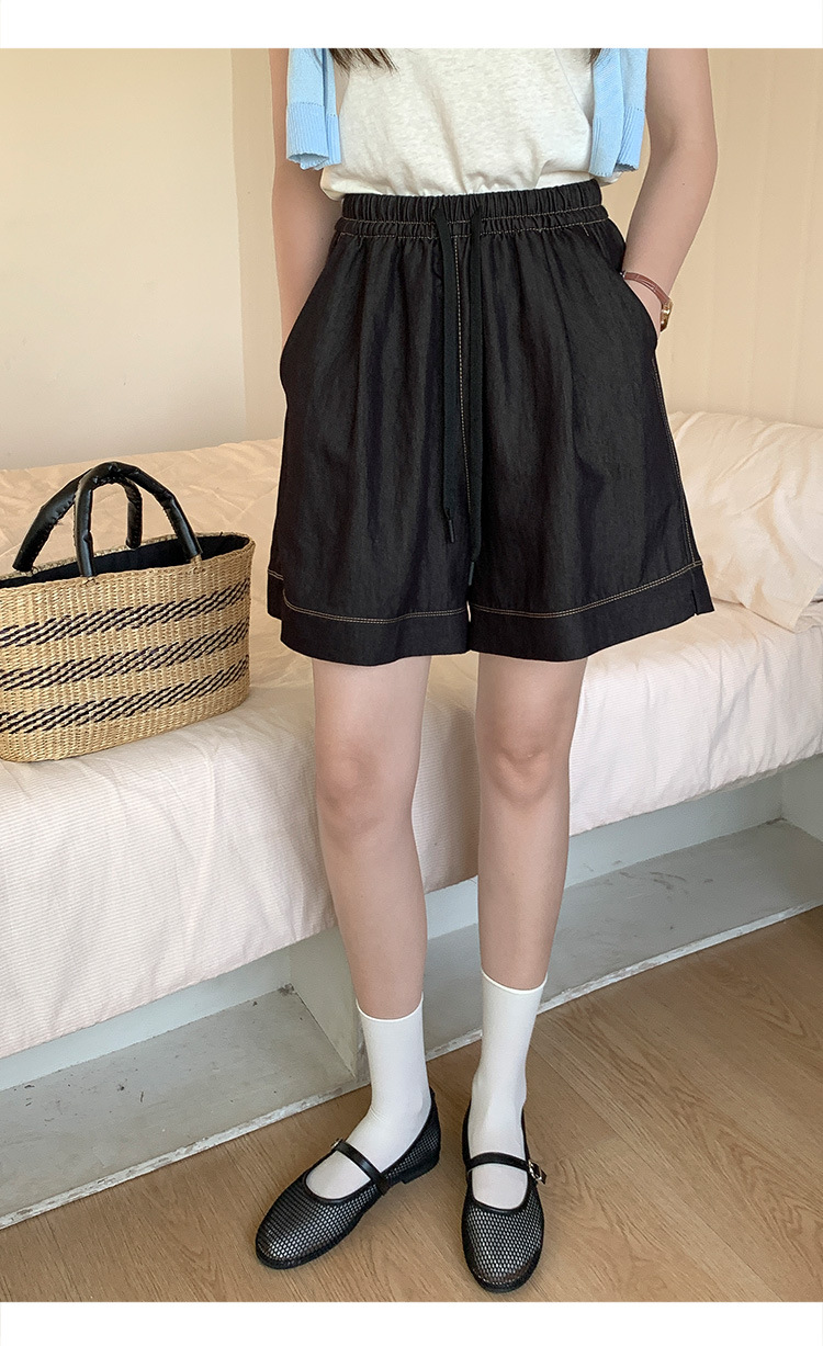2026 여름 여성용 면 혼방 박시핏 반바지, 레트로 클래식 스타일, 끈으로 조절 가능한 하이웨이스트, 헐렁한 캐주얼 화이트 핫팬츠스토어 가기