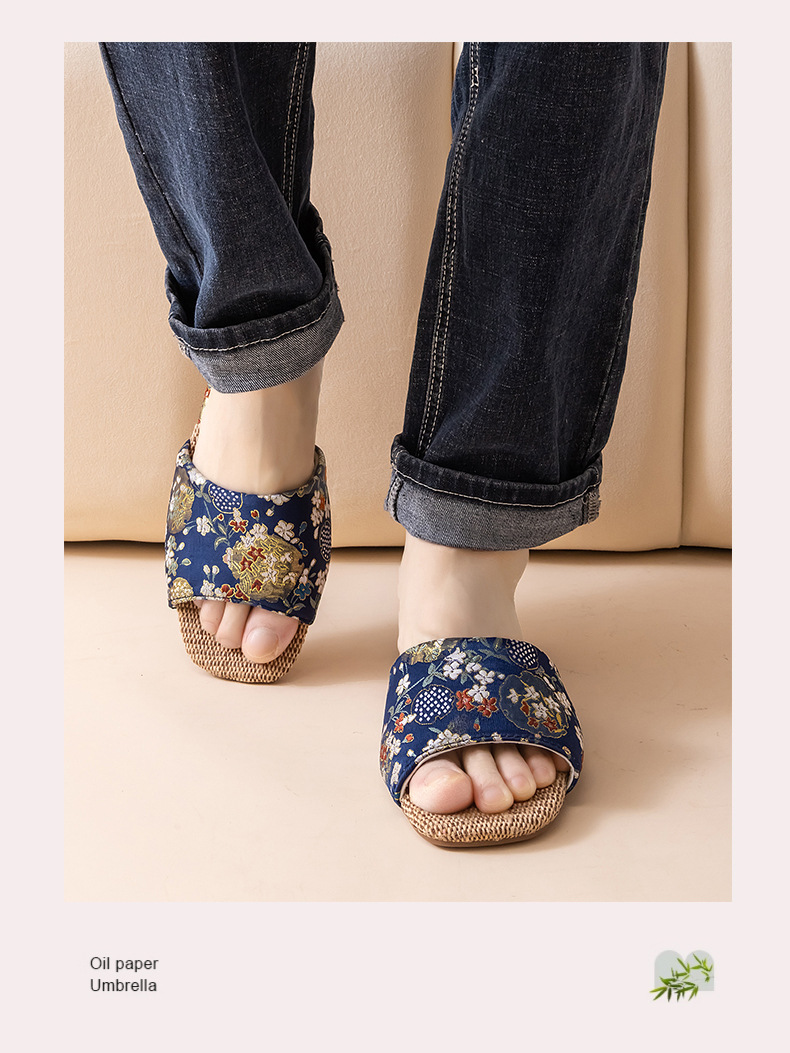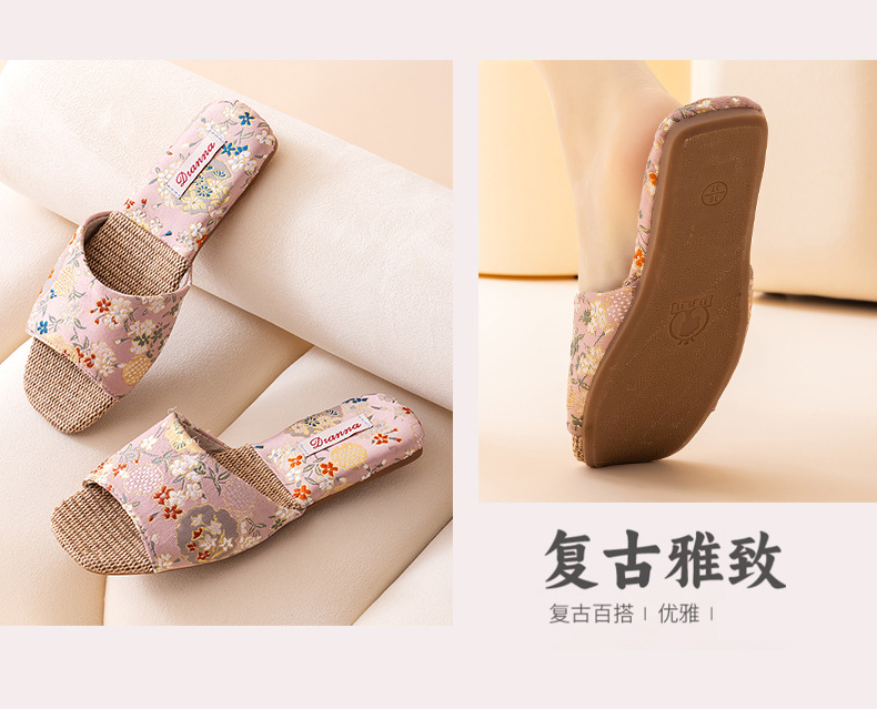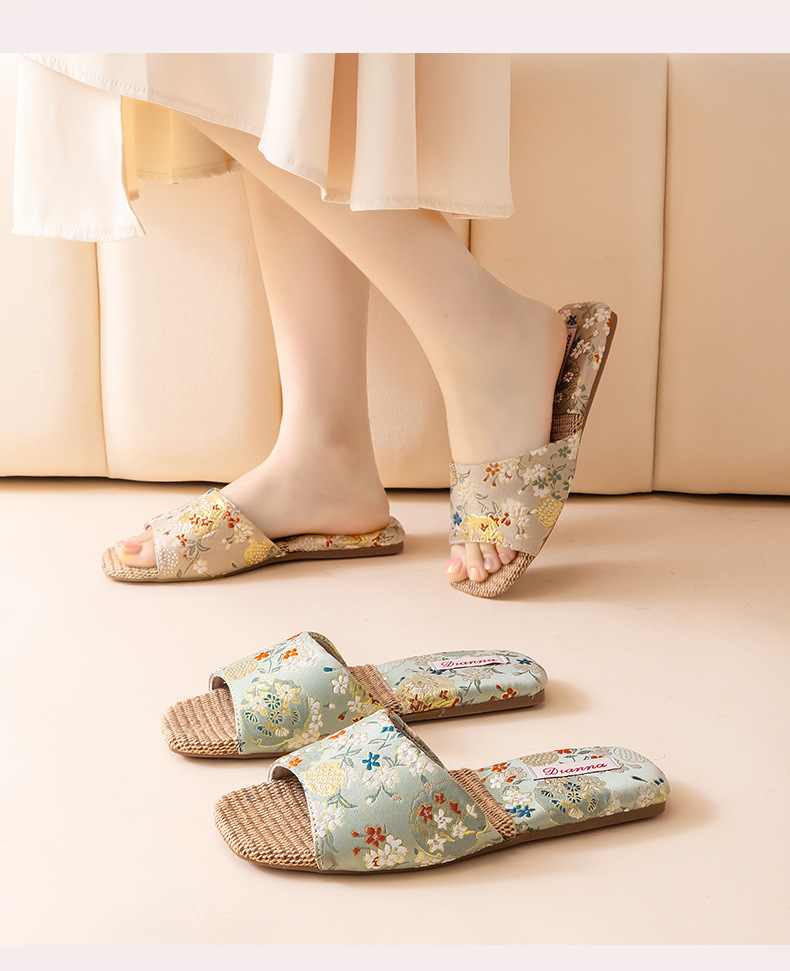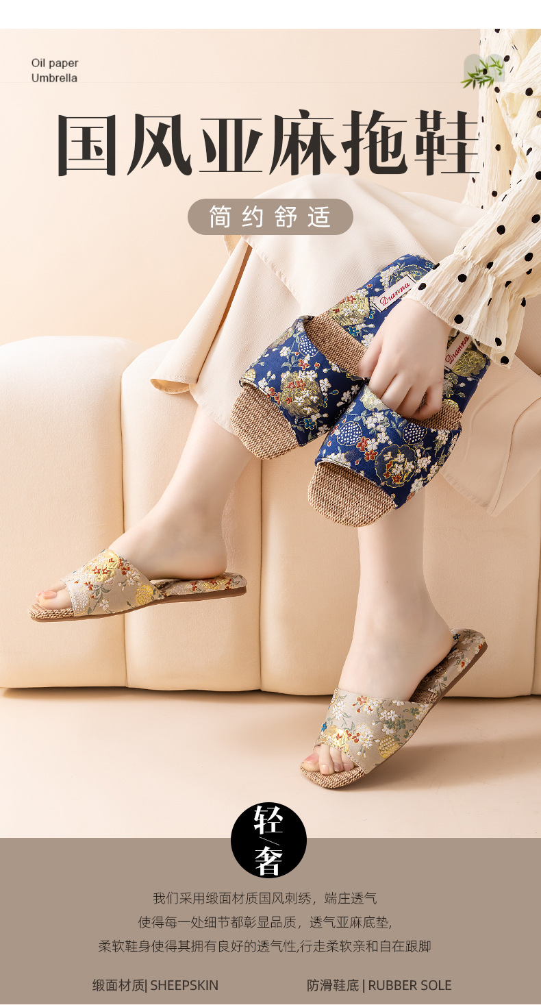 리넨 슬리퍼 여성 실내 집 2025 여름 새로운 미끄럼 방지 힘줄 바닥 수 놓은 중국 스타일 오픈 발가락 슬리퍼