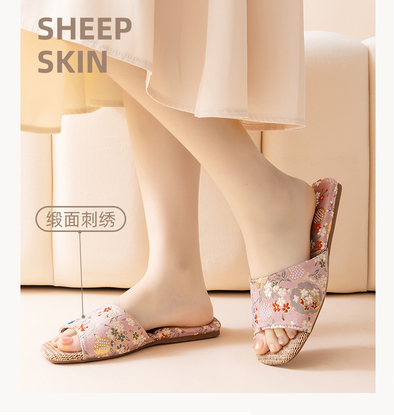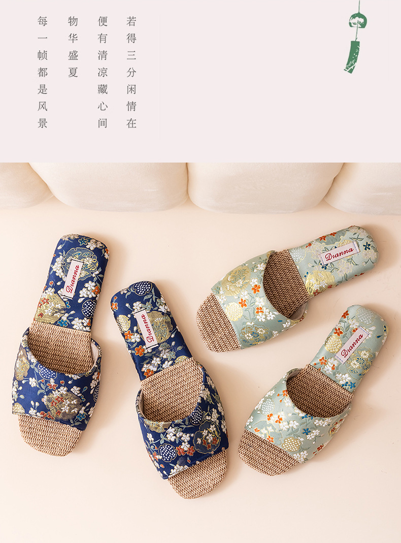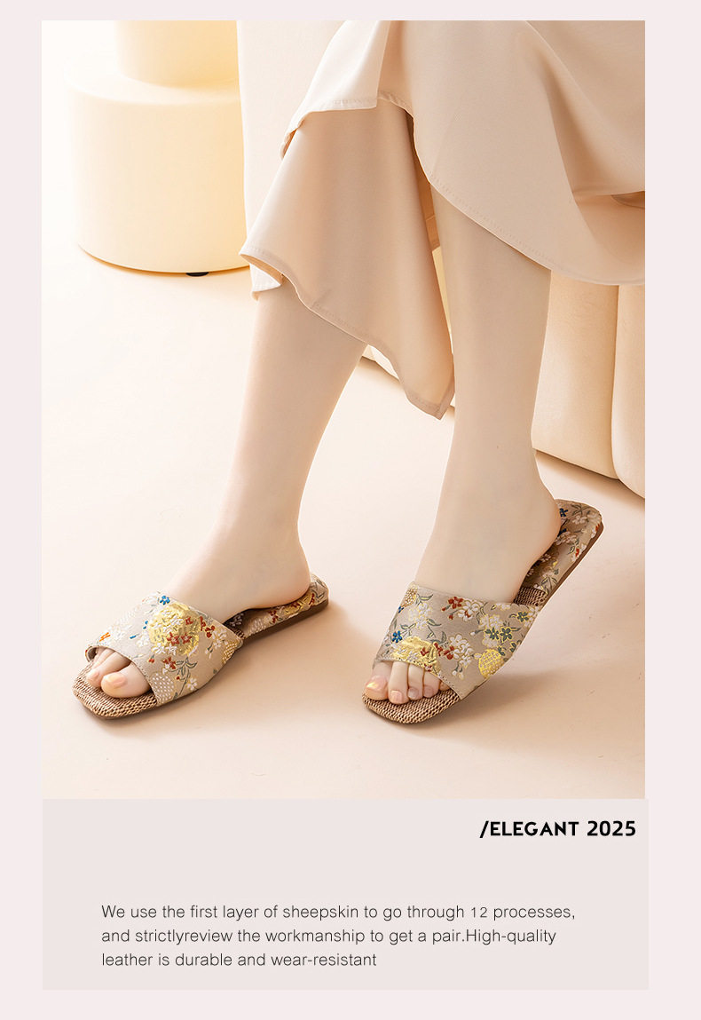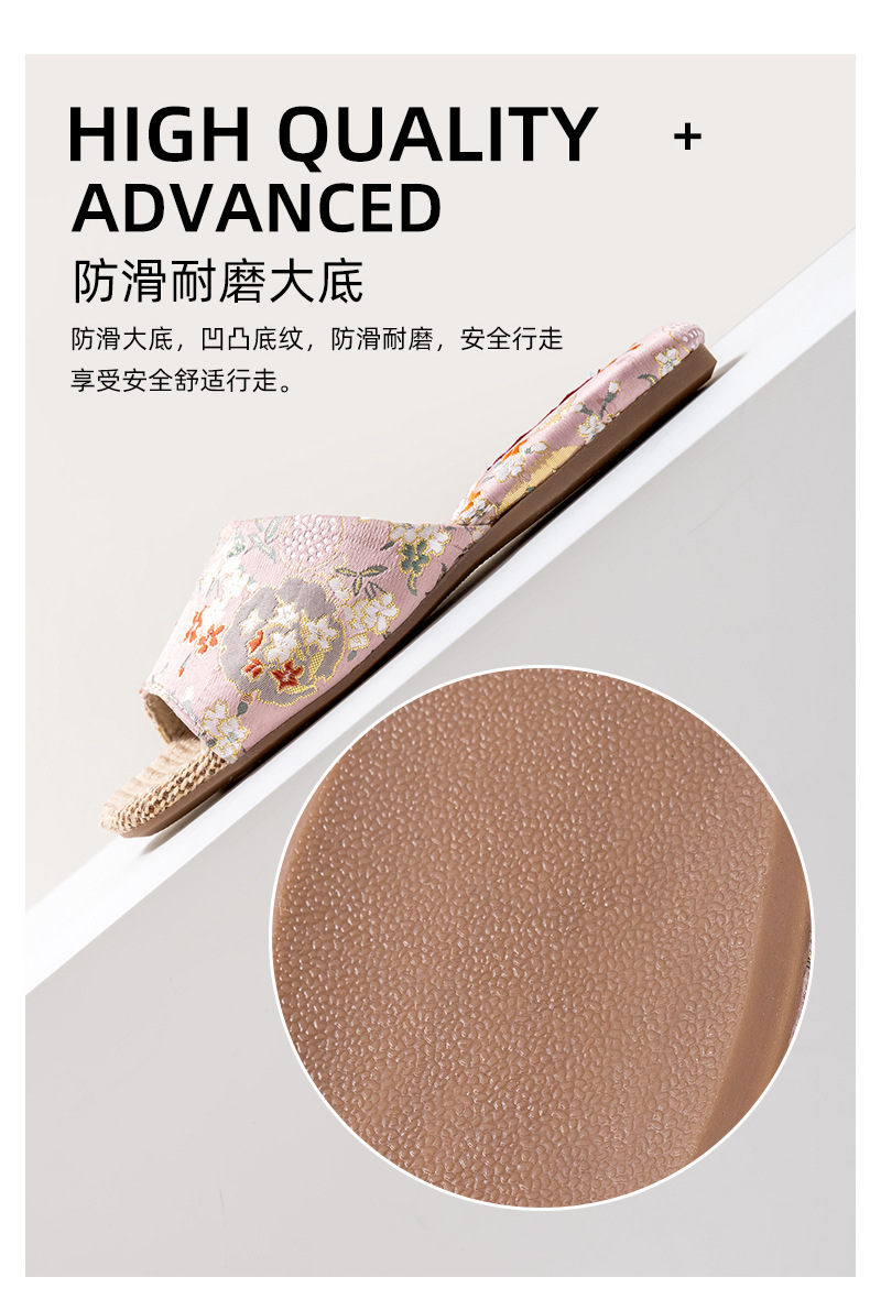 리넨 슬리퍼 여성 실내 집 2025 여름 새로운 미끄럼 방지 힘줄 바닥 수 놓은 중국 스타일 오픈 발가락 슬리퍼