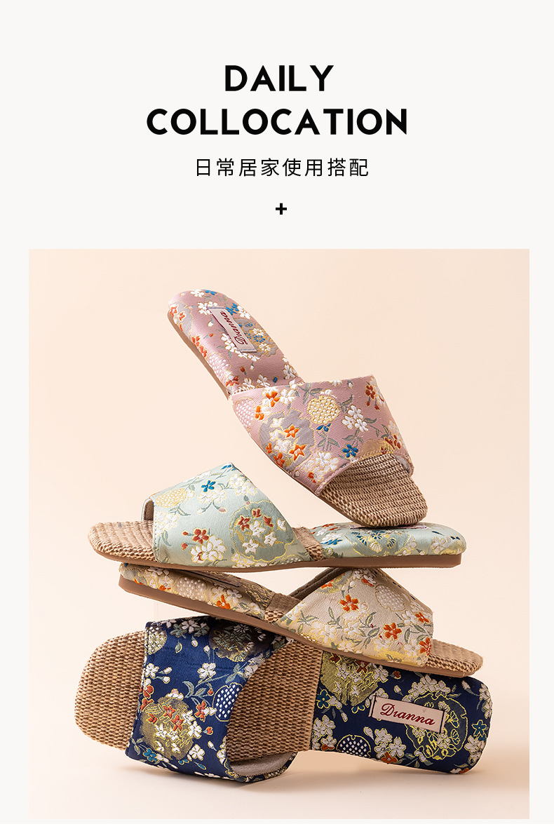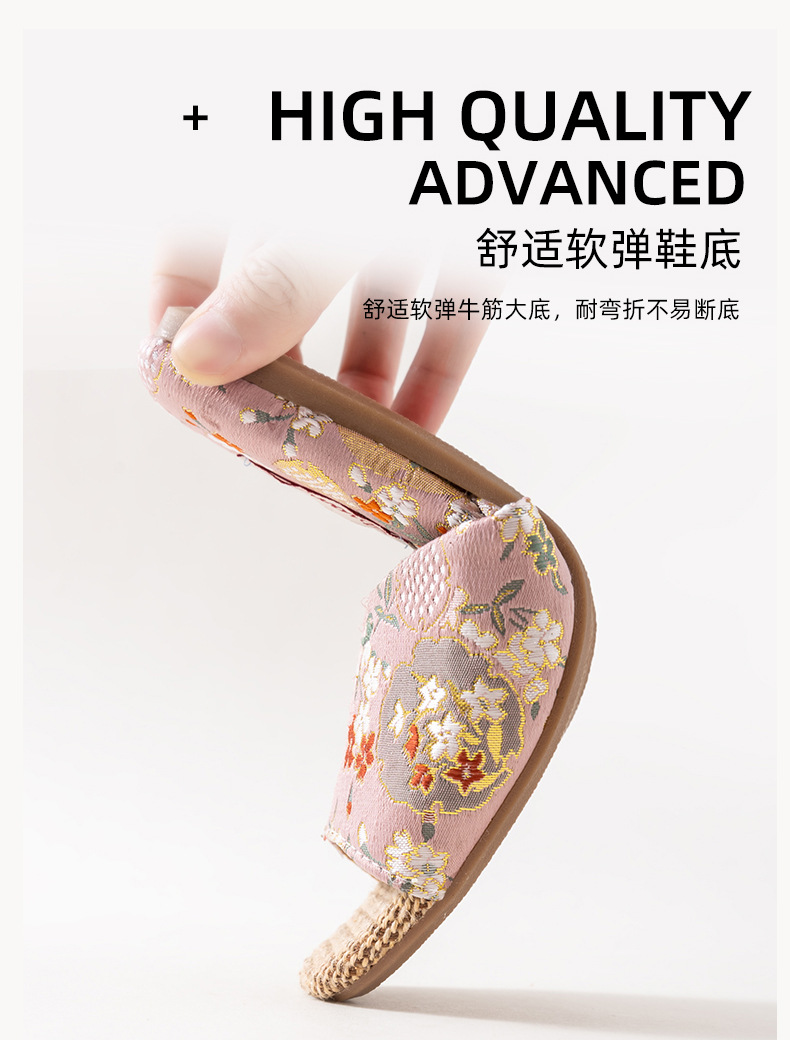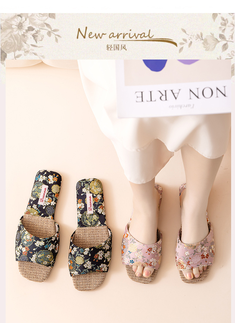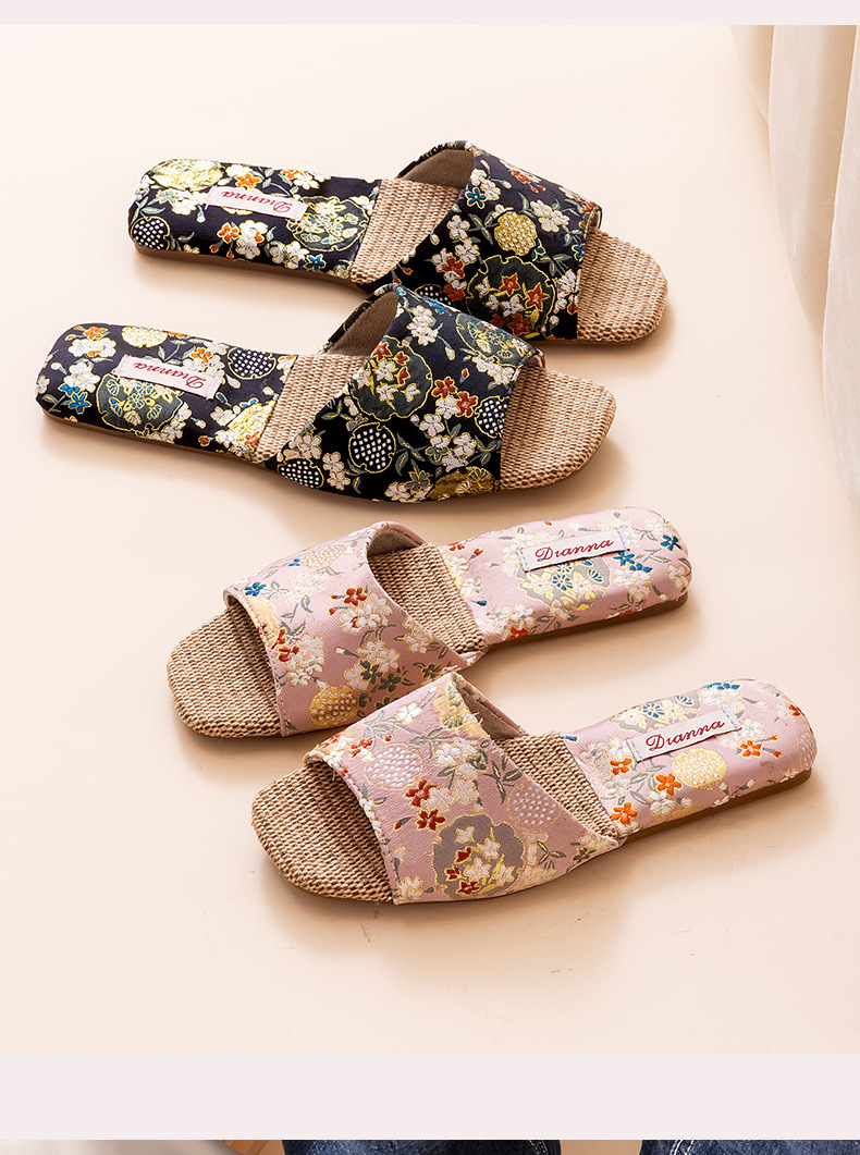 리넨 슬리퍼 여성 실내 집 2025 여름 새로운 미끄럼 방지 힘줄 바닥 수 놓은 중국 스타일 오픈 발가락 슬리퍼스토어 가기