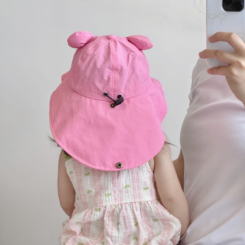 아기 태양 모자 여름 한국 스타일 곰 어린이 목도리 어부 모자 소년과 소녀 캠핑 등산 목 보호 태양 모자