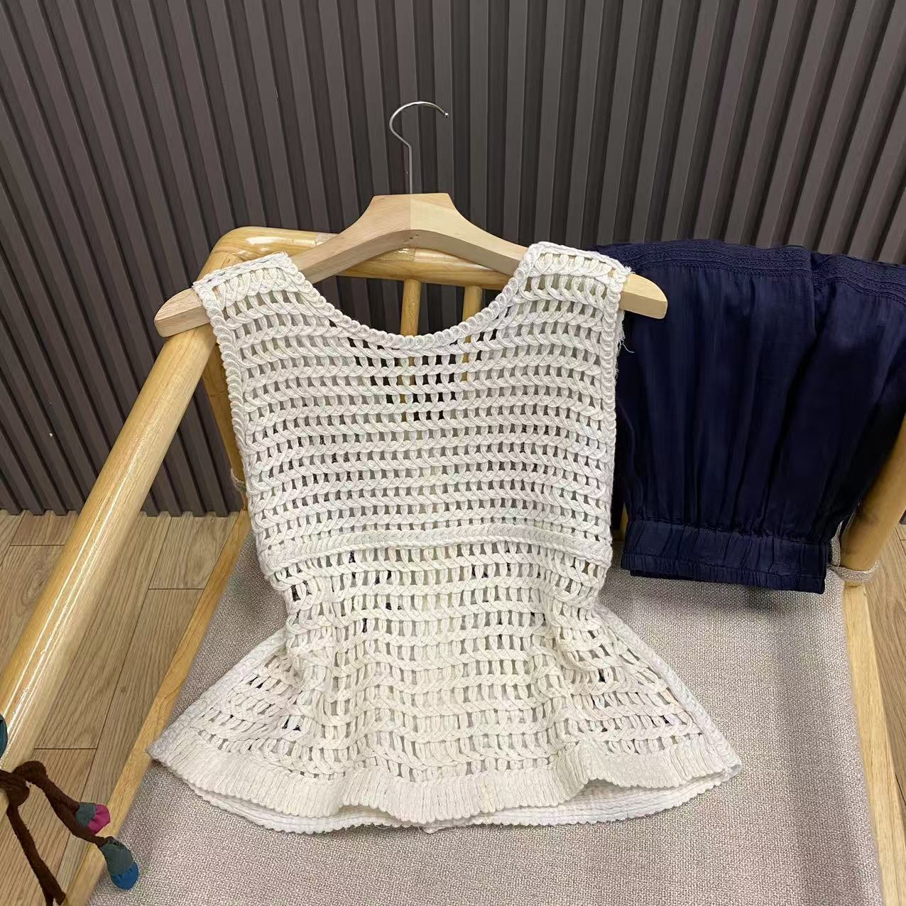 입체 크로셰 중공 자수 브이넥 코튼 조끼 루즈 레이어드 여성용 다용도 디자인 민소매 탑 W5424