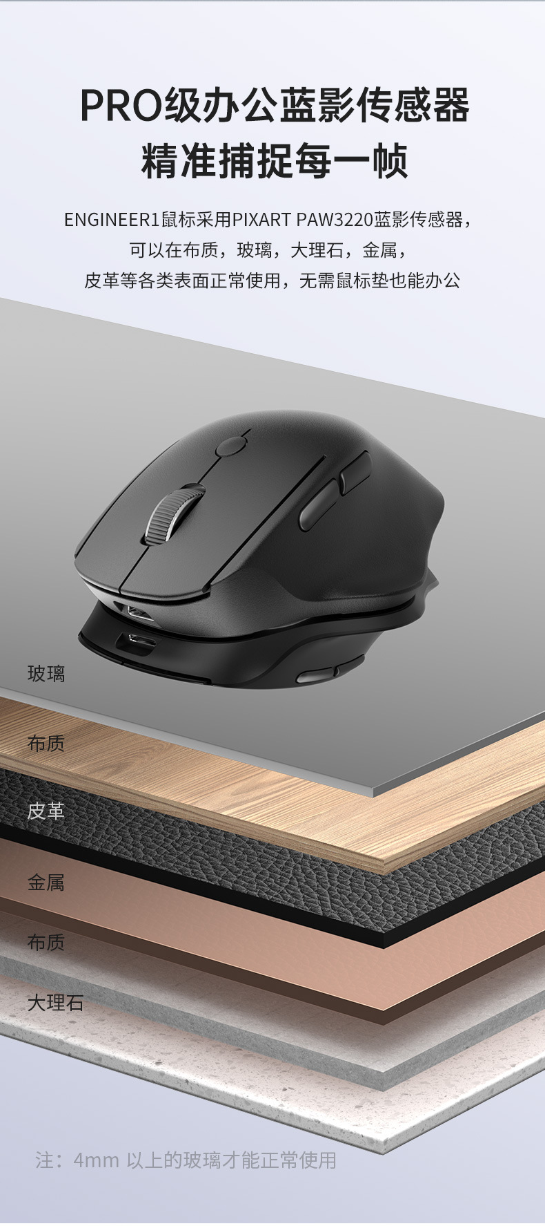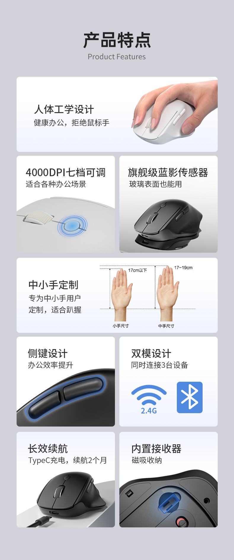 HP Engineer1 인체공학적 마우스, 소형 및 중형 손용 여성용 마우스, 무선 블루투스 듀얼 모드 오피스 마우스