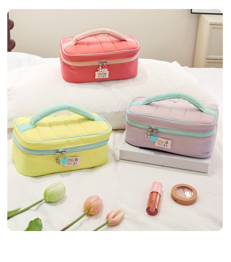 여름 새로운 컬러 블록 도파민 다채로운 화장품 가방 대용량 휴대용 여성용 휴대용 방수 화장품 가방