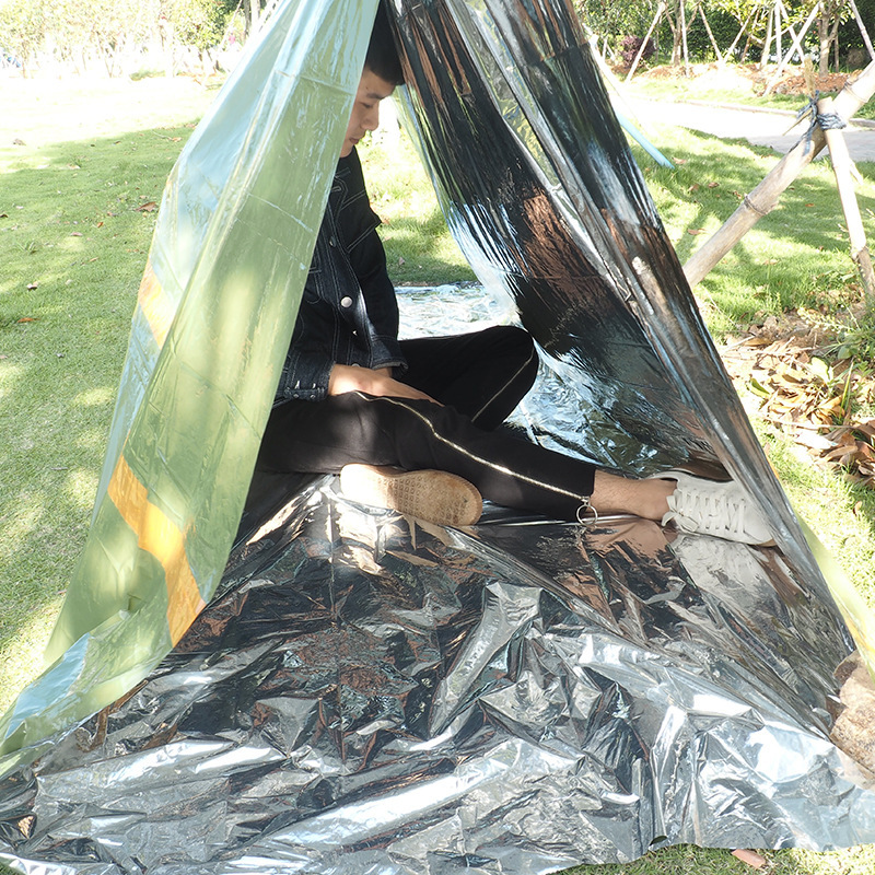 휴대용 야외 재난 구호 텐트 캠핑 임시 간단한 침낭 따뜻한 구급 담요 단일 레이어 알루미늄 필름 삼각형 텐트