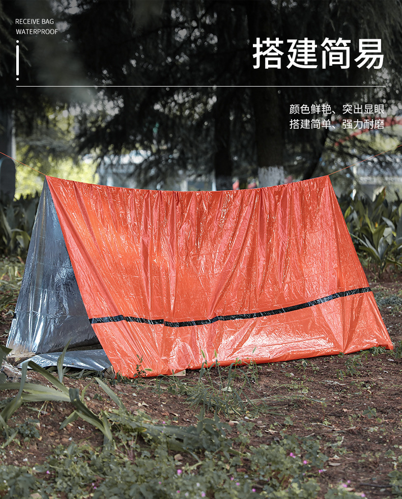 휴대용 야외 재난 구호 텐트 캠핑 임시 간단한 침낭 따뜻한 구급 담요 단일 레이어 알루미늄 필름 삼각형 텐트스토어 가기