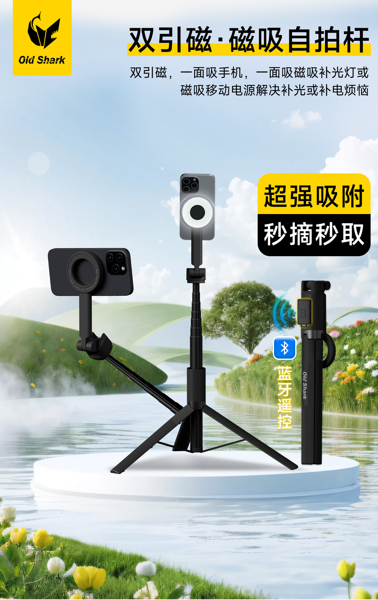 마그네틱 셀카 스틱 MagSafe 휴대 전화 홀더 블루투스 라이브 vlog 삼각대 휴대 전화 삼각대스토어 가기