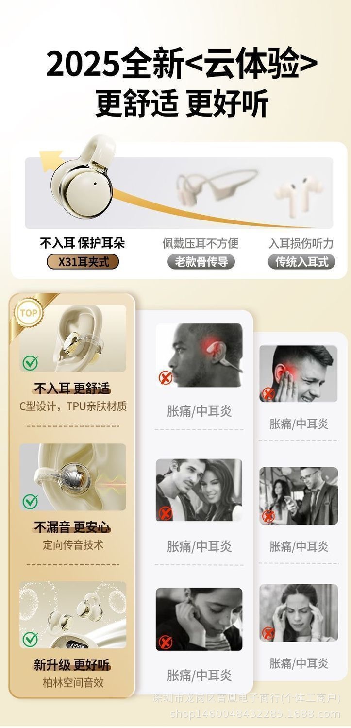 새로운 TWS 클립형 블루투스 무선 이어폰, 디지털 디스플레이, 초장시간 배터리 수명, 귀에 들어가지 않는 골전도 방식, 미니 스포츠 OWS스토어 가기