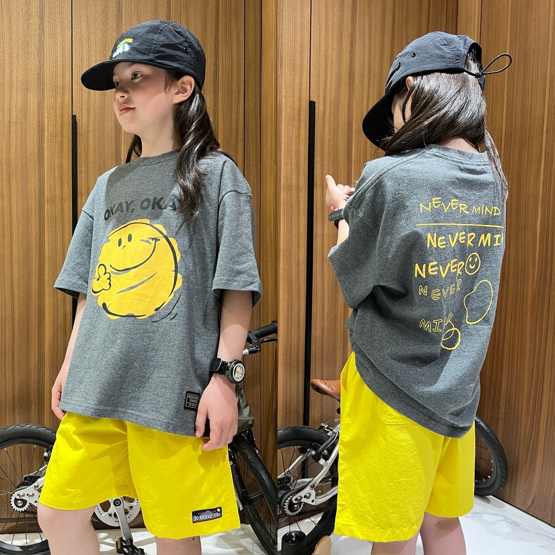 26ss 남아 여아 캐주얼 스타일 스마일 프린트 티셔츠, 아동용 스마일 긴팔 티셔츠, 아동용 그래피티 레터링 티셔츠스토어 가기
