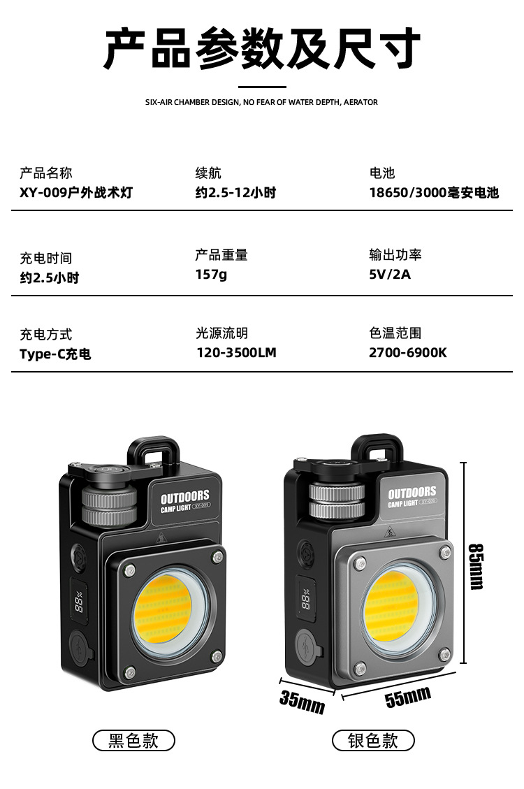 6.公司手电筒具有生活防水能力,一般雨淋不会出现问题,但不具备潜水功能,请勿携带此手电筒潜水或长时间放在水盆,浴缸里;