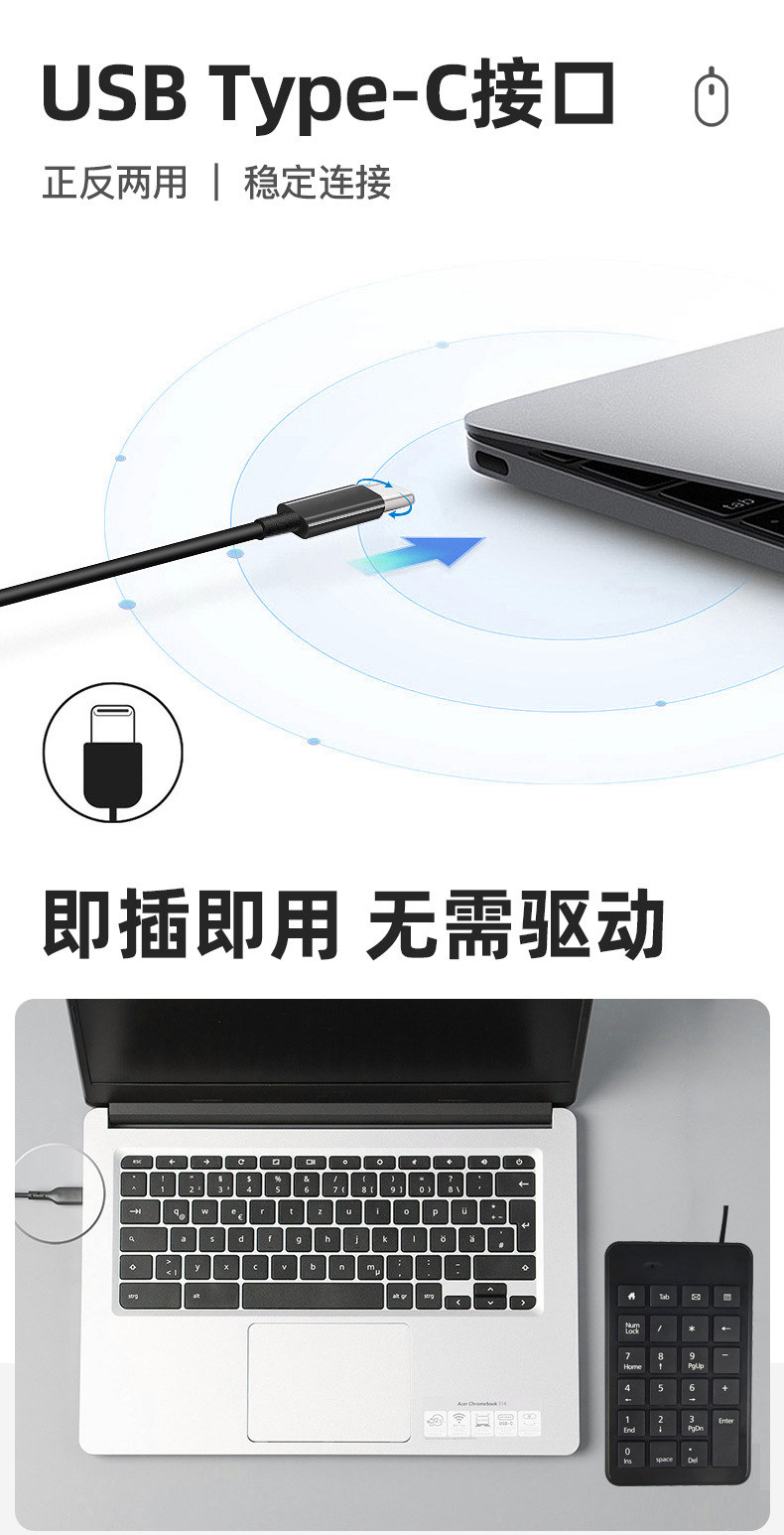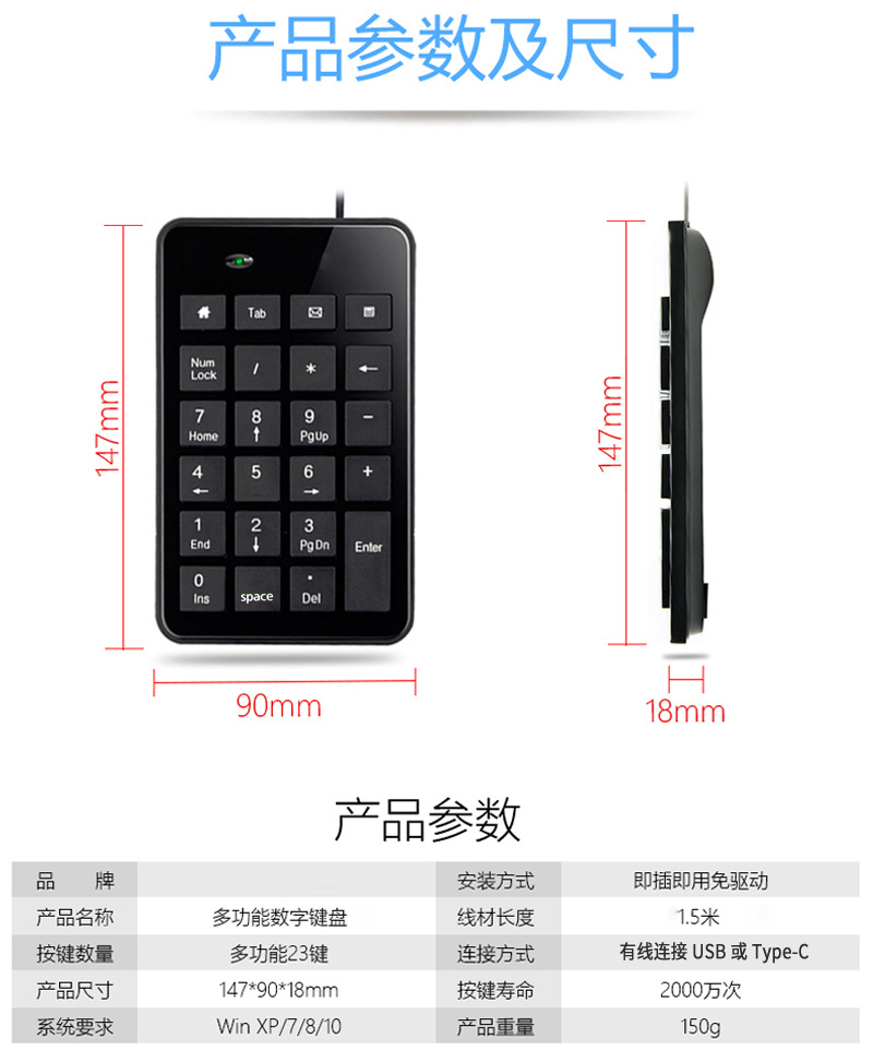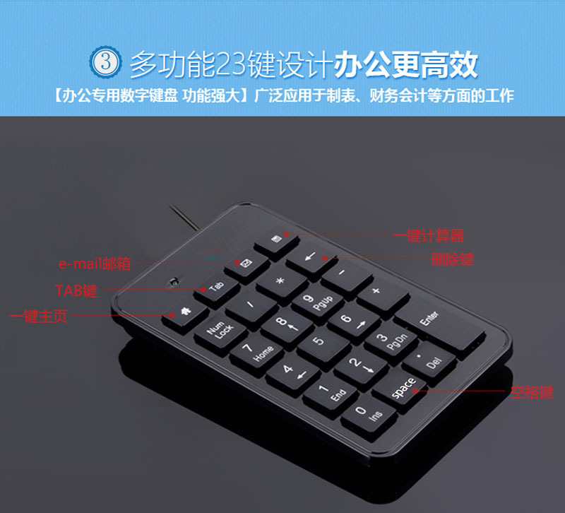 공장 재고 USB-C 인터페이스 디지털 유선 키패드 23키 금융 회계 사무용 타입-C 키보드스토어 가기