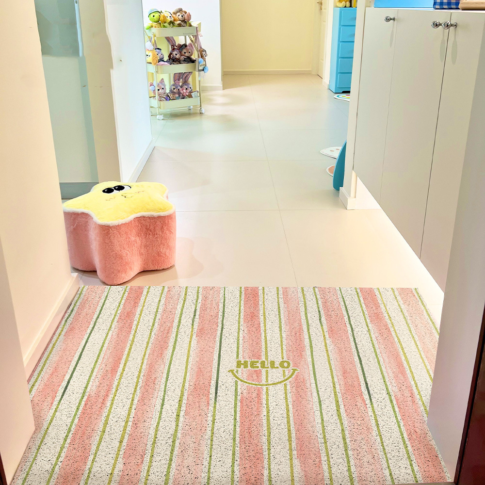 크림색 줄무늬 입구 문 바닥 매트, 현관 문 와이어 링 바닥 매트, 가정용 절단 및 신발 교체 가능 미끄럼 방지 바닥 매트