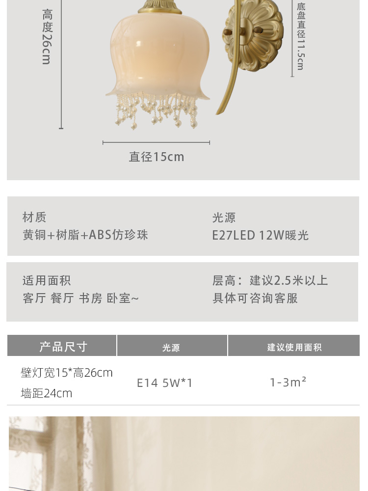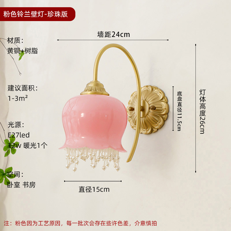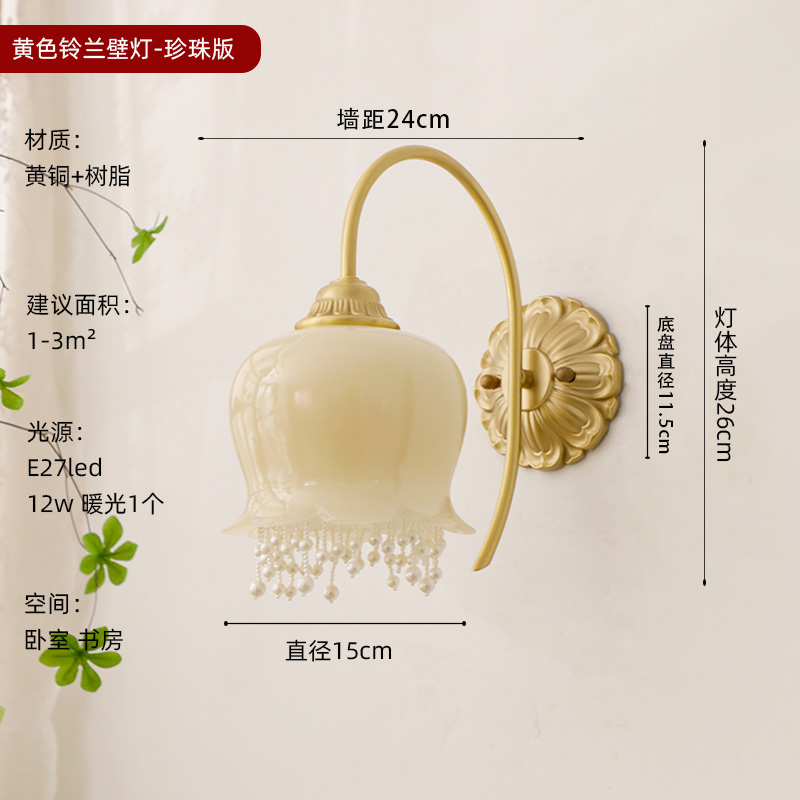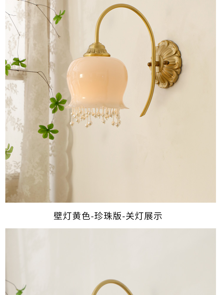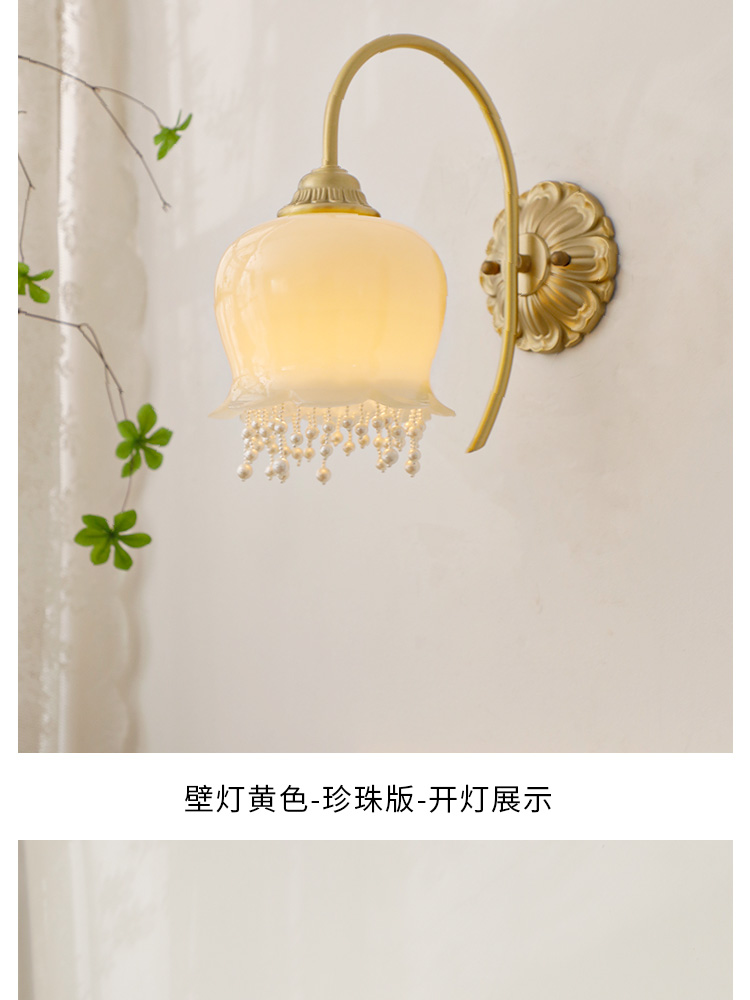 2025 프랑스 아메리칸 스타일 북유럽 스타일 크림 스타일 릴리 오브 더 밸리 벽 램프 침실 레스토랑 진주 침실 램프 램프스토어 가기
