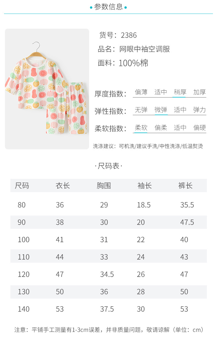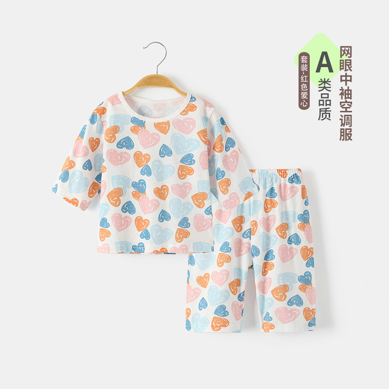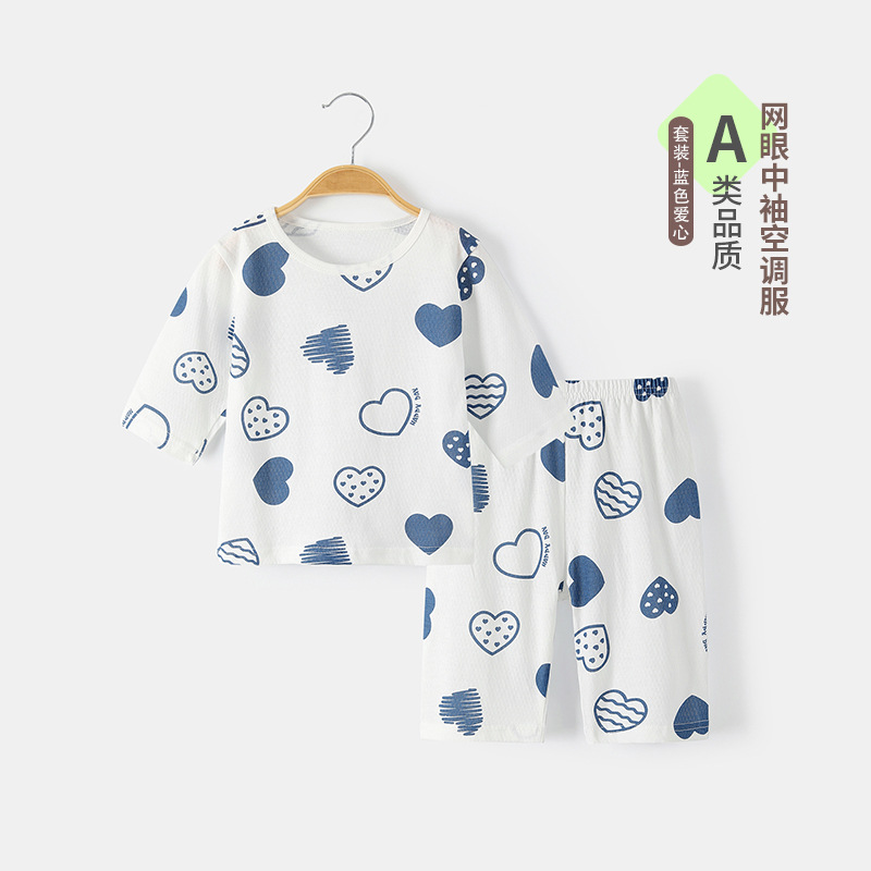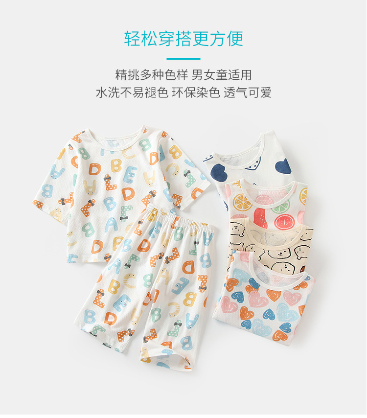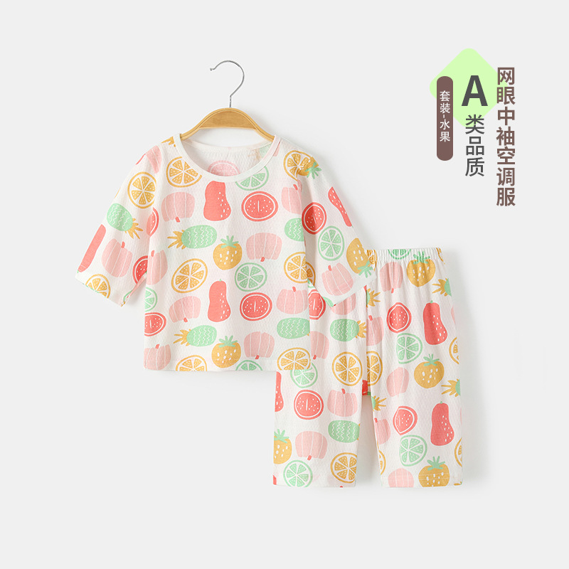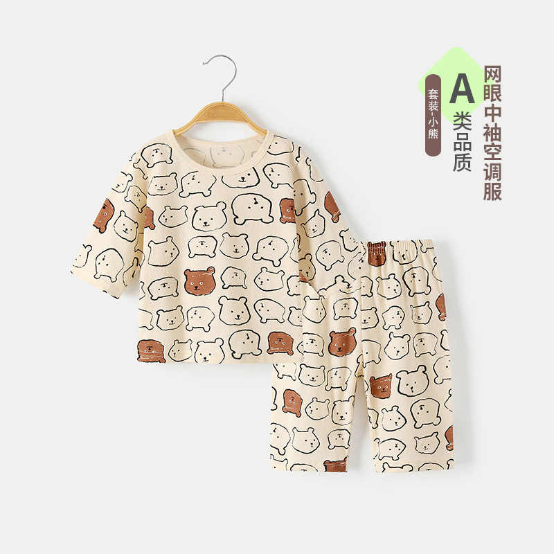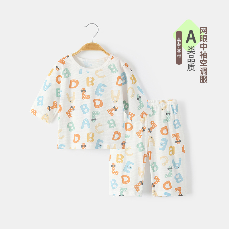 아동 잠옷, 여름 아기 에어컨 옷, 남아용 얇은 중간 소매 순면 아기 양복, 봄, 가을 여아 가정복스토어 가기