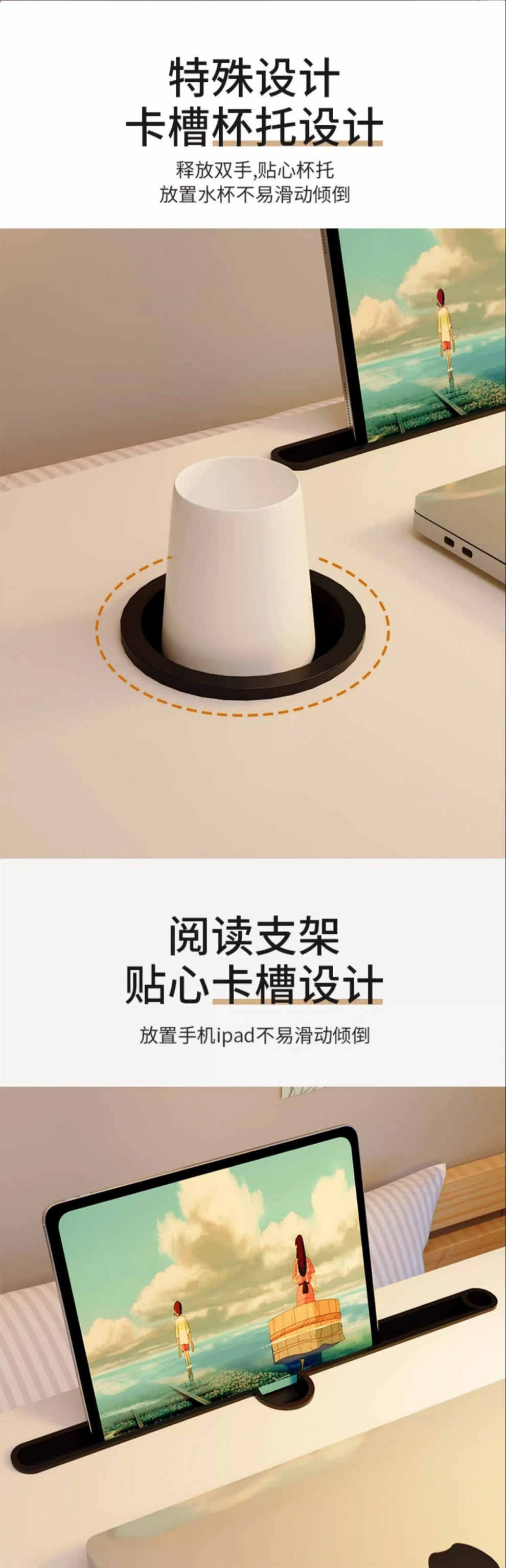 • 우아한 블랙 + 카드 슬롯 컵 홀더 + U 자형 테이블 다리 60X40