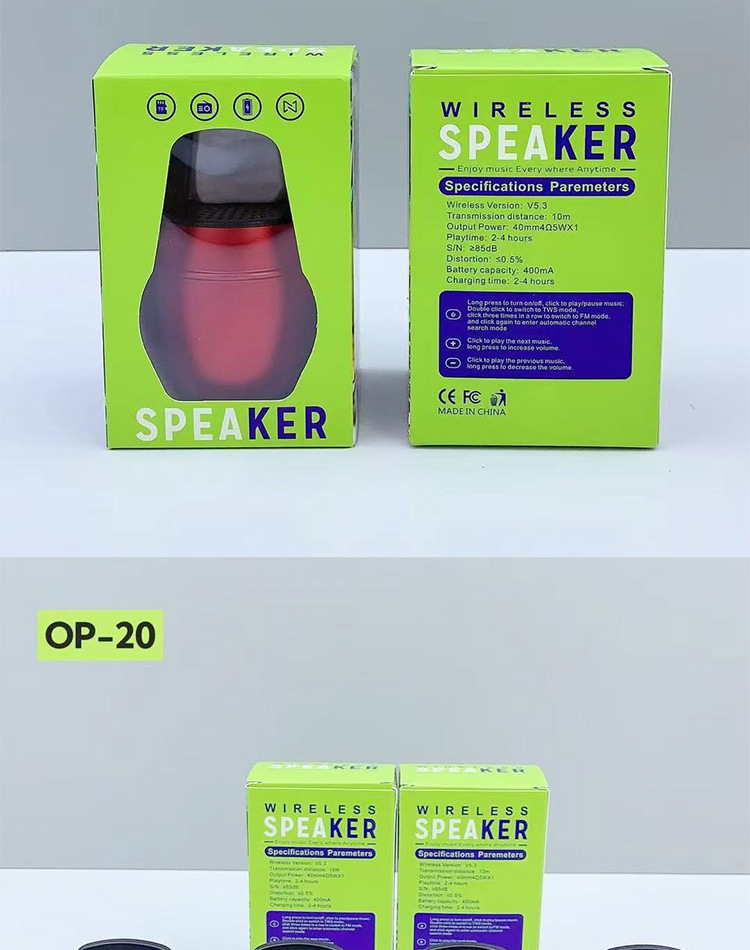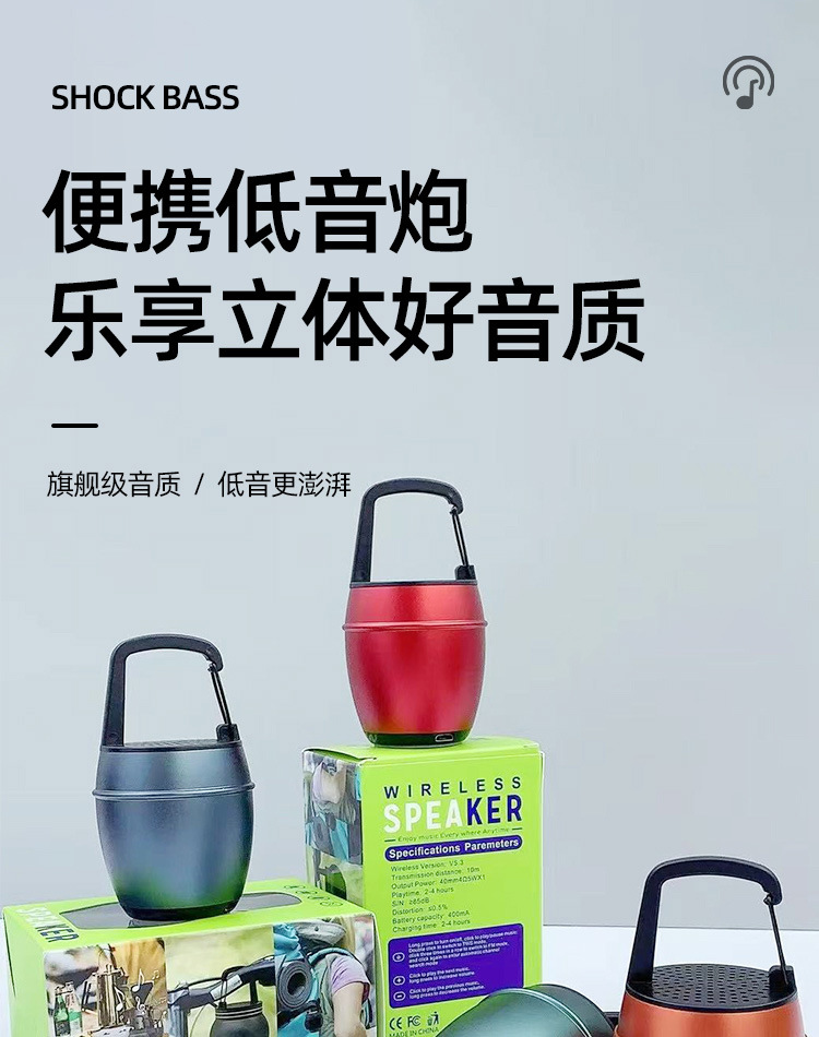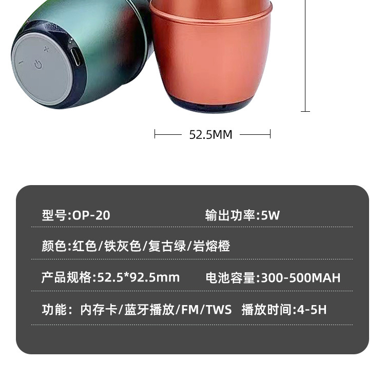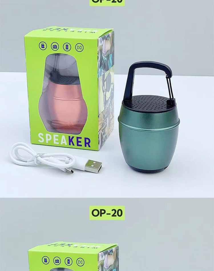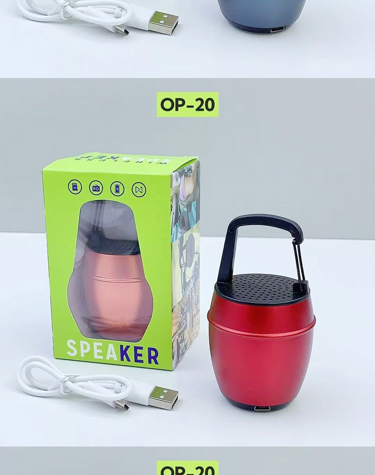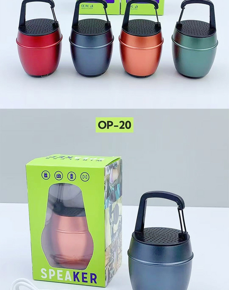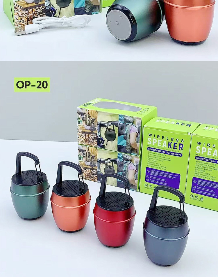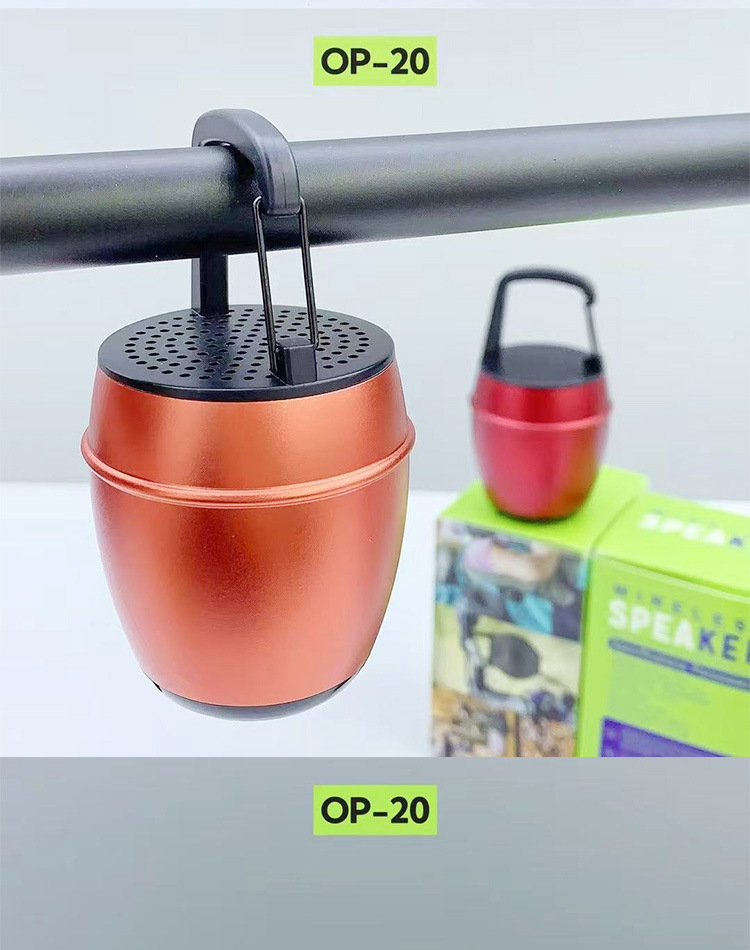 새로운 OP-20 알루미늄 합금 소형 강철 총 휴대용 야외 휴대용 후크 자전거 오디오 무선 블루투스 스피커